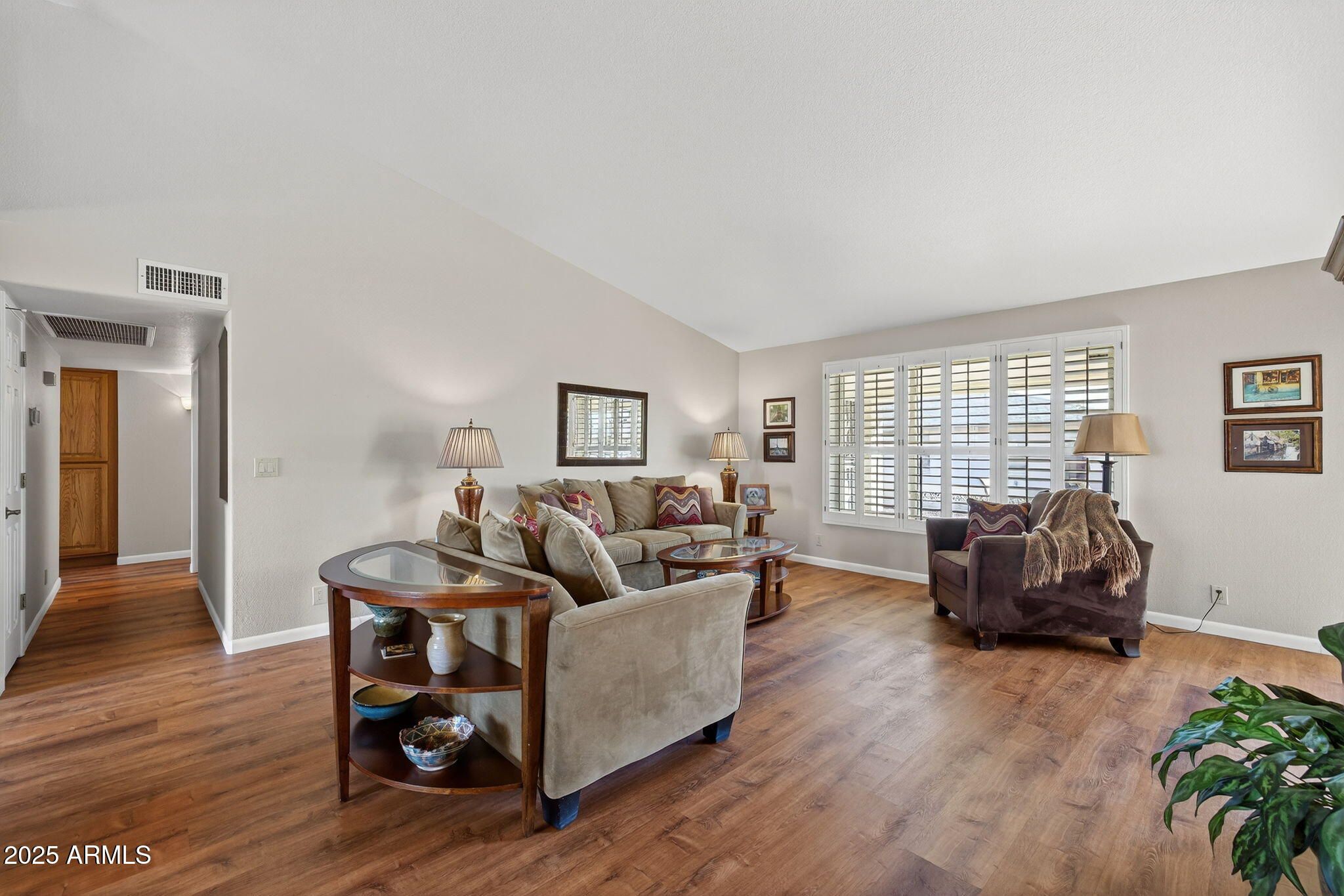 Welcome to this beautifully updated and spacious 2,128 square foot floor plan with two bedrooms, two baths and a dedicated office (optional 3rd bedroom). Step inside to find newer luxury vinyl plank flooring, plantation shutters, and an abundance of natural light enhanced by south side quality Anderson windows. This home features newer exterior paint, newer roof underlayment, remodeled bathrooms, newer appliances, newer water heater, and a newer garage door opener. Move-in ready and beautifully maintained, this home combines comfort, style, and worry-free living. Take this opportunity to make this home yours today!