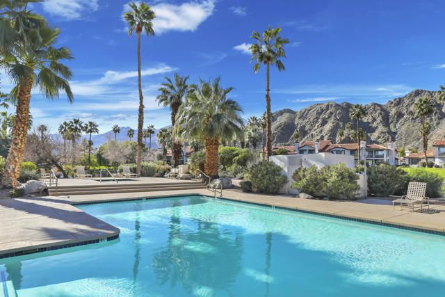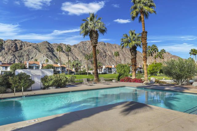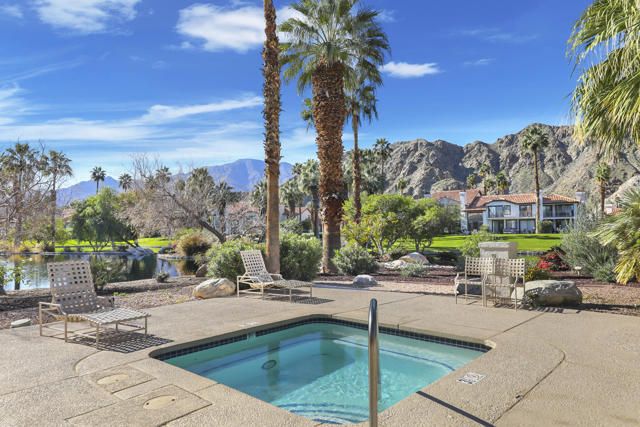 Best priced Champion 2 on the Stadium course! PGA TOUR just announced its back for 2027. Don't miss your chance to watch it from your patio at this amazing condo!Experience the best of desert living with this beautifully positioned golf course condo in PGA West, offering stunning panoramic mountain views and double-fairway location on the world famous Stadium Course's 14th green and 15th tee! Watch the PGA American Express tournament from your patio, which provides a seamless in-door outdoor lifestyle, perfect for every day morning coffee or evening relaxation. This is exactly the view buyers come to the desert for. The spacious 1,549 sq ft layout features high ceilings, natural light filling the open living and dining areas maximizing the connection to the outdoor setting. 2 bedrooms plus a versatile den, ideal for a 3rd bedroom. Updates include, new A/C unit and ductwork (2023), all new luxury vinyl flooring, 6' baseboards, California shutters, new LED lighting and freshly painted throughout. Comparable updated units are asking significantly higher prices. Located within the highly sought-after PGA West community, residents enjoy access to beautifully maintained grounds, multiple pools and spas and a true resort style environment. HOA includes cable TV, WiFi, trash, landscaping, painting, security and earthquake insurance. Full time residence, seasonal retreat or investment property, this home offers a rare combination of view, location and value.