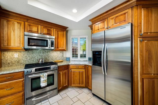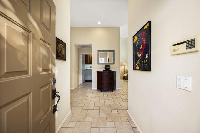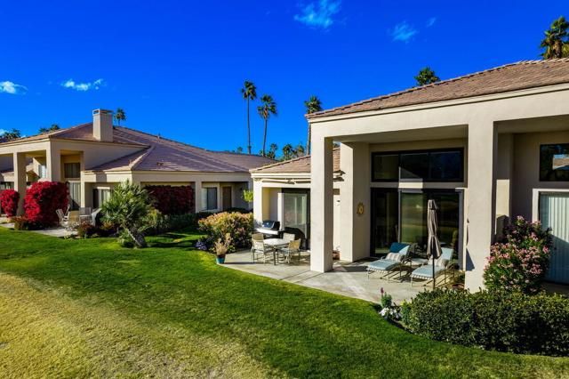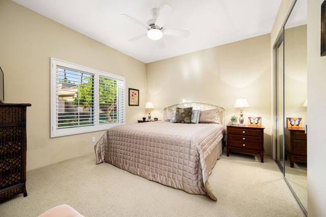 Breathtaking views! This stunning South facing Champion 3 plan is perfectly located on an elevated lot overlooking the 14th green and 15th tee of the world-famous PGA West Stadium Course. Bask in the double fairway and uninterrupted panoramic views of the Southern and Western mountains from your private patio. Step into elegance and comfort in this beautifully remodeled 3-bedroom, 2-bathroom condo, perfect for entertaining with a seamless indoor-outdoor open floor plan. The extensive upgrades include new flooring with upgraded tile and carpet throughout the condo, all new custom cabinetry throughout, granite slab kitchen and bathroom counters, stainless steel kitchen appliances and a gas range, updated windows and sliders, electric window shades on the golf course side, plantation shutters throughout, custom closet built-ins, new garage door and opener, and much more. Just steps away from a community pool and turnkey furnished, this condo really has it all! Don't miss your chance to own a slice of paradise. HOA's include maintenance on building and grounds, all landscaping in front, back, side, and courtyards, irrigation water and equipment, exterior paint, roof, earthquake insurance, cable, internet, trash, and 24 hour guarded gate and security.