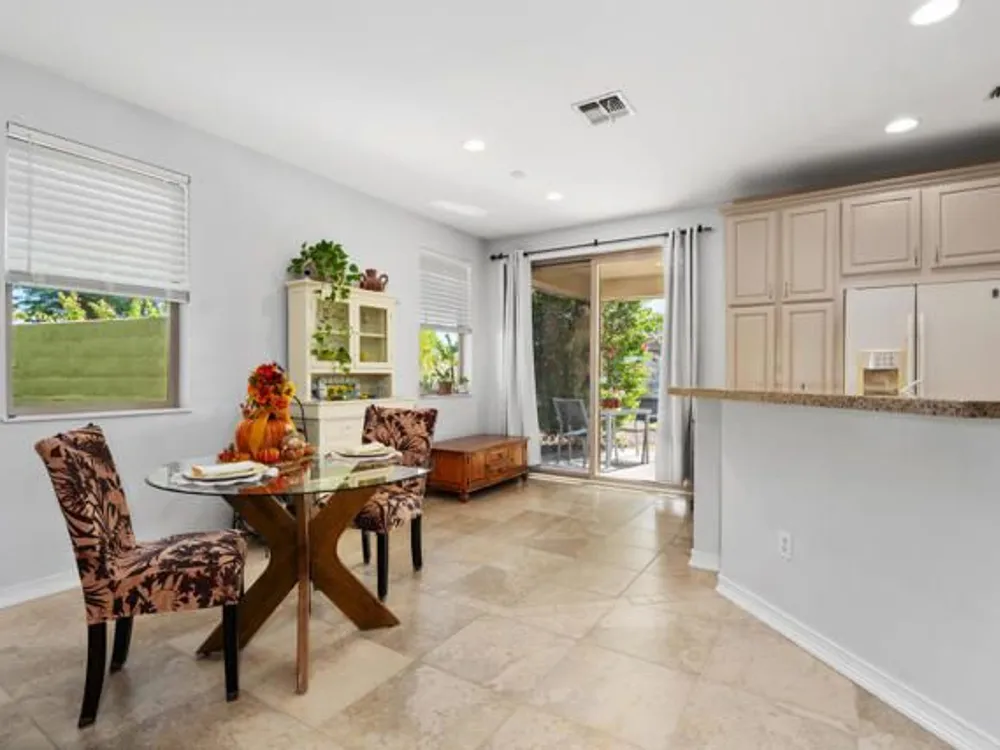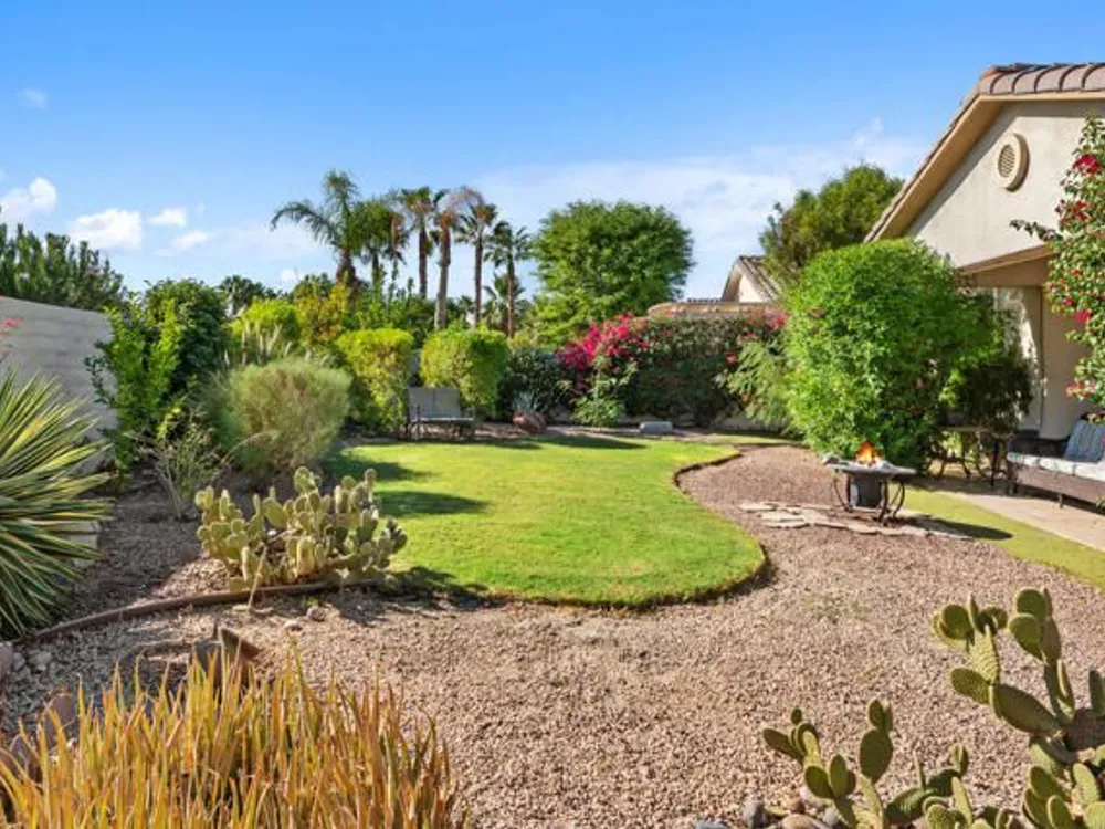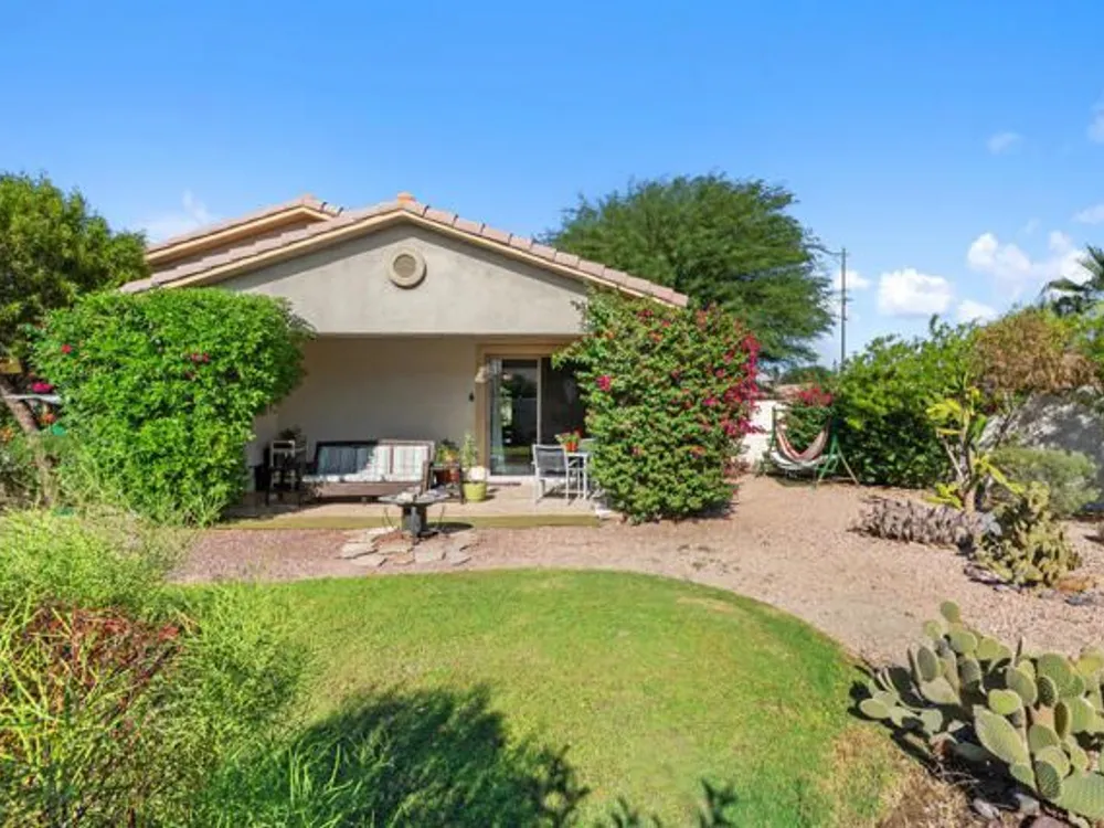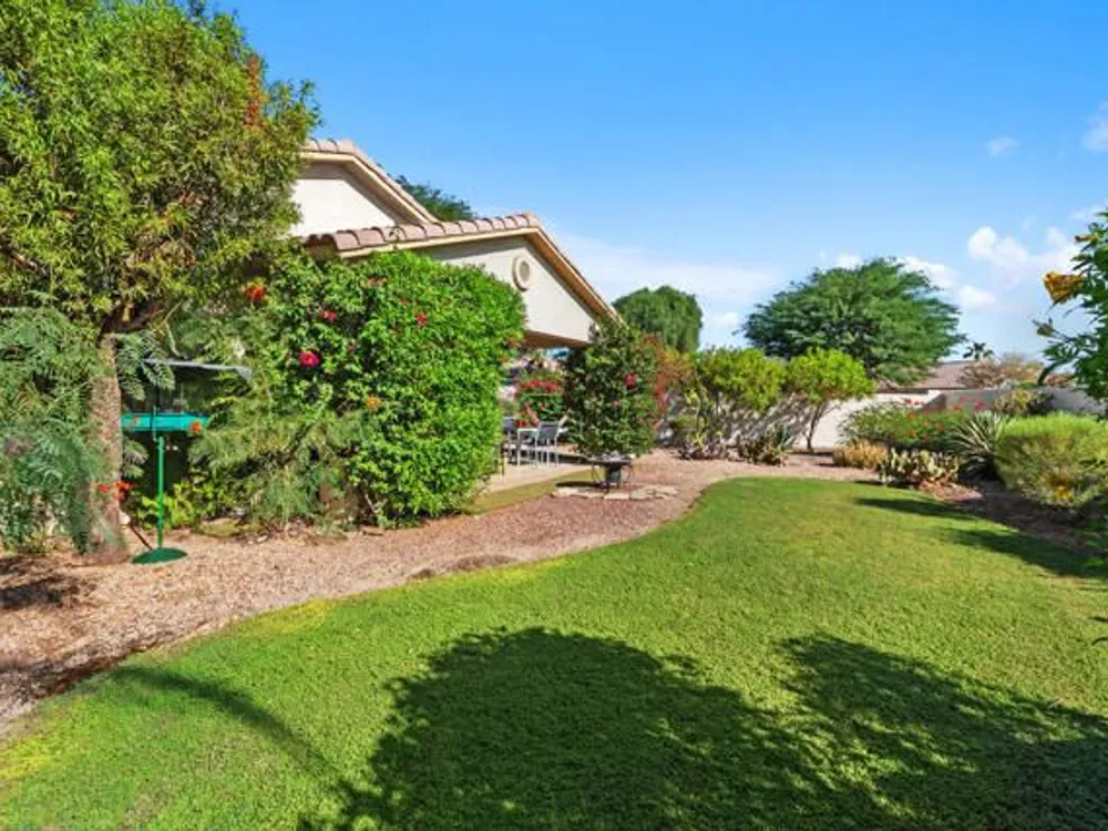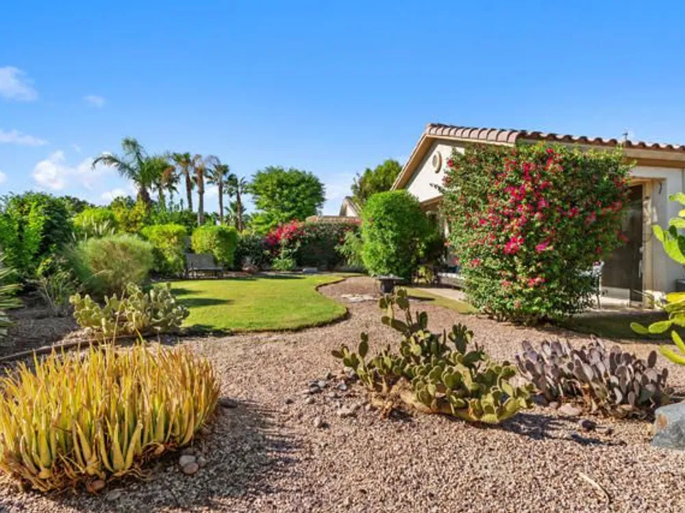 This tranquil and serene San Ysidro Retreat sits on a spacious 8,276/sf south-facing corner lot, offering privacy and easy access to amenities. The upgraded home features high ceilings, large windows, flexible living areas, tinted bedroom windows, tile and LVT flooring (no carpet), and a built-out walk-in closet. Recent improvements include new HVAC, a walk-in shower in the second bath, painted kitchen cabinets, a newer dishwasher, and an updated refrigerator. The private backyard features fruit trees, real grass, mature landscaping, and shade trees. Sun City Shadow Hills Community highlights include two golf courses, clubhouses, pools, fitness centers, tennis and pickleball courts, a restaurant, and social clubs. The property is being sold partially furnished. Make an appointment to see it today!