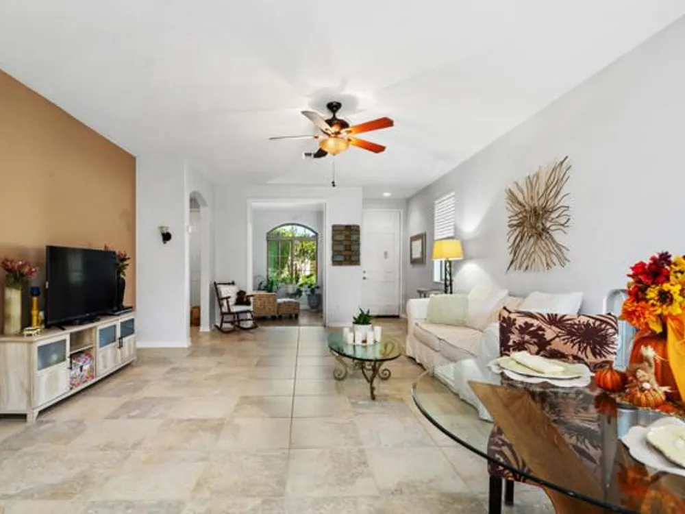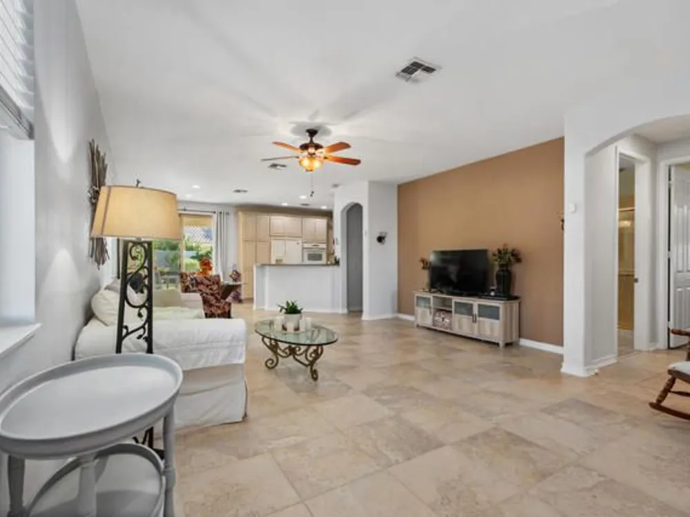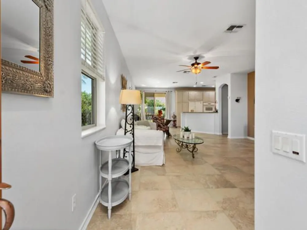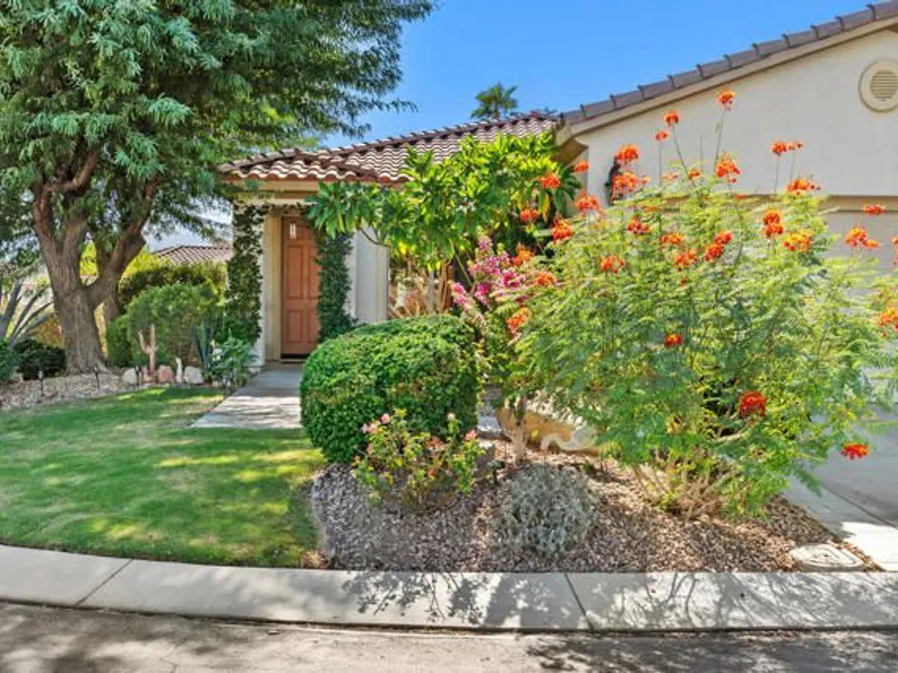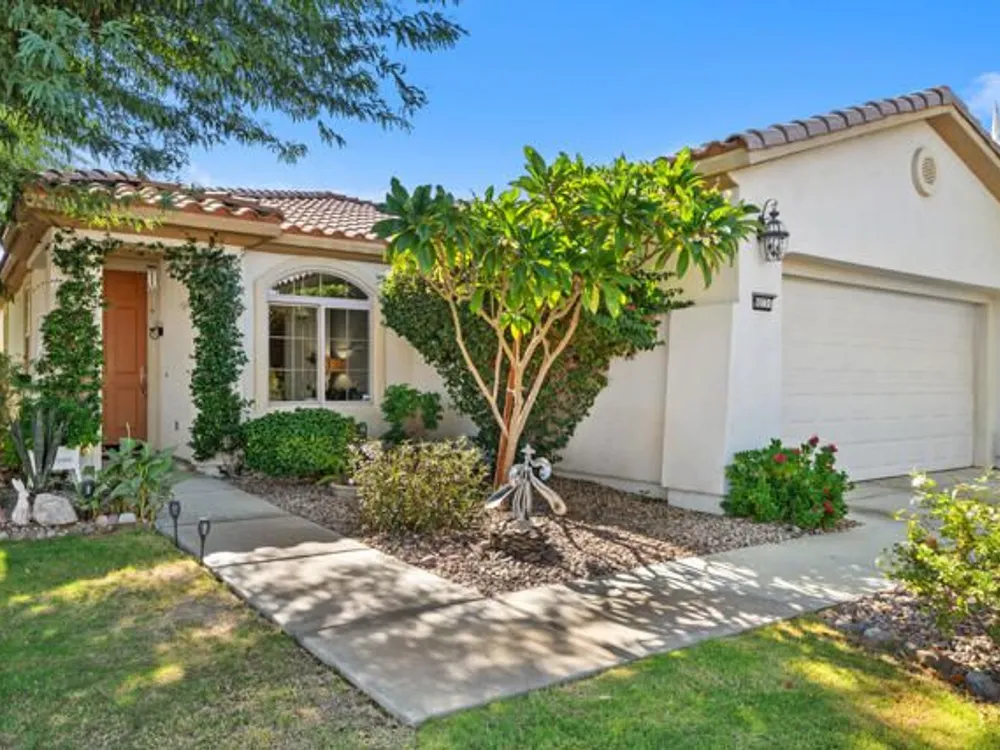 This tranquil and serene San Ysidro Retreat sits on a spacious 8,276/sf south-facing corner lot, offering privacy and easy access to amenities. The upgraded home features high ceilings, large windows, flexible living areas, tinted bedroom windows, tile and LVT flooring (no carpet), and a built-out walk-in closet. Recent improvements include new HVAC, a walk-in shower in the second bath, painted kitchen cabinets, a newer dishwasher, and an updated refrigerator. The private backyard features fruit trees, real grass, mature landscaping, and shade trees. Sun City Shadow Hills Community highlights include two golf courses, clubhouses, pools, fitness centers, tennis and pickleball courts, a restaurant, and social clubs. The property is being sold partially furnished. Make an appointment to see it today!