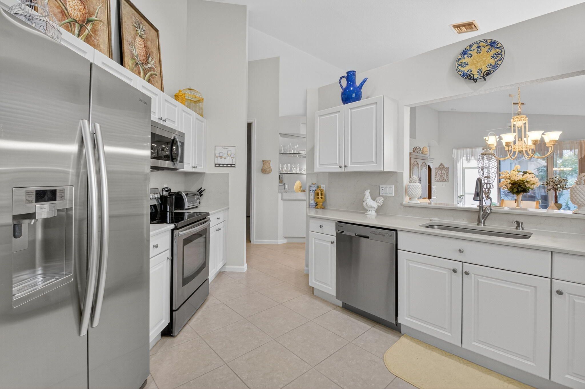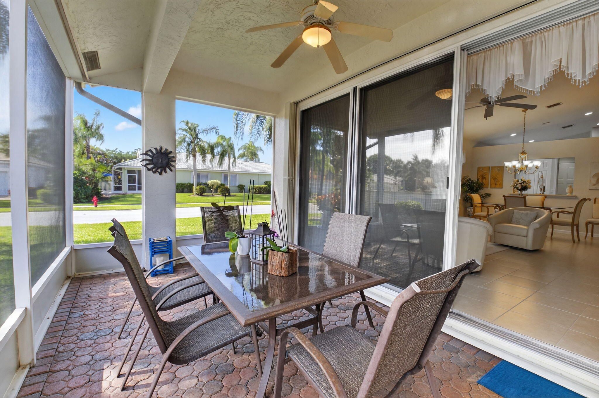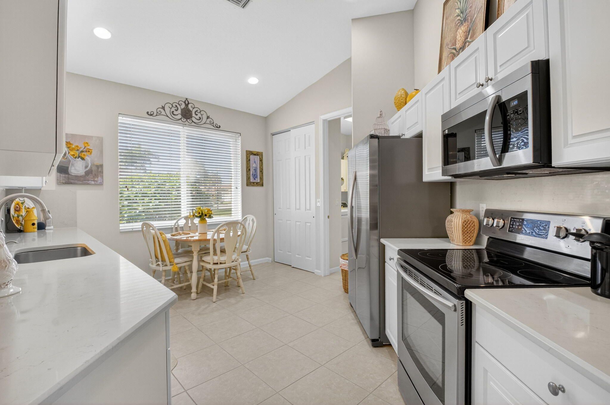 NEW ROOF OCT. 2025. This beautifully maintained freshly painted 3/2 home is located on a spacious corner lot, featuring hurricane shutters, newly installed gutters and tinted windows for comfort & peace of mind. Inside, you'll find a modern light & bright kitchen, accented w/ Quartz counters, matching backsplash, stainless appliances & large pantry. This move-in-ready open concept home is enhanced with a neutral pallet, elegant built in bar & porcelain tile floors creating a stylish and functional look-perfect for everyday living and entertaining. Venetian Isles is a 55+ community that offers country club living. Amenities include a new clubhouse w/ a restaurant serving breakfast & lunch, PLUS an upstairs bistro bar that serves dinner. A social hall is utilized for weekly parties & show