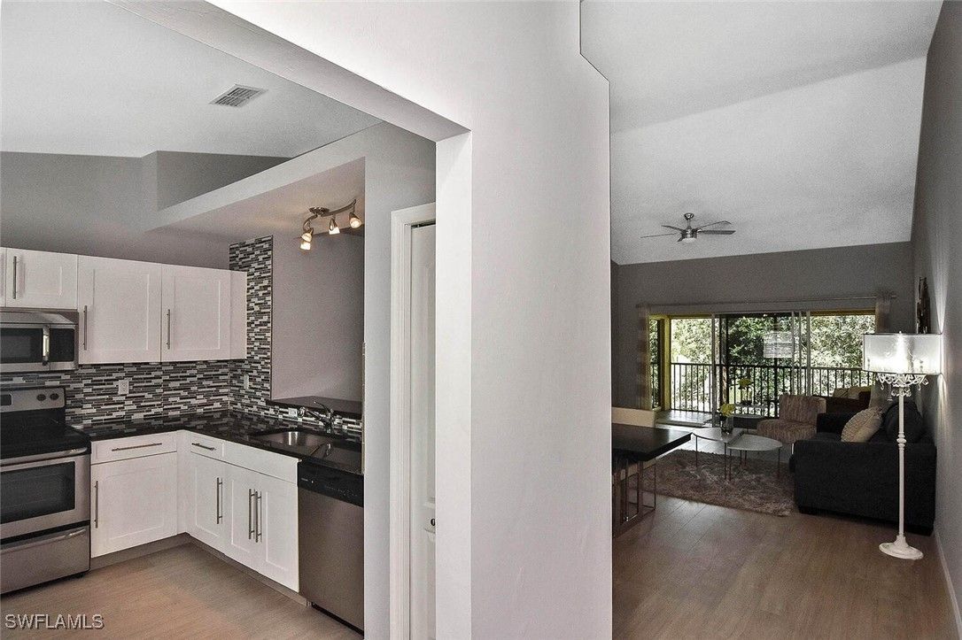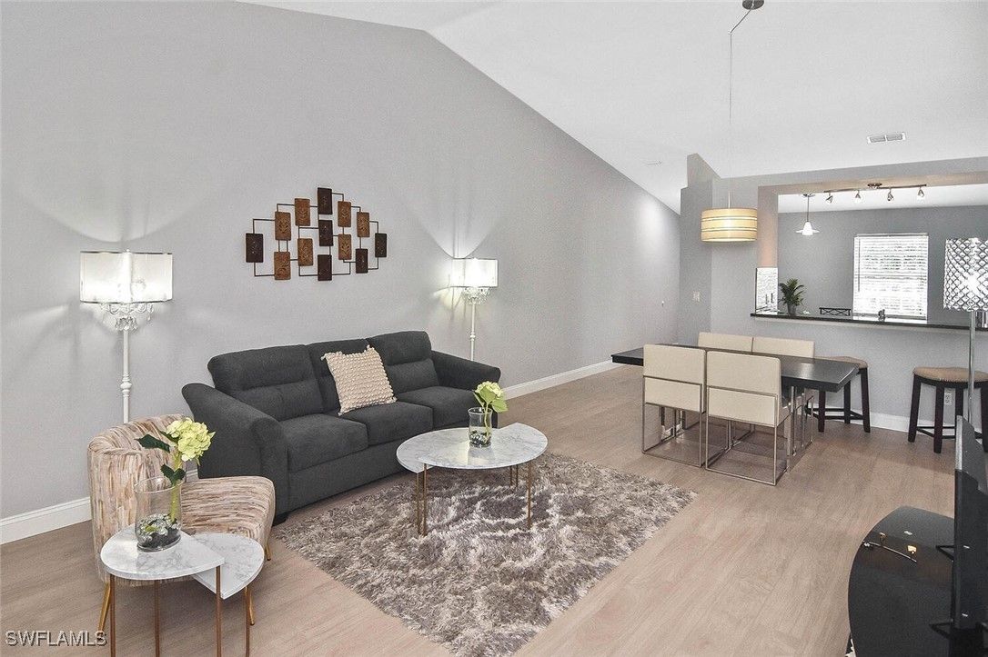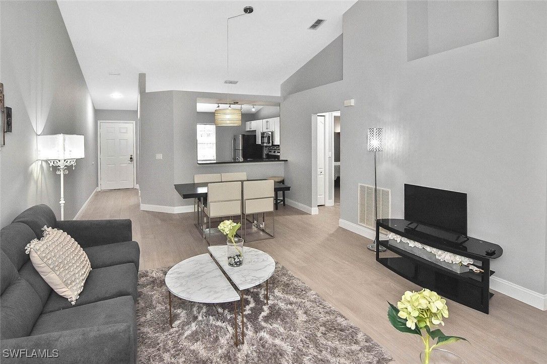 Welcome to this meticulously cared-for two-bedroom, two-bath condominium situated in Hidden Sanctuary Village within Lely Resort. This roomy second-floor unit boasts vaulted ceilings, abundant privacy, and stunning views of the Flamingo golf course. Enjoy the sunset while relaxing on the back lanai. This condo provides plenty of space for both relaxation and entertaining. The eat-in kitchen is equipped with ample cabinet space and a pantry, making it perfect for daily living. The spacious primary suite serves as a personal retreat, featuring a sitting area that overlooks the golf course, a large closet, and an en-suite bathroom with a sizable shower and dual sink vanity. The guest bathroom includes a tub and shower combination. The guest bedroom offers generous closet space. Additional highlights include luxury vinyl flooring throughout condo, in-residence laundry and a detached carport conveniently located right in front of the unit. With no assessments and low HOA fees, this condominium is ready for you to move in and embrace the Naples lifestyle! There are no mandatory club fees, and the Players Club & Spa membership is optional. It's conveniently located near Marco Island and the renowned shopping and dining of Naples' 5th Ave, as well as our stunning white sand beaches. Simply perfect!