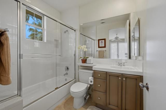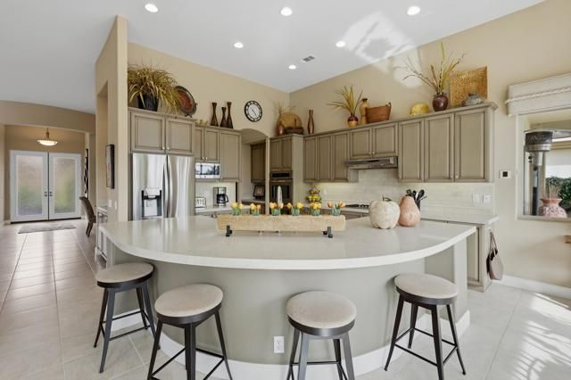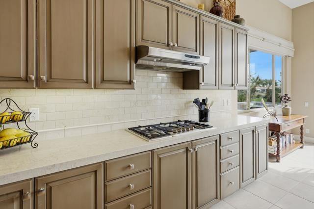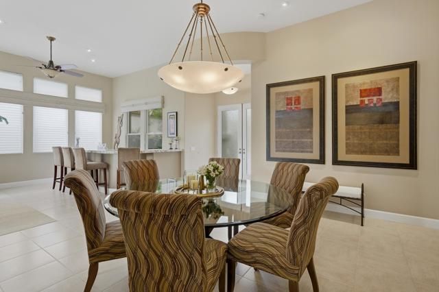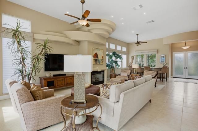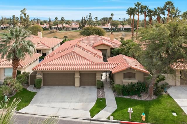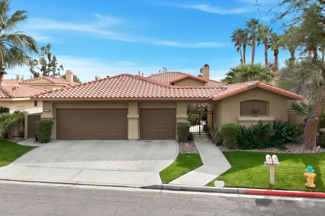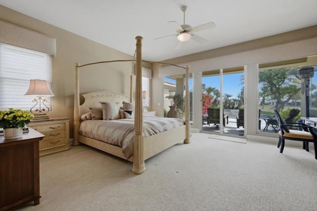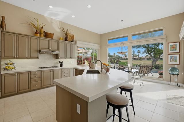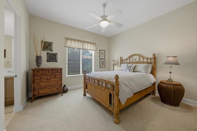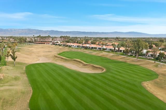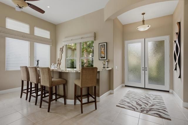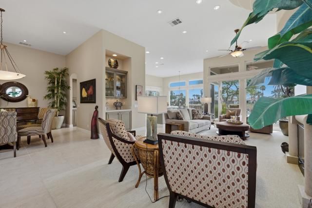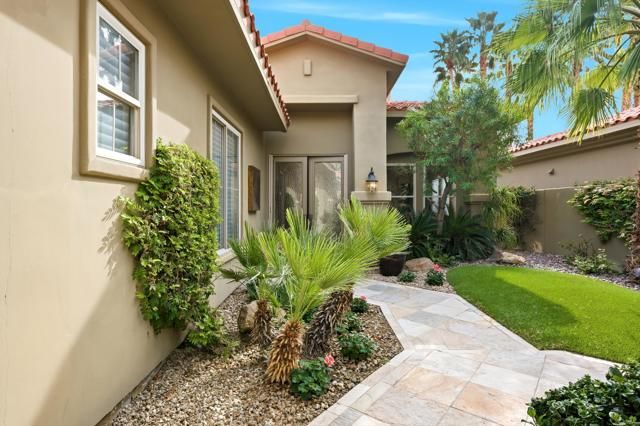 Welcome to the prestigious PGA West community and this immaculately maintained Augusta 3 floor plan ideally situated near the 10th green of the Jack Nicklaus Private Course. Offering 4 bedrooms, 5 bathrooms and 3013 square feet this home blends luxury, comfort and effortless desert living. The main residence features three spacious bedrooms, each with its own en suite bath, plus a detached casita-perfect for guests. Enter through the inviting side courtyard accented by a stone walkway, then step through custom double front doors into a bright, open concept living space designed for entertaining. The great room is highlighted by oversized windows that flood the home with natural light and showcase views of the outdoor living area and golf course. A custom bar with dual wine refrigerators and granite countertop anchors the space, seamlessly connecting to the living and dining areas. The remodeled kitchen features a large center island with quartz counters, high end stainless steel appliances and sight-lines to the stunning backyard. Outside, enjoy the stone patio, a custom salt water PebbleTec pool and spa to take in the breathtaking southern mountain views. Multiple seating areas- including a built-in fire pit-create the perfect setting for relaxing or entertaining. Custom awnings and misting system complete the enjoyment of the back patio. The primary suite is a true retreat, offering generous space and a luxurious en suite bath with dual vanities, a dedicated makeup counter, an oversized soaking tub, a custom walk in full tile shower and large walk in closet. Bedrooms 2 and 3 also feature en suite baths with full tub/shower combinations. A separate laundry room is conveniently located near the garage entry.The garage is an exceptionally functional air conditioned space with epoxy flooring, built in cabinetry and includes a golf cart for cruising the community.Offered turnkey furnished, this home is in immaculate condition and clearly reflects pride in ownership throughout- a rare opportunity to enjoy luxury living in one of PGA West's most sought-after locations. Just a short drive away are the world-famous Empire Polo Club, home to the Coachealla and Stagecoach music festivals, as well as the exclusive Thermal Club, renowned for its private motorsports experience. Explore Old Town La Quinta, featuring boutique shopping, acclaimed restaurants and local art.