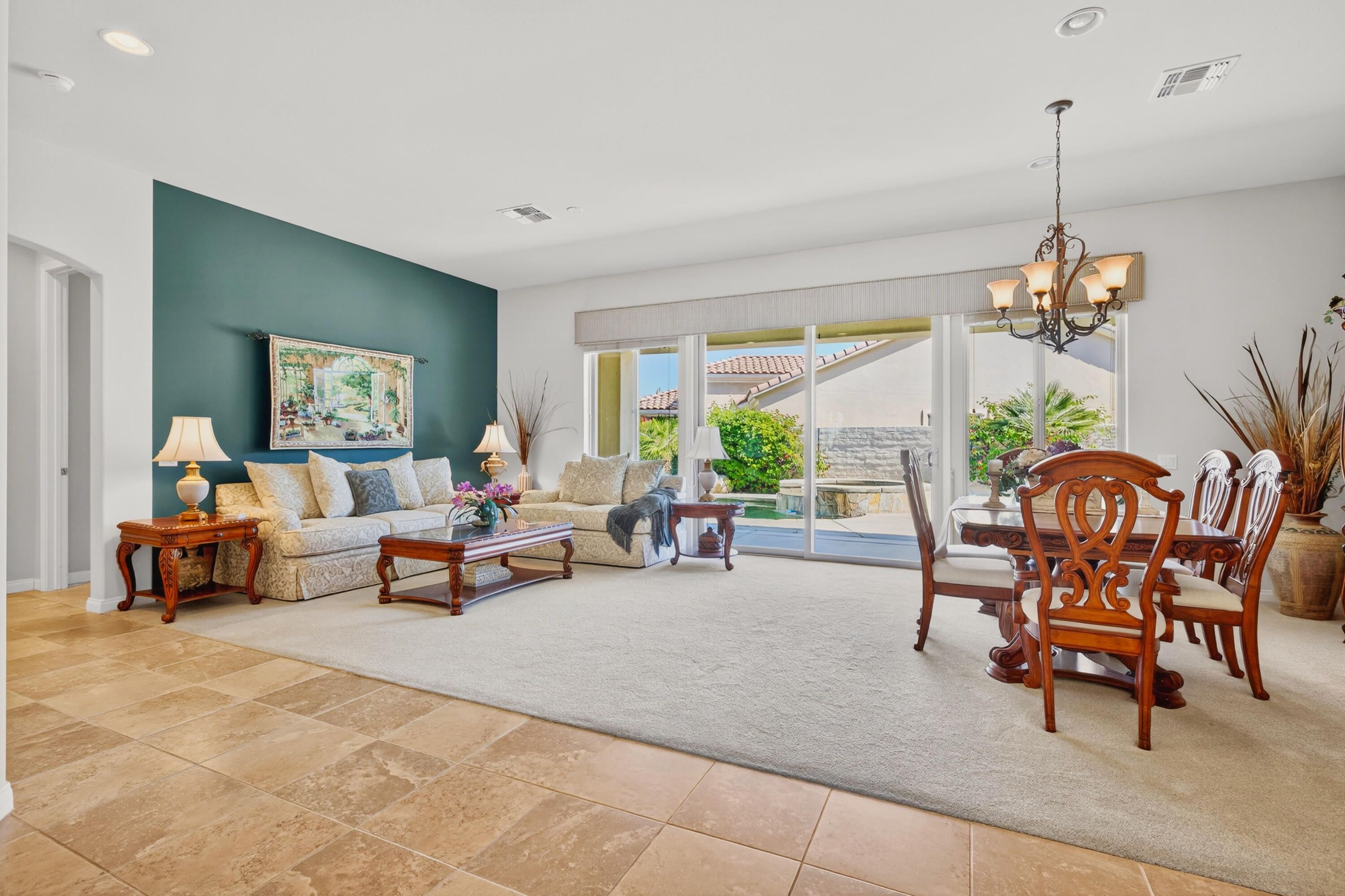 This beautiful San Miguel model is on a large corner lot in an ideal location in the community. Near the Jefferson Street gate and a very short stroll to the Montecito Clubhouse. The 2,569 sf floorplan is favored for its open living space, The kitchen and great room are perfect for entertaining. You'll find the huge kitchen island and bar to be the center of family gatherings and parties. 2 ensuite bedrooms are separated by a long hallway. The primary, at the back of the home is light, bight and provides direct access to the pool and spa. The attached bath has double sinks and vanity, and separate shower and tub. The closet is truly 'oversized' and storage opportunities abound. Guests will enjoy the solitude of their second 'primary,' with direct outdoor access.A large den/office features great natural sunlight. Outdoor living is one of the homes greatest features. The pool and spa are the centerpiece, The covered patio is expansive. Backyard space is rounded out by a bar and built-in barbecue. The Sun City Shadow Hills community provides all of the best amenities and lifestyle opportunities imaginable in the Coachella Valley. Great golf on the championship South golf course and an acclaimed par 3 North. Two clubhouses with gyms, pools and gathering spaces. Billiards, a library and over 60 clubs and organizations. Open houses will be held on: Thursday 2/26 11:00-1:00 Saturday 2/28 11:00-1:00