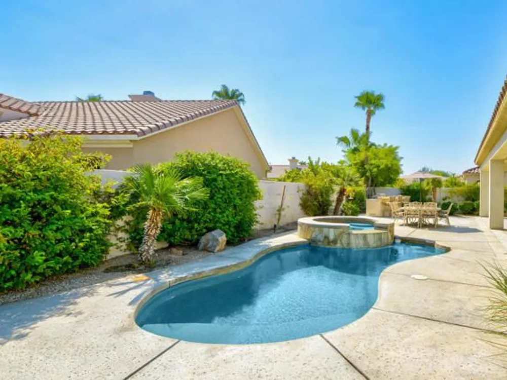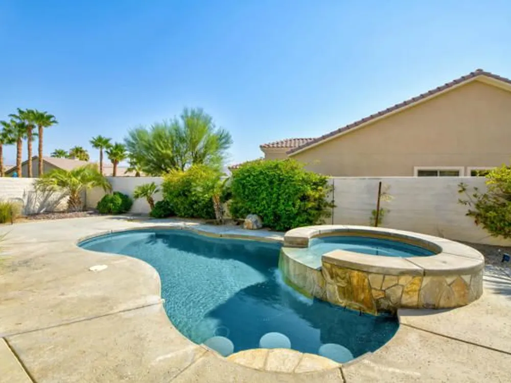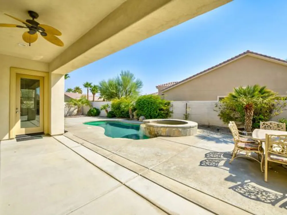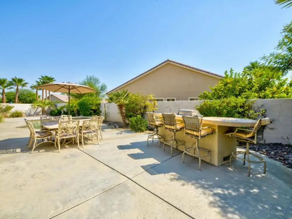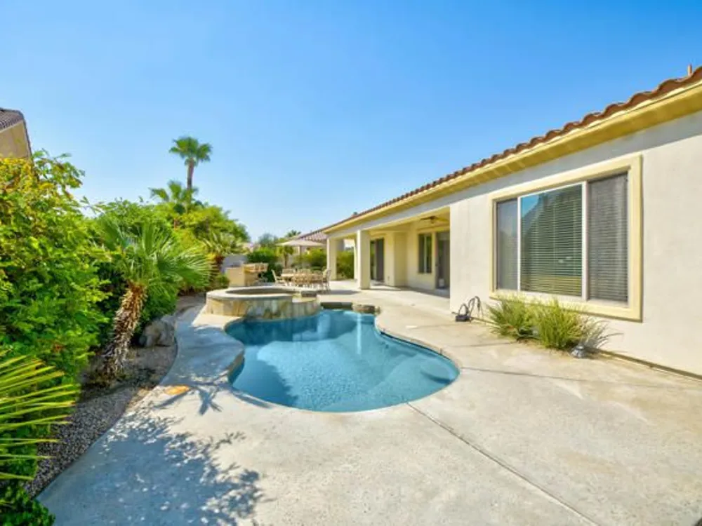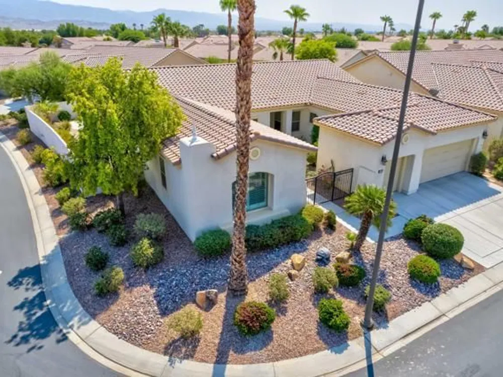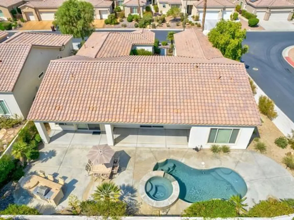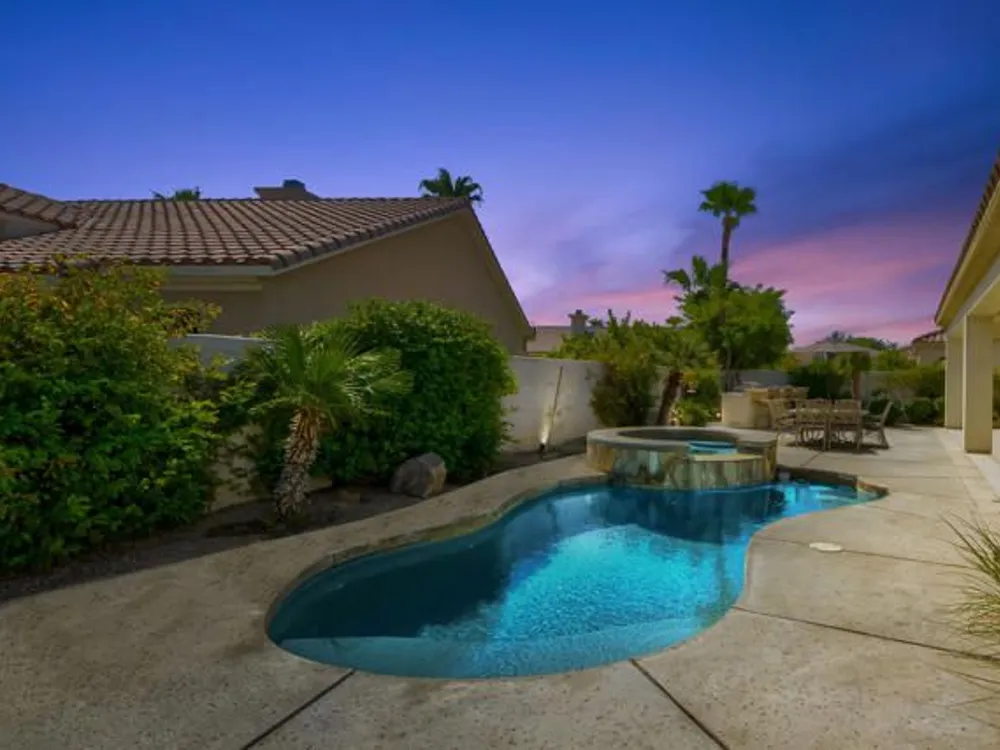 Welcome to this stunning San Miguel floor plan, beautifully finished and situated on a quiet corner privacy lot in the coveted gated community of Sun City Shadow Hills. This gem features a private pool, spa with waterfall feature, and built-in BBQ island and serving bar -- the perfect setting for year-round desert living. This 2,569 SF home with two private suites feels elegant and has been exceptionally maintained. Inside, elegant tile and plush carpet pair with custom window coverings, designer accent walls, and soaring ceilings with recessed lights and ceiling fans to create a warm, inviting atmosphere. The open layout offers multiple spaces for both entertaining and everyday living, including a formal dining area, spacious family room, and a versatile den with double door entry. This spacious kitchen has granite countertops, a center island, and two ovens perfect for entertaining. The primary suite offers patio access, dual vanities, an oval soaking tub, a glass-enclosed shower, and an oversized walk-in closet. The second suite features its own private entrance and full bath, providing comfort and privacy for guests. Additional features include a two-car plus golf cart garage, spacious laundry room with ample storage, and a newer A/C. Residents of Sun City Shadow Hills enjoy resort-style amenities including two clubhouses with fitness centers, pools, tennis, pickleball, bocce, golf courses, walking trails, on-site dining, and over 60 social clubs. With 24-hour gated security and a vibrant calendar of activities, it's the perfect place to stay active and connected year-round.