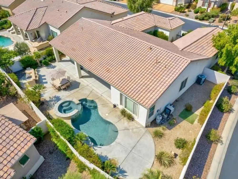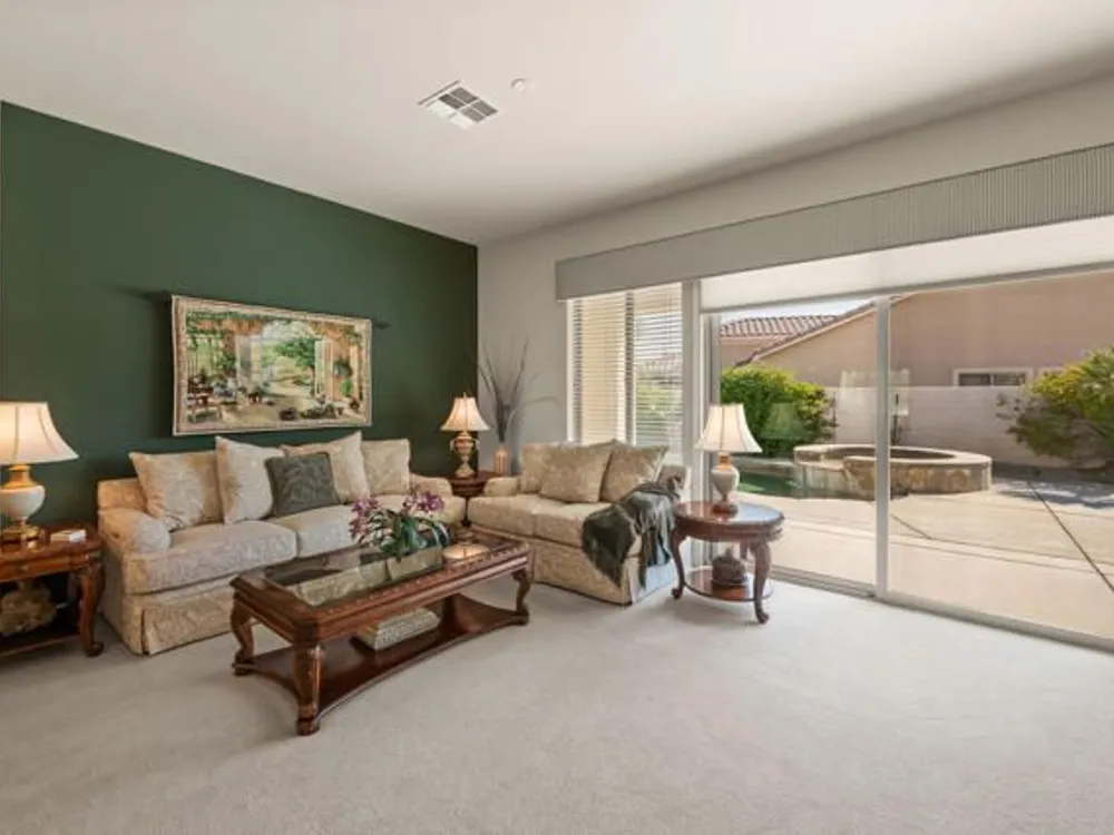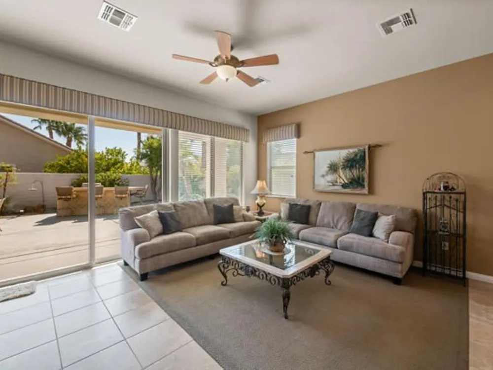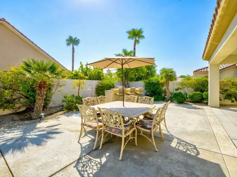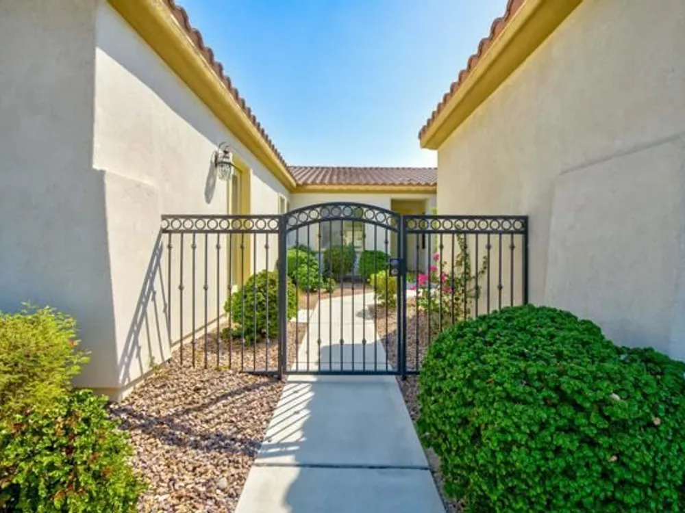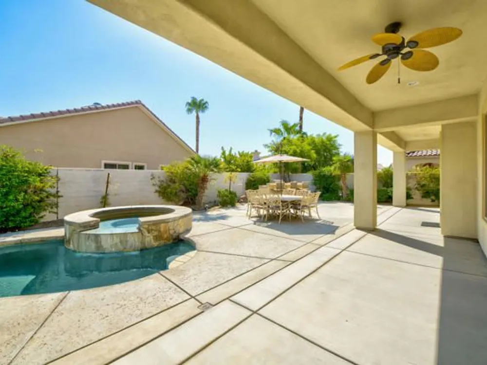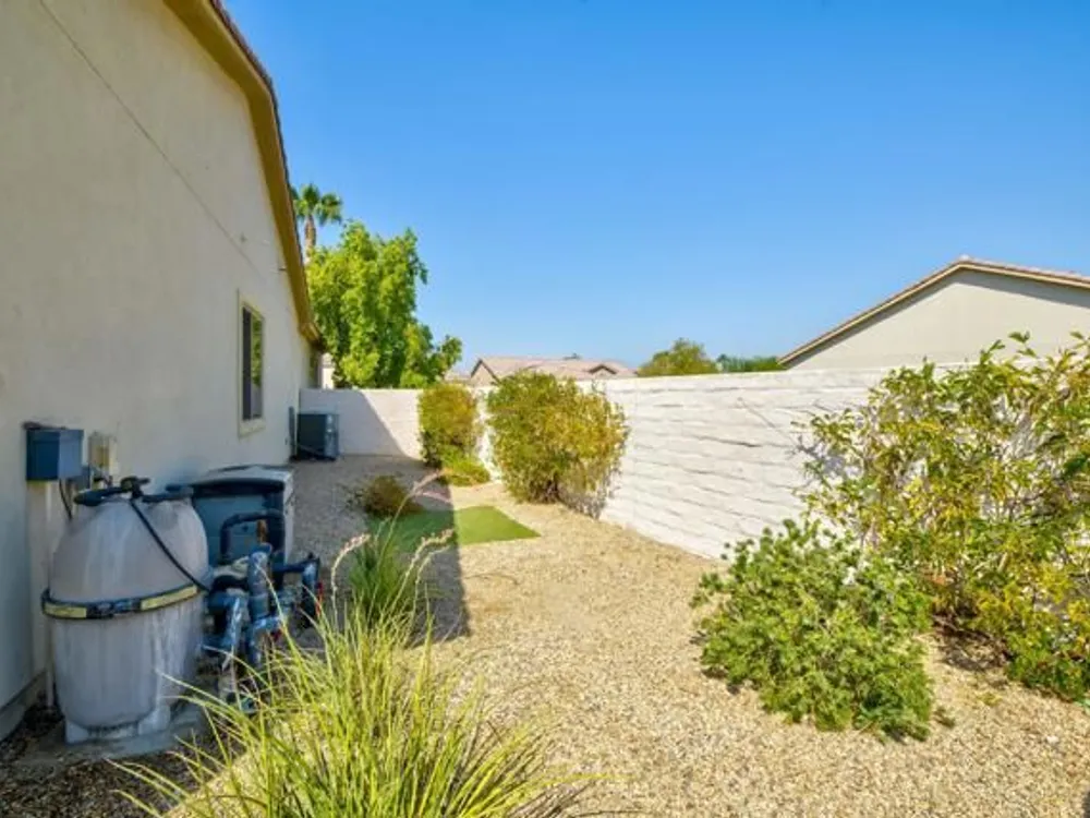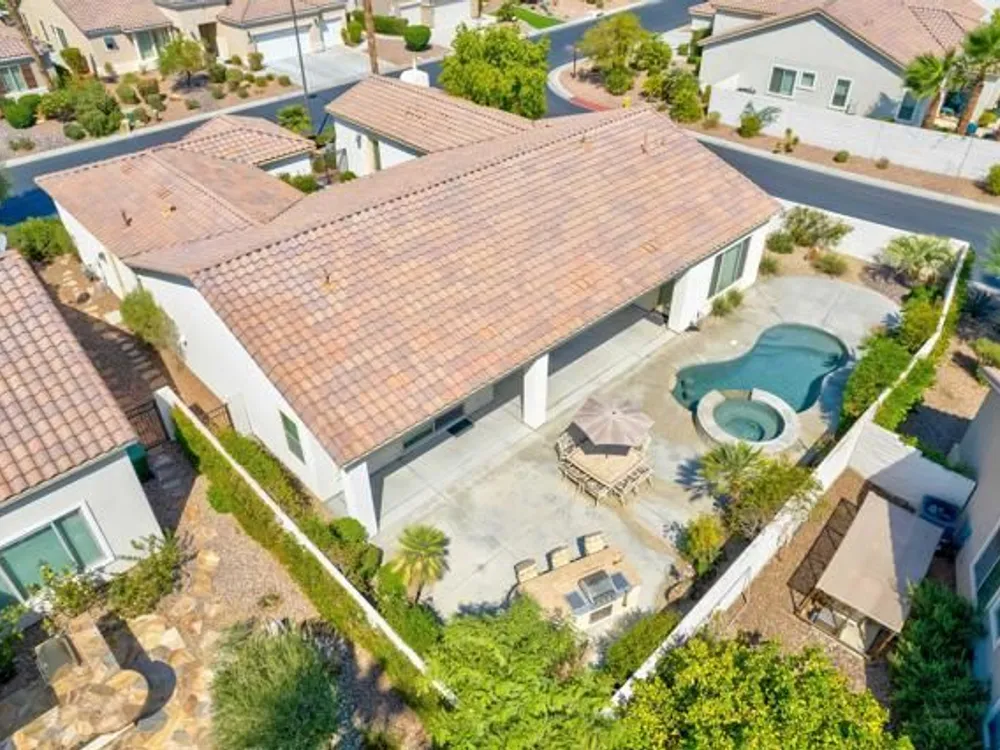 Welcome to this stunning San Miguel floor plan, beautifully finished and situated on a quiet corner privacy lot in the coveted gated community of Sun City Shadow Hills. This gem features a private pool, spa with waterfall feature, and built-in BBQ island and serving bar -- the perfect setting for year-round desert living. This 2,569 SF home with two private suites feels elegant and has been exceptionally maintained. Inside, elegant tile and plush carpet pair with custom window coverings, designer accent walls, and soaring ceilings with recessed lights and ceiling fans to create a warm, inviting atmosphere. The open layout offers multiple spaces for both entertaining and everyday living, including a formal dining area, spacious family room, and a versatile den with double door entry. This spacious kitchen has granite countertops, a center island, and two ovens perfect for entertaining. The primary suite offers patio access, dual vanities, an oval soaking tub, a glass-enclosed shower, and an oversized walk-in closet. The second suite features its own private entrance and full bath, providing comfort and privacy for guests. Additional features include a two-car plus golf cart garage, spacious laundry room with ample storage, and a newer A/C. Residents of Sun City Shadow Hills enjoy resort-style amenities including two clubhouses with fitness centers, pools, tennis, pickleball, bocce, golf courses, walking trails, on-site dining, and over 60 social clubs. With 24-hour gated security and a vibrant calendar of activities, it's the perfect place to stay active and connected year-round.