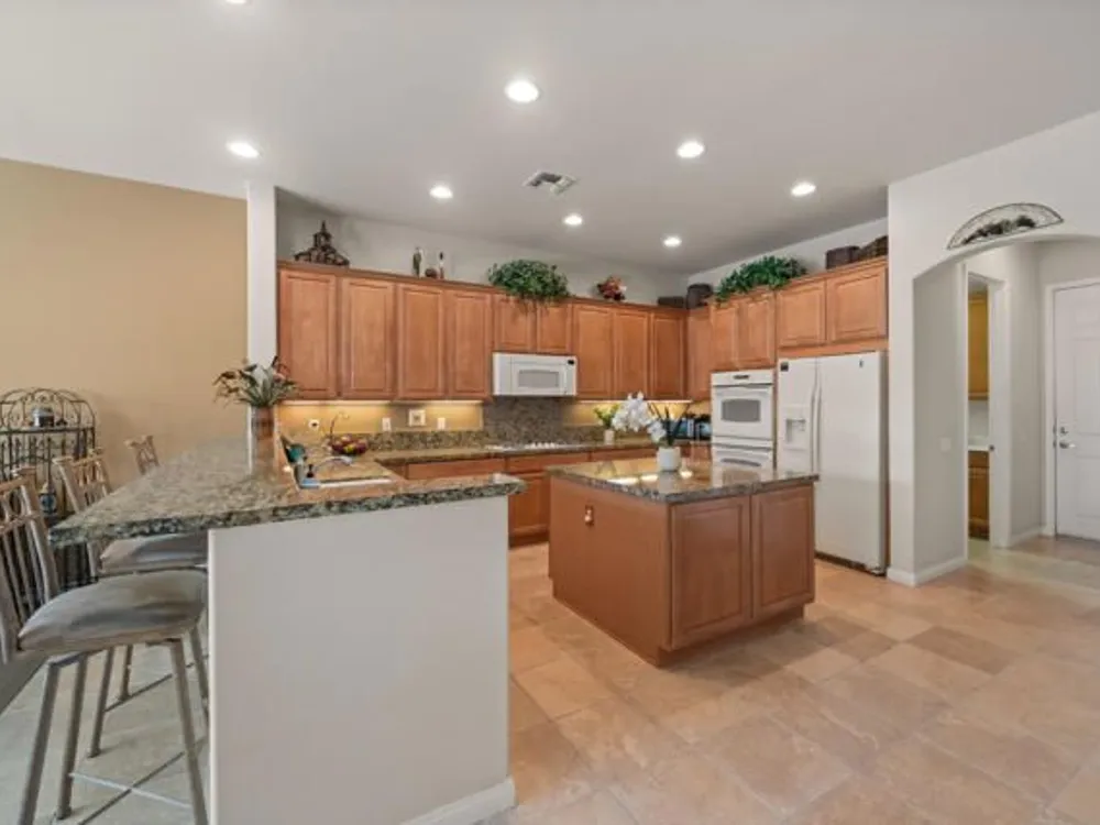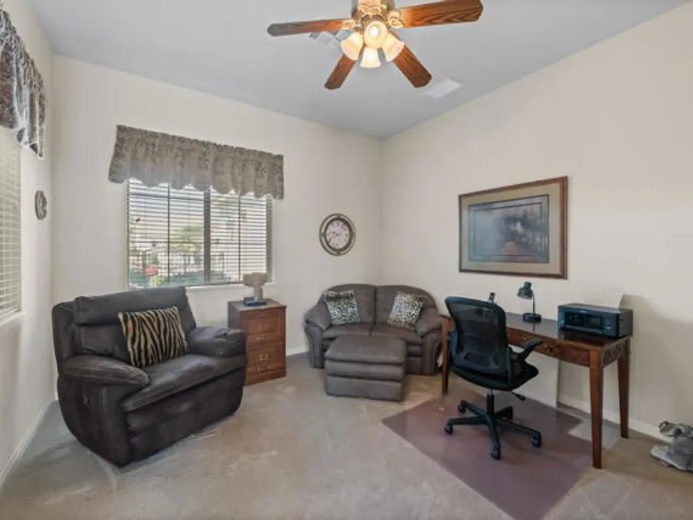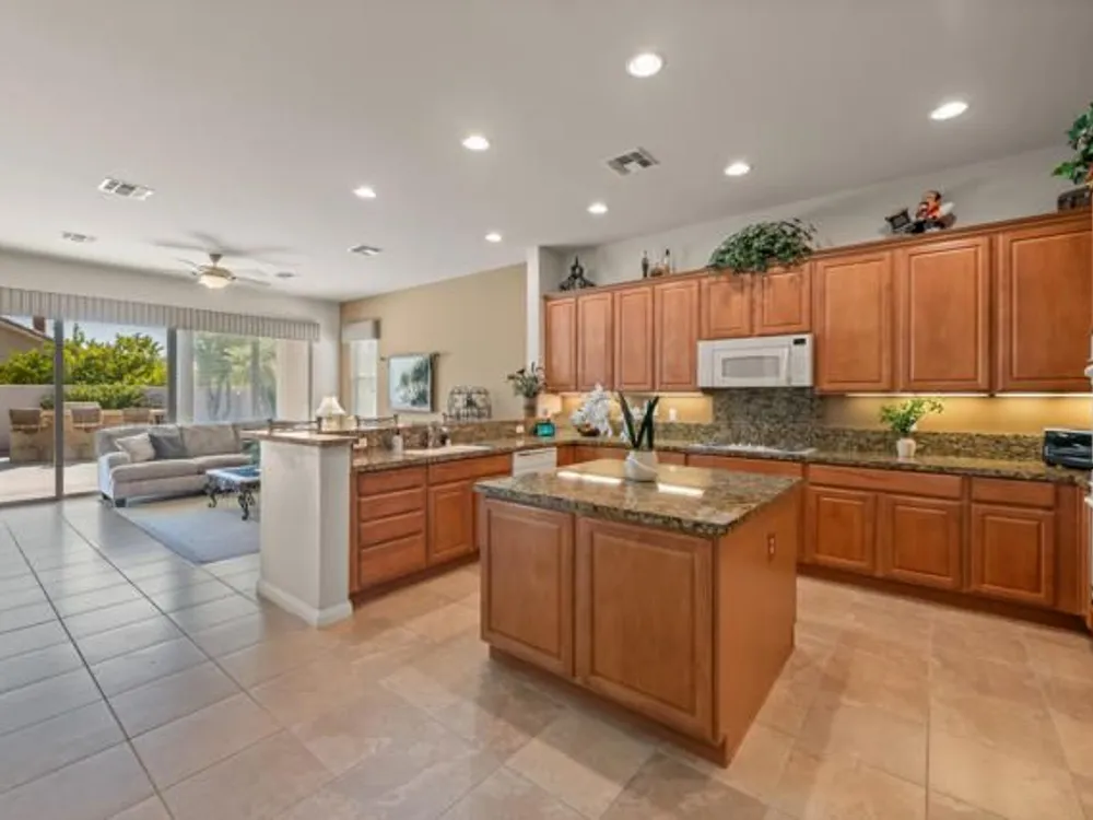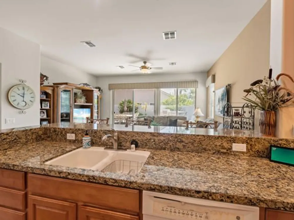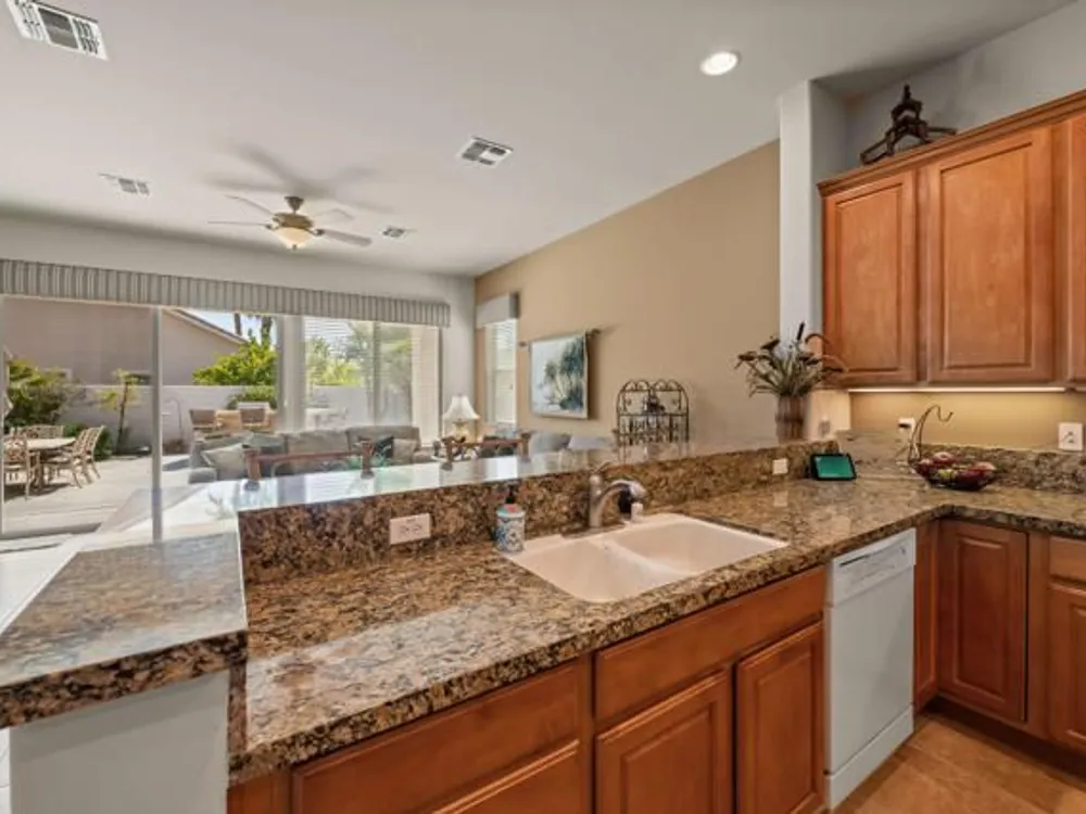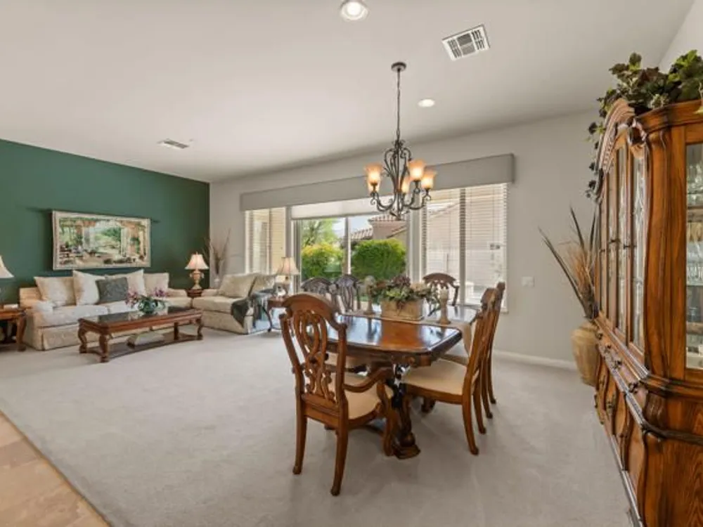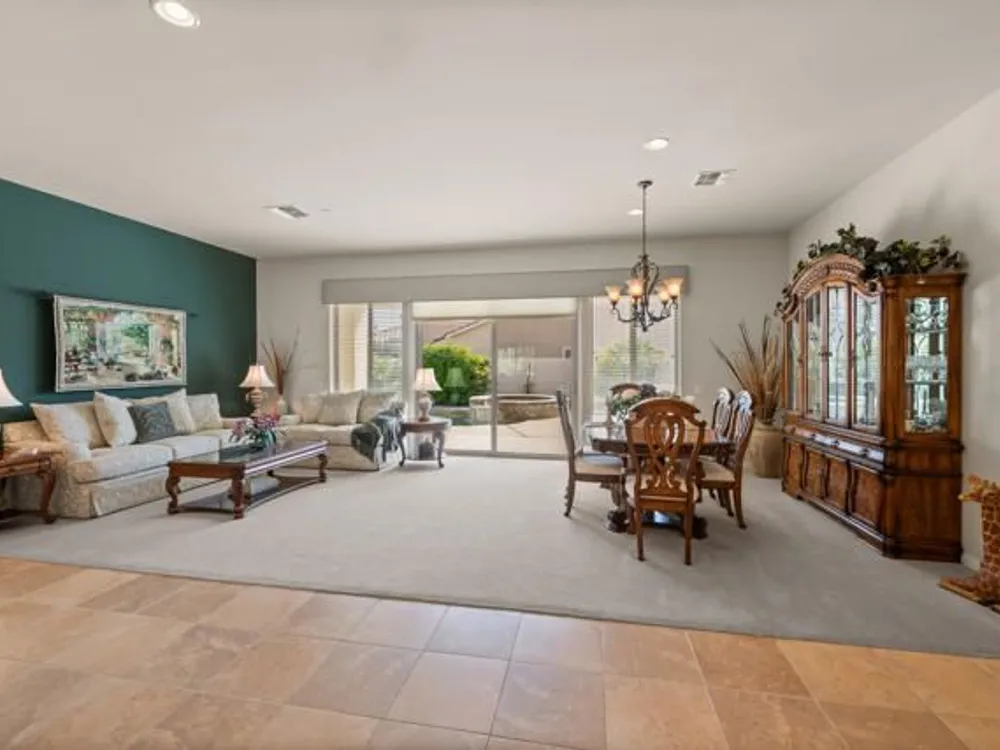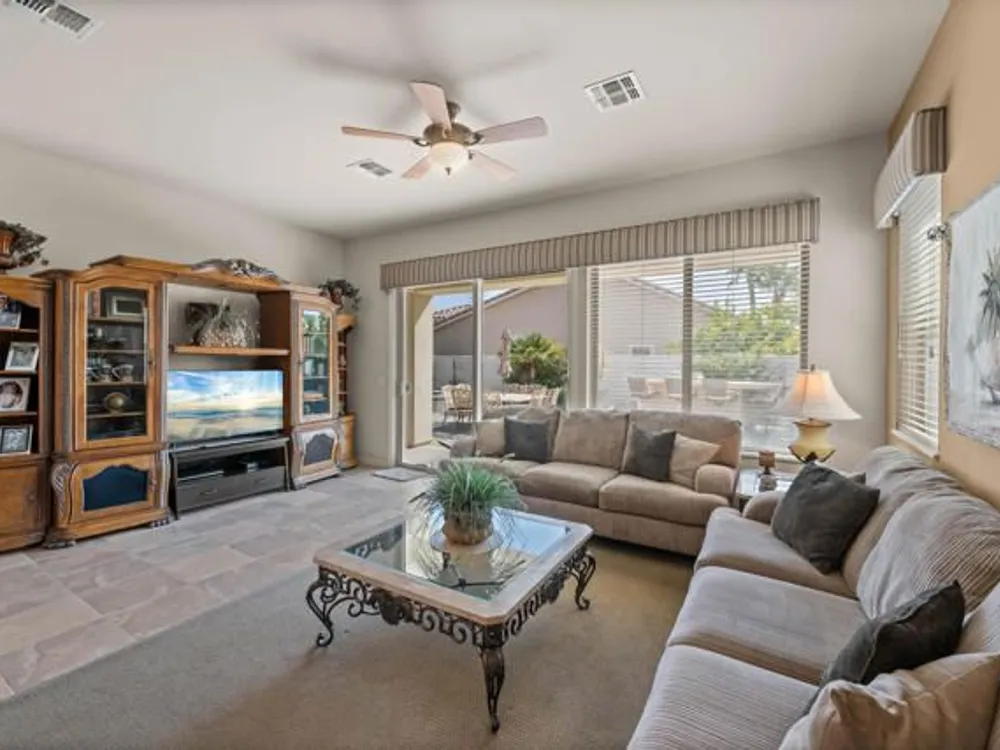 Welcome to this stunning San Miguel floor plan, beautifully finished and situated on a quiet corner privacy lot in the coveted gated community of Sun City Shadow Hills. This gem features a private pool, spa with waterfall feature, and built-in BBQ island and serving bar -- the perfect setting for year-round desert living. This 2,569 SF home with two private suites feels elegant and has been exceptionally maintained. Inside, elegant tile and plush carpet pair with custom window coverings, designer accent walls, and soaring ceilings with recessed lights and ceiling fans to create a warm, inviting atmosphere. The open layout offers multiple spaces for both entertaining and everyday living, including a formal dining area, spacious family room, and a versatile den with double door entry. This spacious kitchen has granite countertops, a center island, and two ovens perfect for entertaining. The primary suite offers patio access, dual vanities, an oval soaking tub, a glass-enclosed shower, and an oversized walk-in closet. The second suite features its own private entrance and full bath, providing comfort and privacy for guests. Additional features include a two-car plus golf cart garage, spacious laundry room with ample storage, and a newer A/C. Residents of Sun City Shadow Hills enjoy resort-style amenities including two clubhouses with fitness centers, pools, tennis, pickleball, bocce, golf courses, walking trails, on-site dining, and over 60 social clubs. With 24-hour gated security and a vibrant calendar of activities, it's the perfect place to stay active and connected year-round.