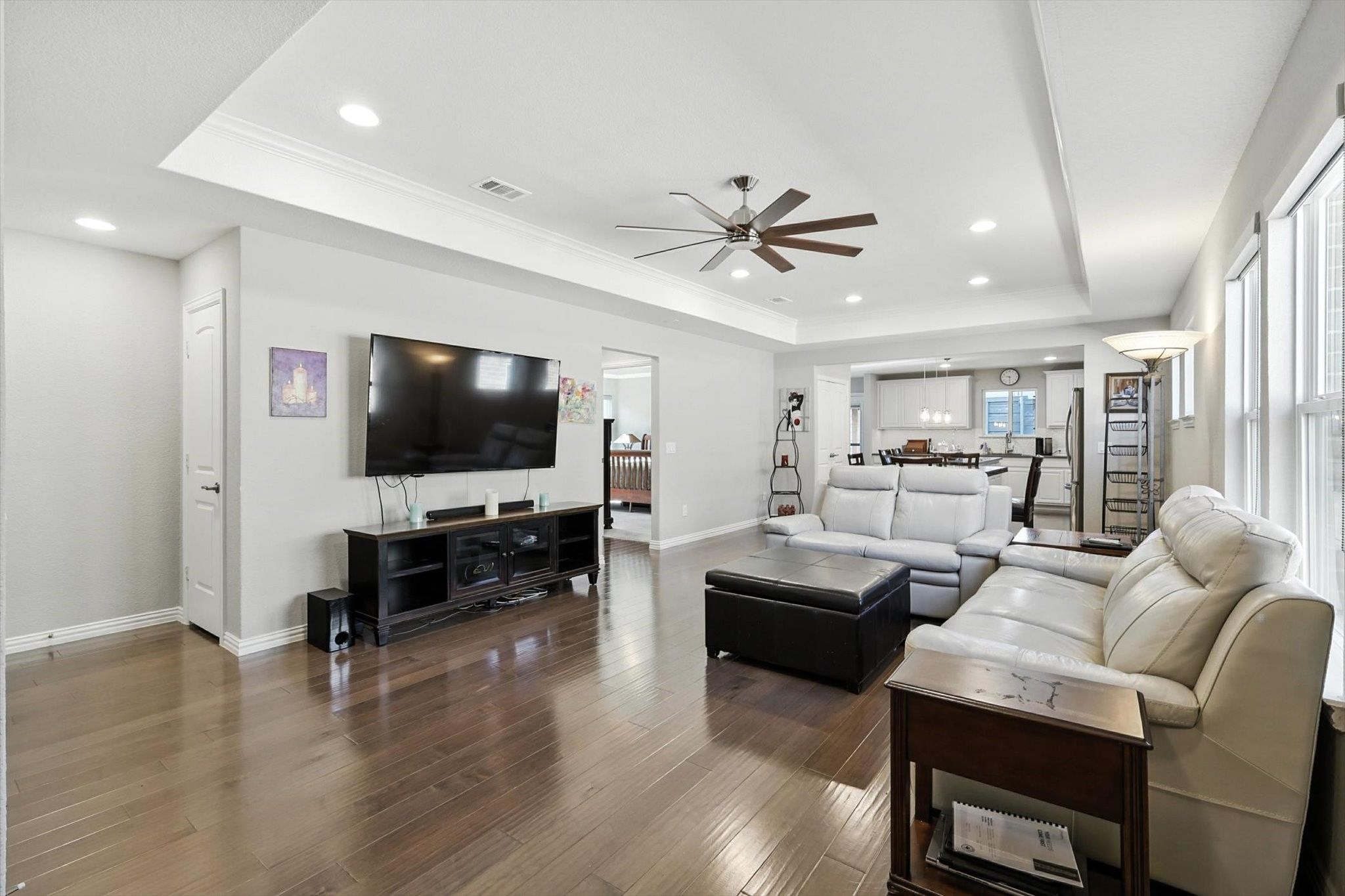 Welcome to your perfect home in the vibrant Del Webb community, right around the corner from the fantastic amenity center! This meticulously cared-for 3-bedroom, 2-bathroom residence offers a perfect balance of elegance, practicality, and comfort. Upon entering, you’ll be greeted by an open floor plan with beautiful hardwood floors and custom ceiling fans throughout. The chef-inspired kitchen is a true gem, boasting luxury drawer organizers in every cabinet, plenty of electrical outlets, and top-tier finishes that make both cooking and entertaining a breeze. Start your day with a cup of coffee on the inviting front porch, then retreat to the serene sunroom with peaceful views of the backyard. The expanded custom cedar patio is an ideal spot for outdoor gatherings or a relaxing evening under the stars. The thoughtfully designed split-bedroom layout ensures privacy, while the versatile third bedroom can easily be adapted as an office, craft room, or guest room. Added features like storm doors enhance both security and comfort. Don’t miss out! 380 construction is expected to wrap up by Spring 2026! This home offers the ultimate in low-maintenance luxury living, located in one of the most desirable 55+ communities around. Plus, the furniture and grill on the back patio are negotiable!