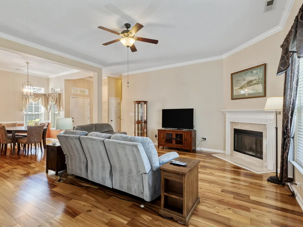 Welcome to this beautifully maintained three-bedroom, two-bath home located in the highly sought-after Berkshire Forest neighborhood within Carolina Forest. Situated on an expansive fenced lot, this residence offers both privacy and plenty of room to enjoy the outdoors. Step inside to find a spacious and inviting living area with abundant natural light, crown molding, and a cozy fireplace perfect for gatherings. The well-appointed kitchen features stainless steel appliances, ample cabinetry, and a breakfast nook that overlooks the backyard. A highlight of this home is the stunning Carolina room with a vaulted ceiling—ideal for relaxing year-round while taking in serene views of the backyard. The large primary suite is a true retreat, complete with a walk-in closet and a beautifully updated bathroom. The primary bath showcases a walk-in custom tile shower, a double sink vanity with granite countertops, and elegant finishes that combine style and function. Two additional bedrooms and a second full bath provide comfort and flexibility for family, guests, or a home office. Outdoors, the expansive fenced yard with irrigation offers endless possibilities for entertaining, gardening, or simply enjoying the peaceful setting. Berkshire Forest is a master-planned community known for its fantastic amenities, including a clubhouse, resort-style pools with lazy river and splash pad, walking trails, tennis and basketball courts, and access to a private lake with community dock. Located just minutes from top-rated schools, shopping, dining, golf, and Myrtle Beach attractions, this home offers the perfect blend of comfort, convenience, and community living. Don’t miss the opportunity to make this move-in ready home yours—schedule your showing today!