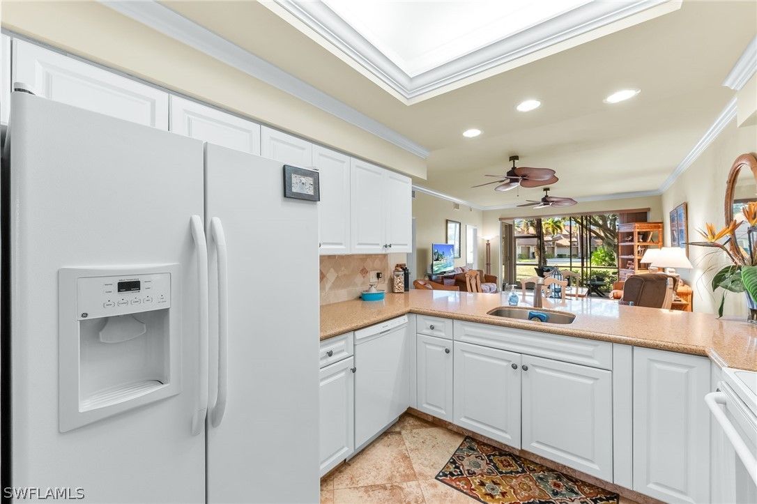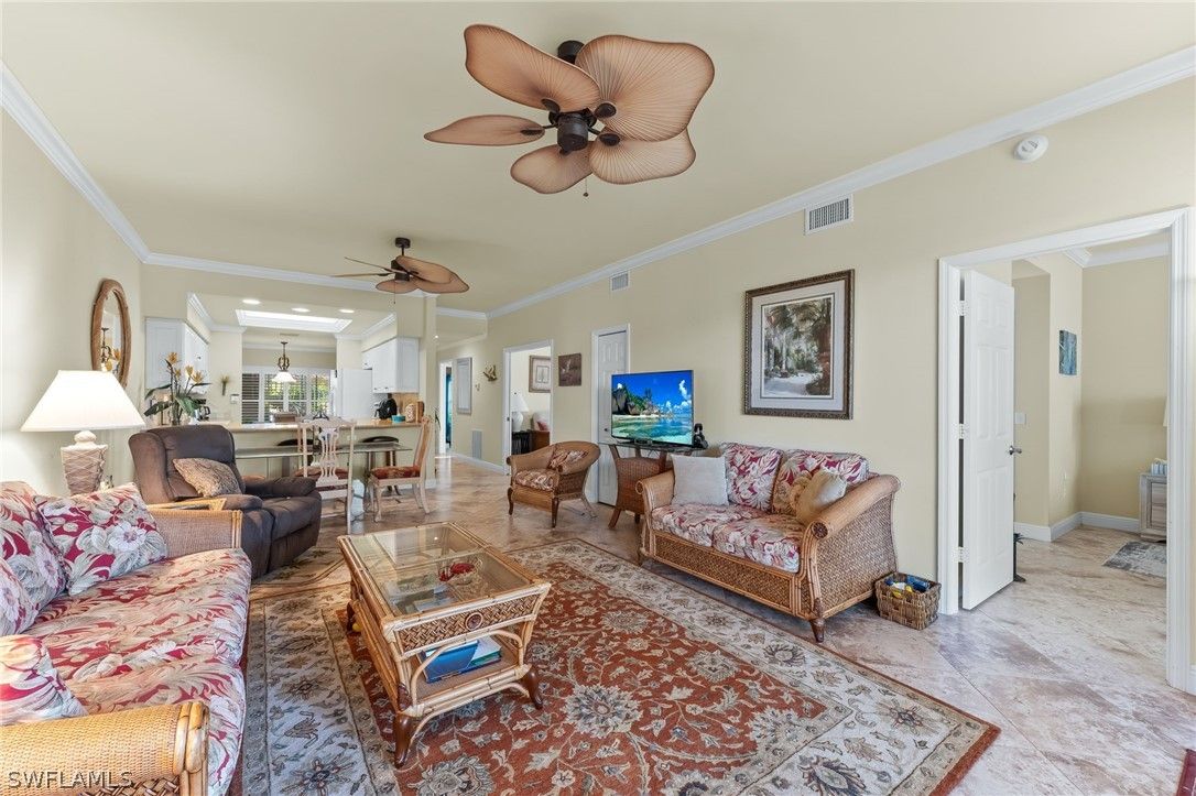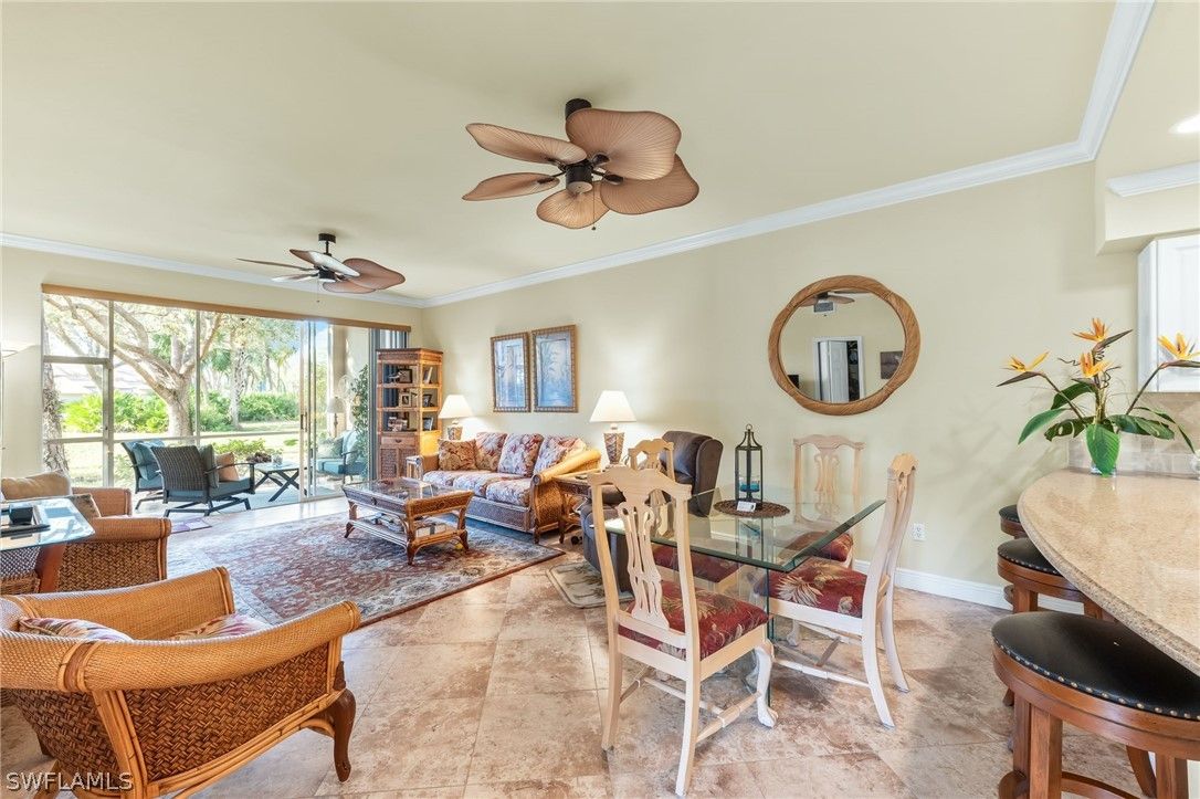 Discover the perfect blend of comfort and convenience in this beautifully decorated first- floor end unit located in the sought-after Verandas of Lely Resort. This meticulously maintained condo offers a bright, airy atmosphere and the ease of ground-floor living, complete with a private one-car garage. This home features a thoughtful layout with two spacious bedrooms and a versatile den equipped with pocket doors, perfect for a home office or a quiet guest retreat. Recent updates throughout ensure a move-in-ready experience. The updated kitchen boasts gorgeous granite countertops paired with clean white appliances for a timeless look. The modern flooring is durable and stylish tile floors that flow through the kitchen and great room, while the bedrooms feature updated laminate flooring for a warm, contemporary feel. Both bathrooms have been tastefully updated with modern touches. Step outside, and the best of the community is literally steps away: a refreshing pool, bocce courts, a clubhouse, and tennis/pickleball courts are right at your fingertips. While the famous Players Club and Spa membership is optional, this prime location puts you at the epicenter of the Naples lifestyle! Indulge in world-class shopping, explore vibrant art galleries, savor fine dining, and hit the links at championship golf courses all just moments away. With super easy access to I-75, you're only a short, scenic drive from the pristine beaches of Marco Island or the vibrant energy of 5th Avenue! It's time to stop dreaming and start living! Seize this chance to LIVE, LAUGH, AND LOVE YOUR BEST LIFE, THE LELY LIFE TODAY!