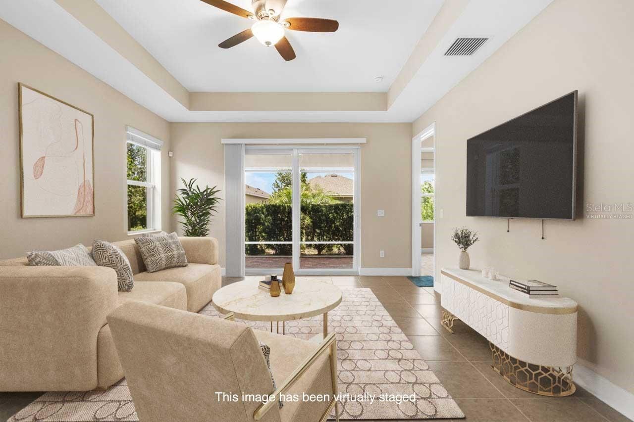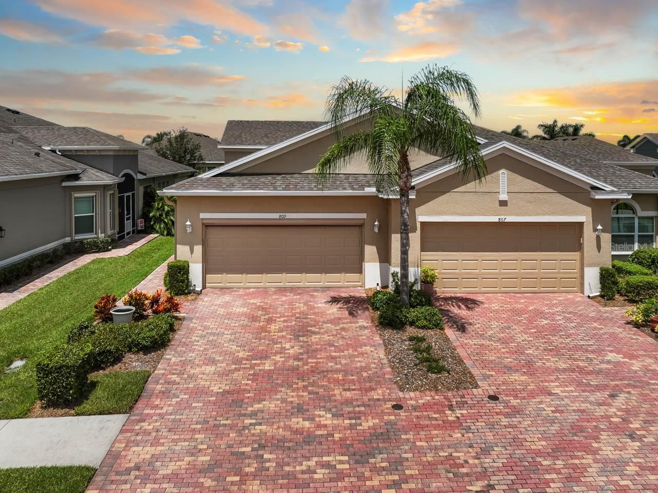 One or more photo(s) has been virtually staged. Charming 2-bed, 2-bath, 2-car garage home in the exclusive Verona neighborhood within the golf-friendly community of Renaissance, Sun City Center! This inviting home is an ideal retreat for year-round living or for snowbirds seeking comfort and convenience in a 55+ gated community. The Verona HOA takes care of all exterior maintenance while you’re away, including lawn mowing, weeding, fertilizing, and trimming of bushes and trees. For added peace of mind, the home features easy-to-use roll-down HURRICANE SHUTTERS on every window, providing both storm protection and security. Plus, the HOA covers exterior house painting every 7 years and routine roof replacement! This home is one of the last new builds in Sun City Center, a sought-after golf cart community. It’s MOVE-IN READY with fresh carpets in the bedrooms, NEWLY PAINTED exterior, and professionally maintained grouted tile floors. Unique features include a convenient push-button ROLL-DOWN SCREEN on the garage door and SOLAR SHADES on the lanai. There’s also space behind the home to add a birdcage if desired. With 2 bedrooms, 2 bathrooms, and a bonus TWO-PERSON OFFICE featuring built-in cabinets and GRANITE countertops, this villa offers ample living space. The spacious kitchen boasts plenty of WOOD CABINETS, drawers, a BREAKFAST BAR, stylish backsplash, and under-cabinet lighting! There are TRAY CEILINGS in the living room and primary bedroom, and NEW SLIDERS leading out to the COVERED & SCREENED LANAI. There's even a covered and screened entryway with a beautiful walkway connecting to the paver driveway! The primary bedroom features an EN-SUITE BATHROOM complete with DUAL-SINK VANITY, water closet, beautifully tiled shower with bench, and a grand WALK-IN CLOSET! As a resident of Verona, you'll have access to a private heated pool and pool house. Additionally, this home is located within the Renaissance Golf Club community, where members enjoy exclusive perks, including a resort-style heated pool with poolside service, private dining options, and access to a well-equipped fitness center, exercise classes, and luxurious spa services, including massages, saunas, and steam rooms. As a resident of the Sun City Center Community Association, you’ll also have access to over 150 social clubs, three additional swimming pools, and another fitness center! The location offers easy access to Tampa, St. Pete, Bradenton, and Sarasota. So much to experience here! Schedule your showing today!