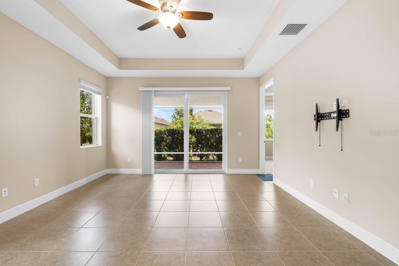 - Ceiling Fan(s), High Ceilings, Living/Dining Room, Open Floorplan, Solid Surface Counters, Solid-Wood Cabinets, Stone Counters, Thermostat, Tray Ceiling(s), Walk-In Closet(s), Window Treatments