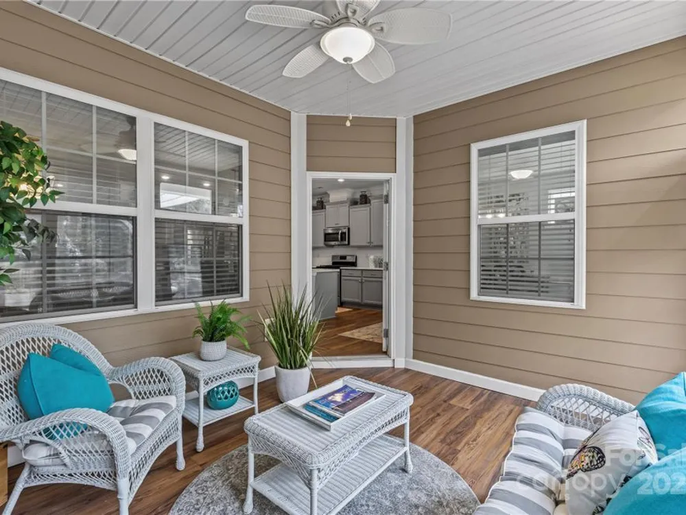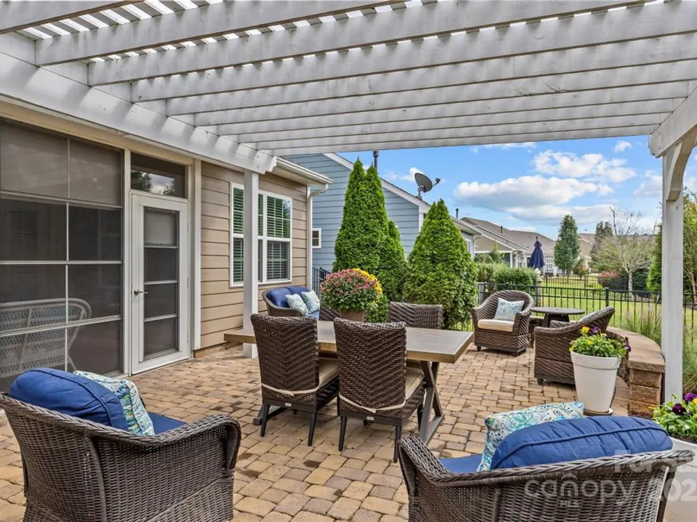 Located in the gated Tree Tops community for 55-and-better living, this single-story ranch residence offers 1,861 square feet of thoughtfully designed space on a 0.17-acre homesite. Built in 2017, this home blends comfort with functionality in a sought-after, amenity-rich neighborhood. The open floor plan includes a large primary suite plus additional bedroom AND a spacious flex/office space with French doors. A gourmet kitchen anchors the living space with ample storage and workspace, complemented by fresh paint and contemporary finishes throughout. The two-car garage provides additional storage, while the low-maintenance outdoor space is ideal for relaxed living. Gorgeous all-weather porch added by seller allows for additional living area all year round. The porch flows easily to the oversized paver patio overlooking the fenced backyard with custom landscaping! This unique outdoor living space is perfect for private entertaining. Tree Tops residents enjoy access to a clubhouse, pool, fitness center, dog park, walking trails and a full calendar of social events tailored for active adult lifestyles. This home presents a rare opportunity to own in one of Indian Land/ Lancaster County’s most desirable 55-plus communities!
