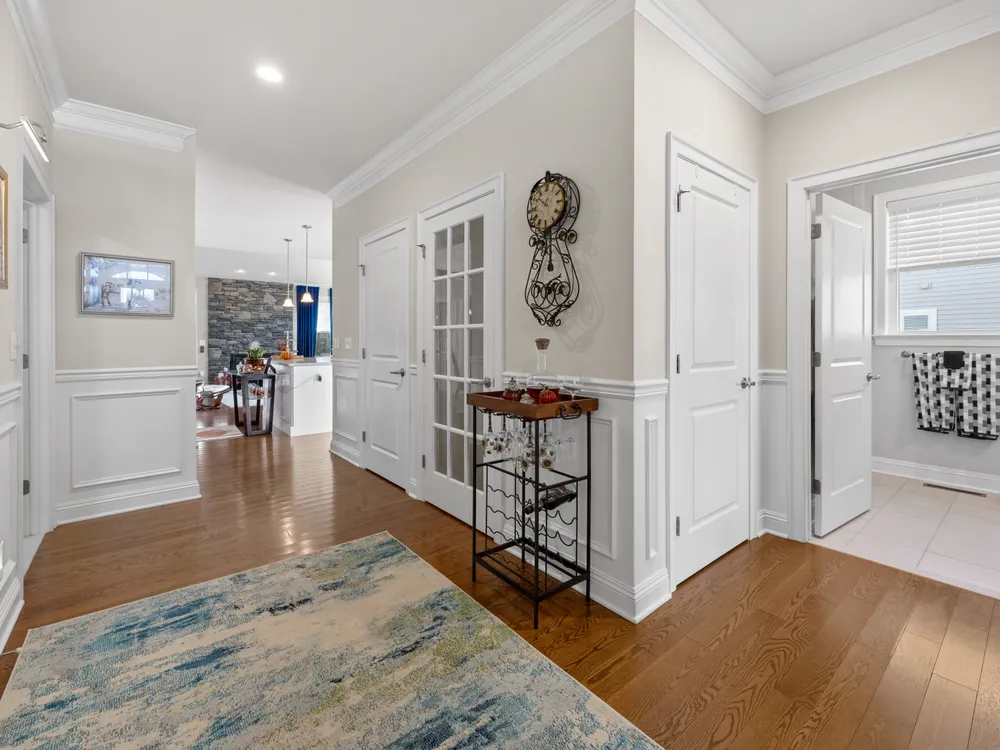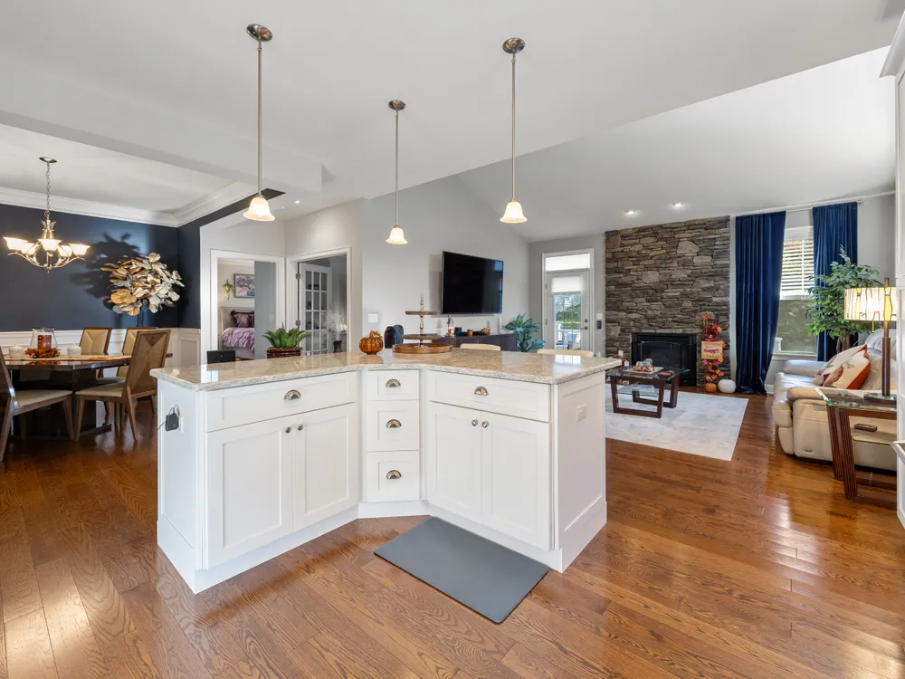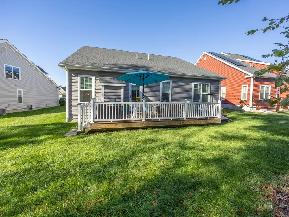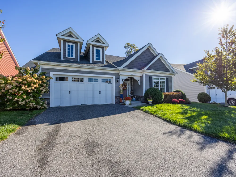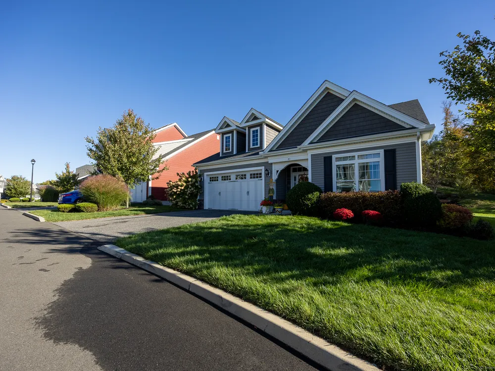 Welcome to 81 Fieldstone Lane! This one level Ranch home located in a 55+ Luxury Community of Chatfield Farms. These homes are rarely available. This Meticulously kept home offers 6 rooms, 2 bdms & 2 full baths. Walk through the front door and immediately feel welcomed by the large foyer that leads to the Gorgeous Kitchen w/White Quartz counters, tiled backsplash, Large Island, SS Appls including a 5-burner gas cooktop & wall oven with custom hood, a pantry and recessed lighting. The Kitchen opens to the Dining Rm and Family Rm offering a floor to ceiling Stone Gas Fireplace. There are Wide Plank Hardwood Flrs & Crown Molding throughout the main level. The French doors lead to the 1st floor office with custom cabinetry and built ins. The Primary Bedroom features a large walk-in closet, a full-on suite bathroom with double sinks, quartz counters and a walk-in tiled shower. Down the hall is the 2nd bedroom and 2nd Full Bath. The laundry room is located on the main level. Off the back is a Maintenance Free Trex Deck for your outdoor Enjoyment! The Lower level has been partially finished offering an addl 700 sq ft to your living area and tons of storage. The home's additional features include a 2 Car Attached Garage, a Generator & an Irrigation System. This Community offers a Clubhouse, Inground Heated Pool, Health Club w/Spa, Pickle Ball Courts, Library, Nature Trails & so much more. Don't miss this rare opportunity to make this Stunning unit in Chatfield Farms your New Home! Garage is wired for an Electric Vehicle.