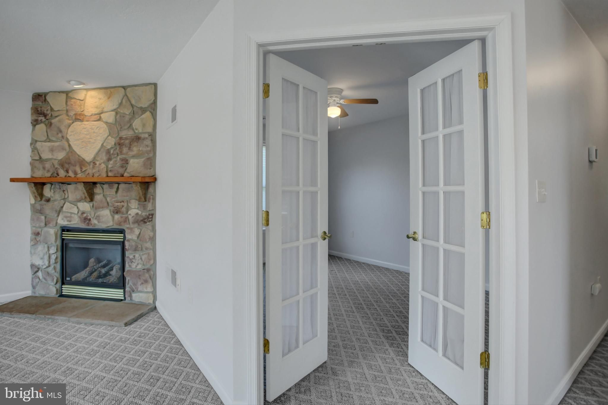 Welcome to effortless elegance in this immaculate, freshly painted ranch home, nestled within the exclusive gated 55+ Country Manor Adult Community. This move-in-ready 2-bedroom, 2-bath residence, with freshly cleaned carpets, offers a seamless blend of comfort and sophistication. The spacious living room, featuring a stunning stone gas fireplace, flows effortlessly into the formal dining area, creating an ideal space for entertaining. The large kitchen is a chef’s delight, boasting an island, walk-in pantry, and a charming breakfast nook framed by expansive bay windows. A versatile den with French doors provides a perfect home office or cozy retreat. The primary bedroom is a serene escape, complete with a luxurious full bath with a walk-in shower. Convenience abounds with a laundry room featuring a utility sink, located off the 2-car garage with a generous driveway. Relax outdoors on the inviting front porch or back patio, perfect for enjoying peaceful moments. The home is economically heated with natural gas forced hot air and cooled with central AC. From the back patio you can enjoy the common space with benches, shuffleboard, horseshoes, with a short walk up the hill you will find a dock with a screened-in gazebo overlooking the mountain and stocked fishpond with fountain, and a tastefully appointed club house featuring a large room for personal or community gatherings, full kitchen with island, cozy gas fireplace, community run activities and library, and for an extra fee, fitness room access. Other community amenities include security gates at all entrances and walking trails. This exclusive, quiet lifestyle comes with your full ownership of the home as deeded airspace rights and a 29-year, renewable, land lease for your lot and a monthly fee of $633, which also includes your sewer, trash, and recycling. Pets are welcome and limited to two per household. Conveniently located to shopping, restaurants, entertainment, golf, doctors and hospitals, and major highways. This pristine home in Country Manor is ready for you to start your next chapter in style!