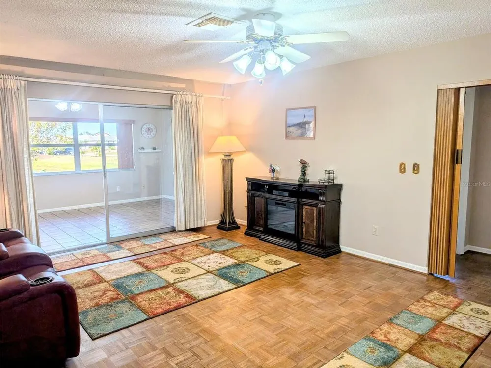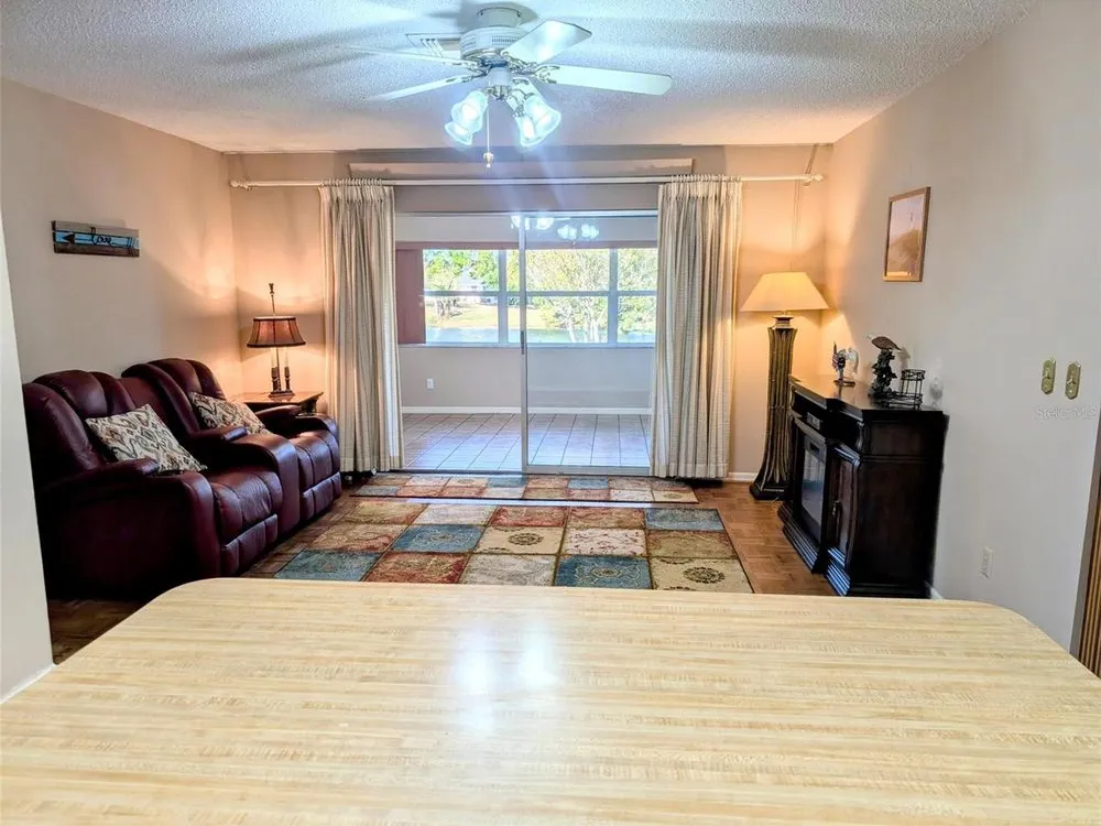 Fabulous, beautifully maintained Twintree with gorgeous lake view. NEW ROOF MAY 2025!! Open your front door with screened private patio and step into a spacious living room with large picture window featuring new carpet that extends to the adjoining dining room. Easy access to your light and bright Kitchen with an abundance of counter, cupboard space and a handy pass through counter to your family room...such convenience! A good sized laundry with lots of storage off the kitchen leads to your 2 car garage complete with a wall of storage. The relaxing family room features double sliding doors opening to your Florida room and wow that lovely view of Shimmering Lake. through a huge window.. so relaxing... and even more built in storage. Step through to your screened lanai, a must have in Florida.. and yet again that view. Your primary Bedroom looks out on to the lake and features lovely wood floors, 2 walk in closets and large attached ensuite bathroom. The private second bedroom features a large closet and adjacent bathroom with tub. Such a great floor plan.. an abundance of storage, 2 car garage with retractable door screen. Lawn maintenance included in fees with irrigation water from the lake. Relax, enjoy the view experience all that Sun City Center has to do. Your minutes from Super Walmart, Publix, restaurants, shopping , doctors.. all accessible by Golf cart. Sun City Center has over clubs and ammenities, including, pools, golf, fitness center, pickleball and tennis to name a few. Pack your bags and move on in! Under your brand new roof in your Florida paradise.