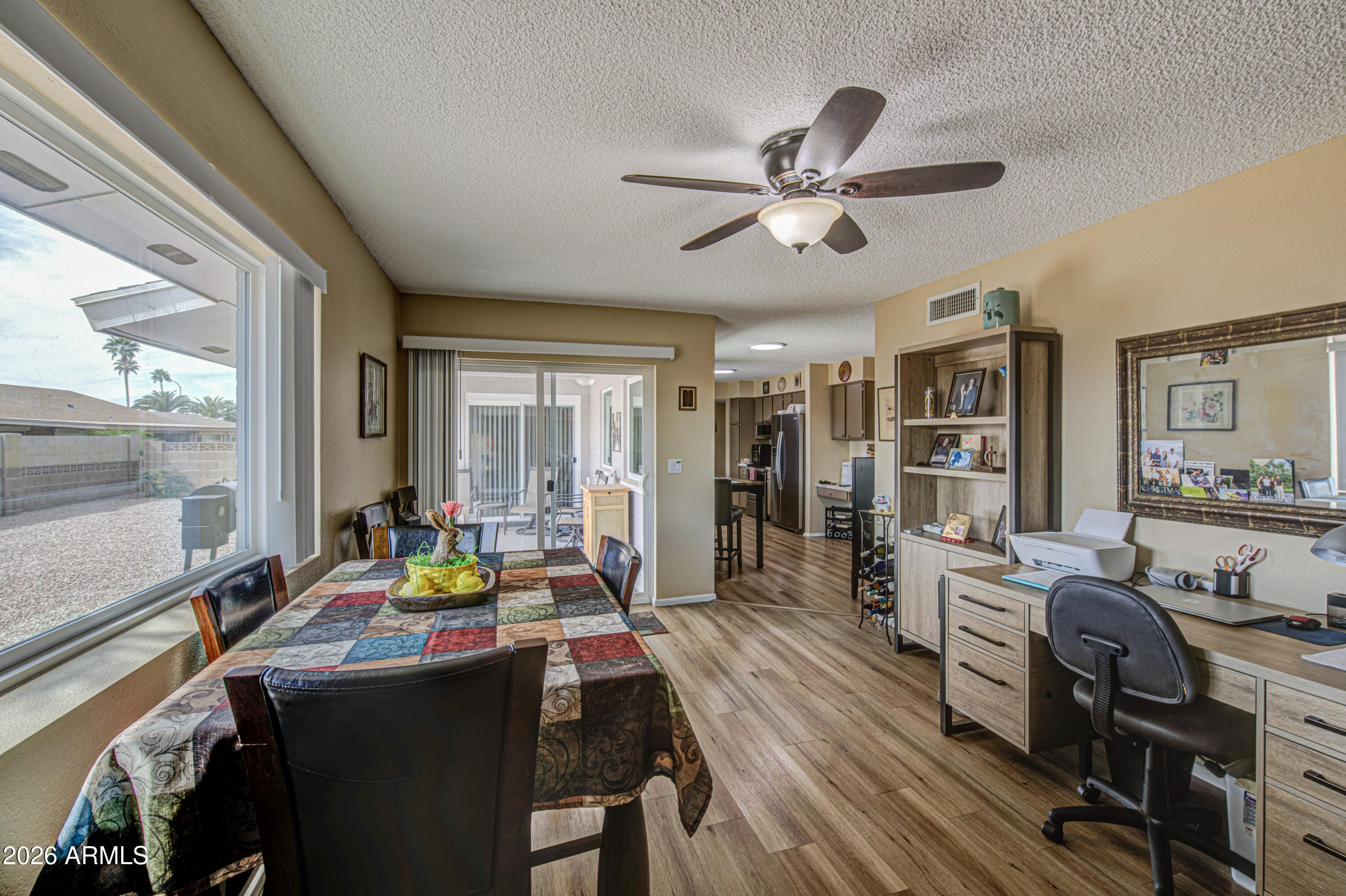 This is a move in ready 2/bedroom 2/bathroom home located in Sunland Village East. The owners have done 30 items of improvement since 2018. The list includes new double hung windows, new vinyl plank flooring through the home ,new garage door, new appliances. The list of improvements is available for review. This is a must see home. The master bedroom has a patio door to the back covered patio. The office also has a patio door to the back covered patio. the master bath walk in shower is completely handicap assessable. There is a front patio to enjoy your morning coffee. The front and back patios have a vinyl chip coating applied to them. The double garage has built in cabinets, electric garage opener and ladder in garage to attic. There was 18 Inches of insulation added to the attic.