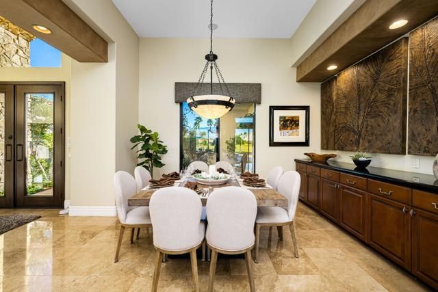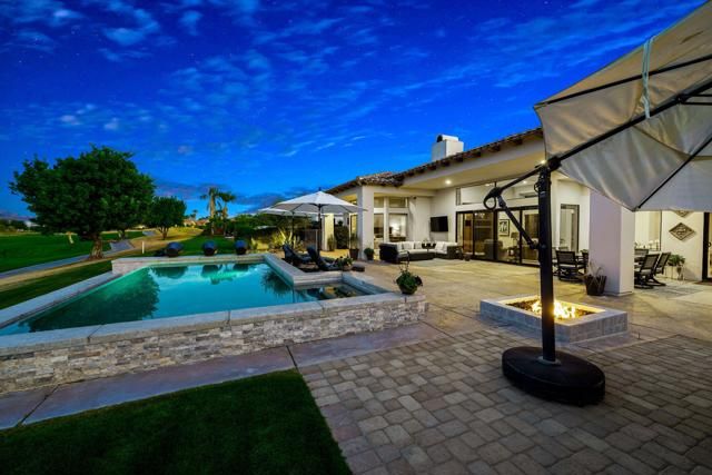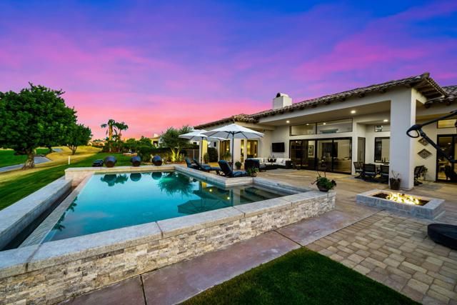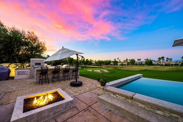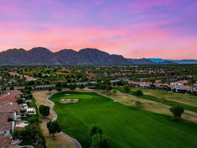 An entertainer's UNICORN. Original owners of this rare Summit Plan 6 Semi-Custom home, located on the 13th Hole of the Tom Weiskopf designed golf course in the Legends Gate of the PGA West development; there were only a handful of these Summit Plan 6 Floor Plans ever built by Southern Hills Developers, and arguably the absolute best construction in all of PGA West. This specific floor plan doesn't come available very often, and features a 16,000+ sqft expansive lot with an indoor / outdoor feel, and numerous different sitting areas, 5 fire features, infinity pool w/ several water-pot features, custom built-in BBQ with Alfresco Grill, Pizza Oven, Crab Pot Boil, and Farm Sink. There are mountain views in nearly every direction to enjoy. The interior features 3 bedrooms (including a detached casita) and an office (that could be converted into a 4th bedroom). All of the rooms in this home have their own private entrances. This property is being offered Turnkey Furnished (inventory attached to the MLS listing). Sellers have a Premier Membership available for purchase thru PGA West (the purchase of this Membership is NOT required, as sellers are planning to remain Members at PGA West).