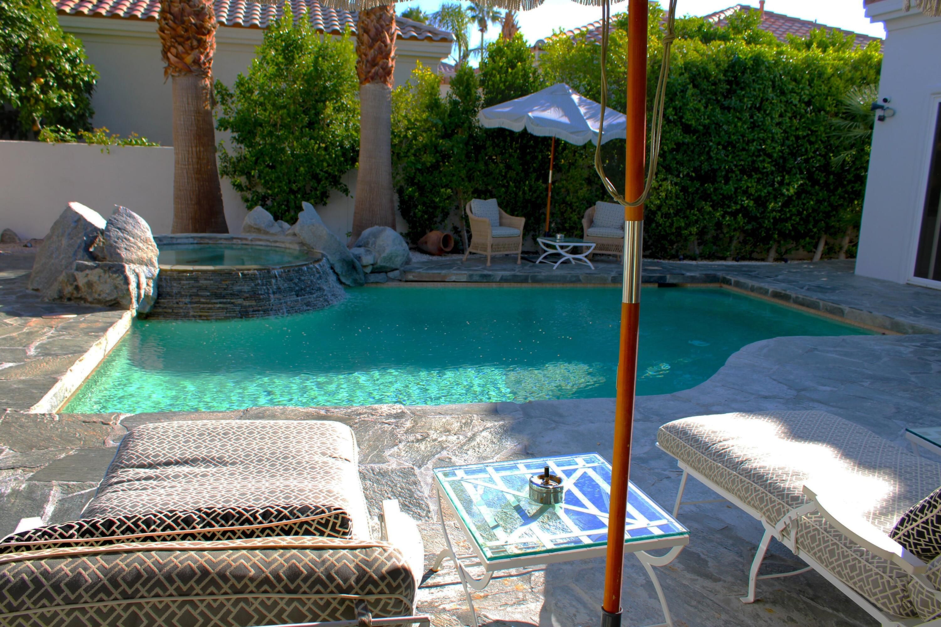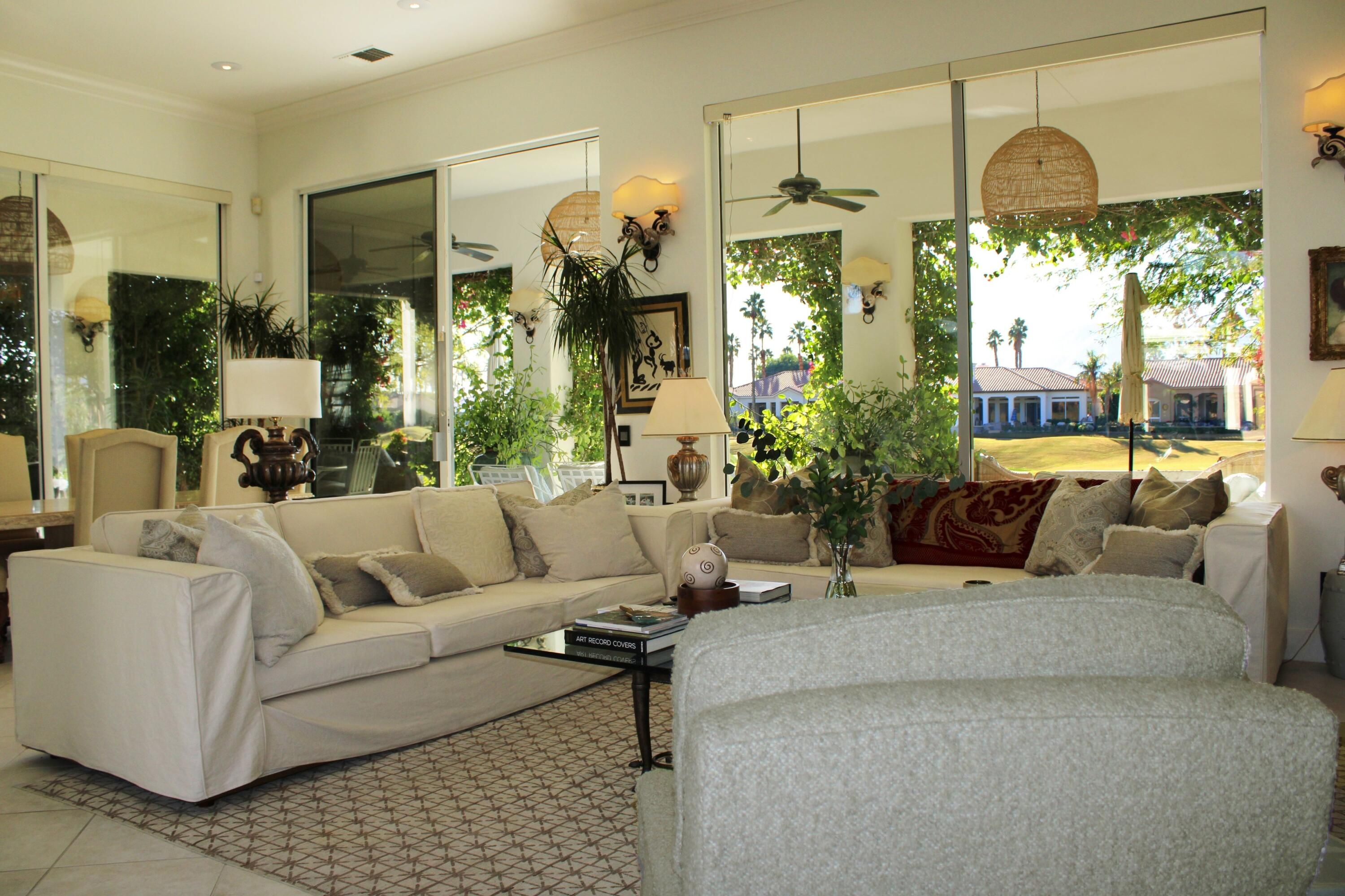 Experience Riviera inspired elegance on the fairway with spectacular mountain views in this beautifully appointed PGA West home. Every aspect of this unique property has been curated to create a warm and welcoming ambiance with luxury improvements throughout, including a cooling system in the pool and upgraded wiring and lighting in every room. With four bedrooms and five baths, each luxuriously furnished bedroom feels like its own suite; particularly the detached casita which has a private entrance and direct access to the courtyard pool and spa. A gourmet kitchen with a Wolf gas range and Sub-Zero refrigerator opens up to the dining area as well as to the courtyard and elegant, covered side patio, allowing the chef to entertain with ease. This exceptional home is offered fully furnished, including two vehicles: a street-legal golf cart and a Maserati Quattroporte. Select original artwork will also convey with the sale; a detailed inventory is available upon request. A comprehensive list of improvements and custom enhancements may be provided upon inquiry. Showings by appointment only.