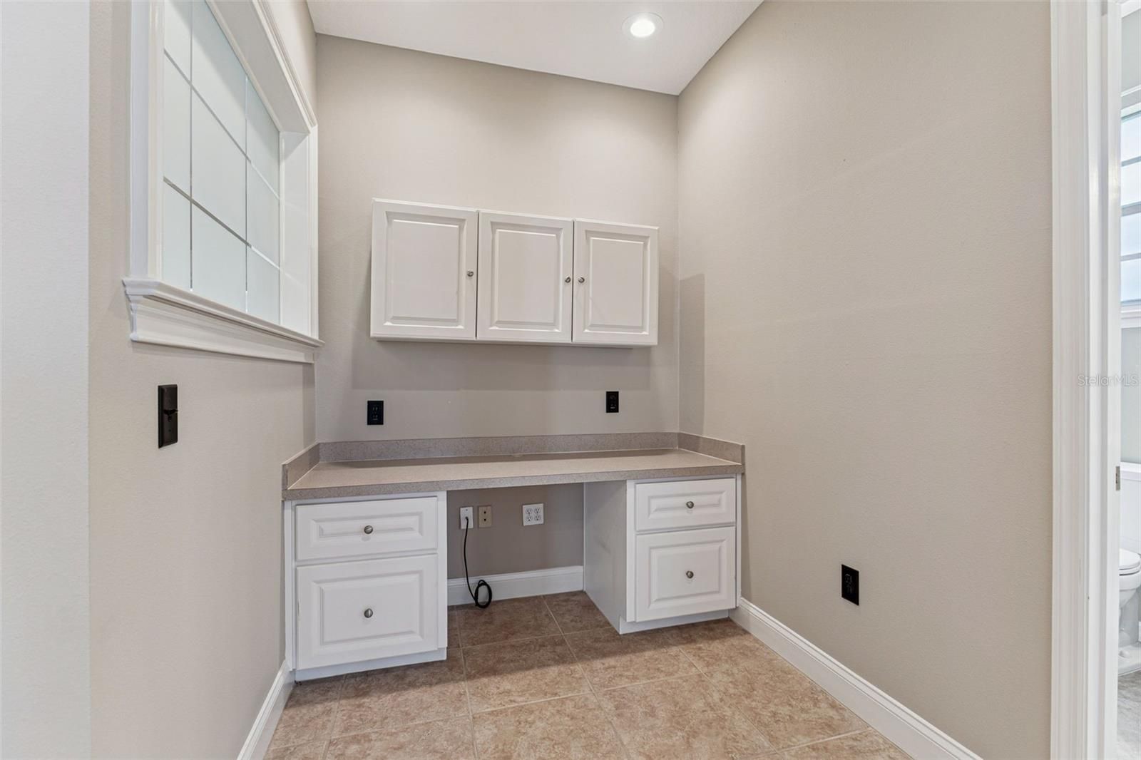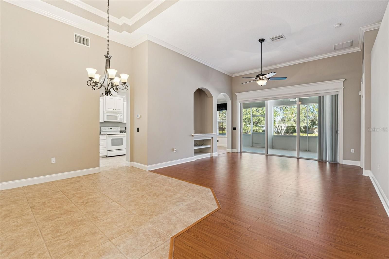 BEAUTIFUL HOME IN BEAUTIFUL 55+ GATED COMMUNITY! Come see this MOVE-IN READY home located in a highly convenient location near I-4 for Orlando, Tampa, Gulf or Ocean Beaches which is a great Central Florida area! This well-maintained 2 bedroom, 2 bath residence presents spaciousness and elegance with the desirable features of tile and wood flooring, tall ceilings, arched openings, wonderful millwork of crown molding, chair rail, trimmed doorways and window sills. The foyer leads into the great living area, dining spaces, kitchen and three-panel sliding glass doors opening to the screen lanai, a great design when entertaining! A built-in entertainment center gives the living room organization and ease of furniture placement. The dining room is adorned with a handsome tray ceiling and stands convenient to the bright and cheerful kitchen that offers plenty of cabinetry, granite counter tops and breakfast bar linking to the casual dinette area. The split bedroom plan is ideal for privacy to the owners’ quarters showcasing beautiful wood flooring, access to the screen lanai and dual walk-in closets with attractive shelving; this master en suite has a centered dual sink vanity separating the large walk-in shower area and the water closet. The second bedroom is convenient to a pleasing full bathroom that has a tub and single sink vanity. Located near this area is the bonus office space with built-in desk, ideal for remote work or self-employment. Beautiful landscaping and the quiet retreat of no rear neighbors gives the screen lanai a peaceful place to enjoy morning coffee, an afternoon sweet tea or an evening sip of adult beverage. Take one of the paved walkways to the impressive resort-style clubhouse featuring well-kept grounds, heated pool, fitness center and plenty of space for social gatherings. This wonderful home in Central Florida and its location within the highly sought-after Lake James community, will surely attract eager buyers, so make the call today to schedule a private viewing! In 2025, the owners updated the roof, carpet, toilets, water heater and interior and exterior paint.