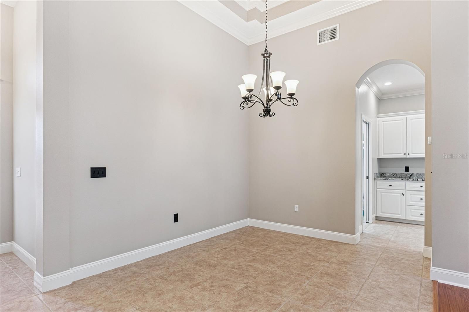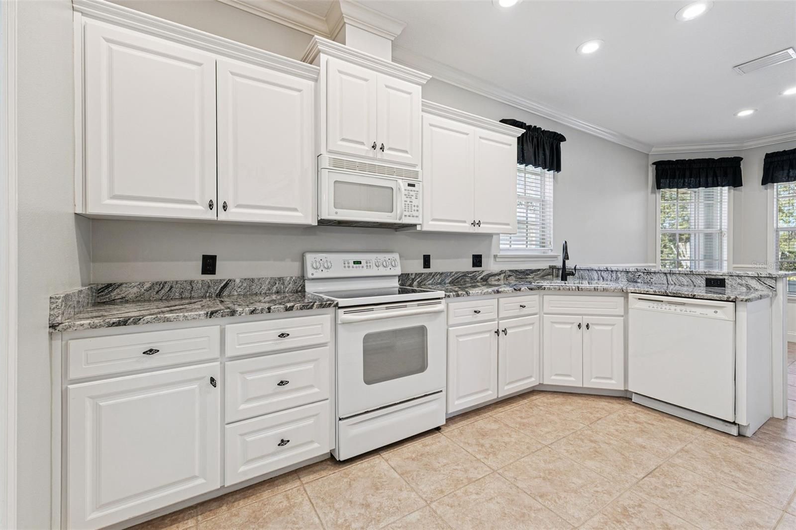 - Built-in Features, Ceiling Fan(s), Crown Molding, Eat-in Kitchen, High Ceilings, Living/Dining Room, Open Floorplan, Solid-Wood Cabinets, Split Bedrooms, Stone Counters, Tray Ceiling(s), Walk-In Closet(s)