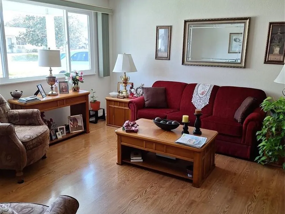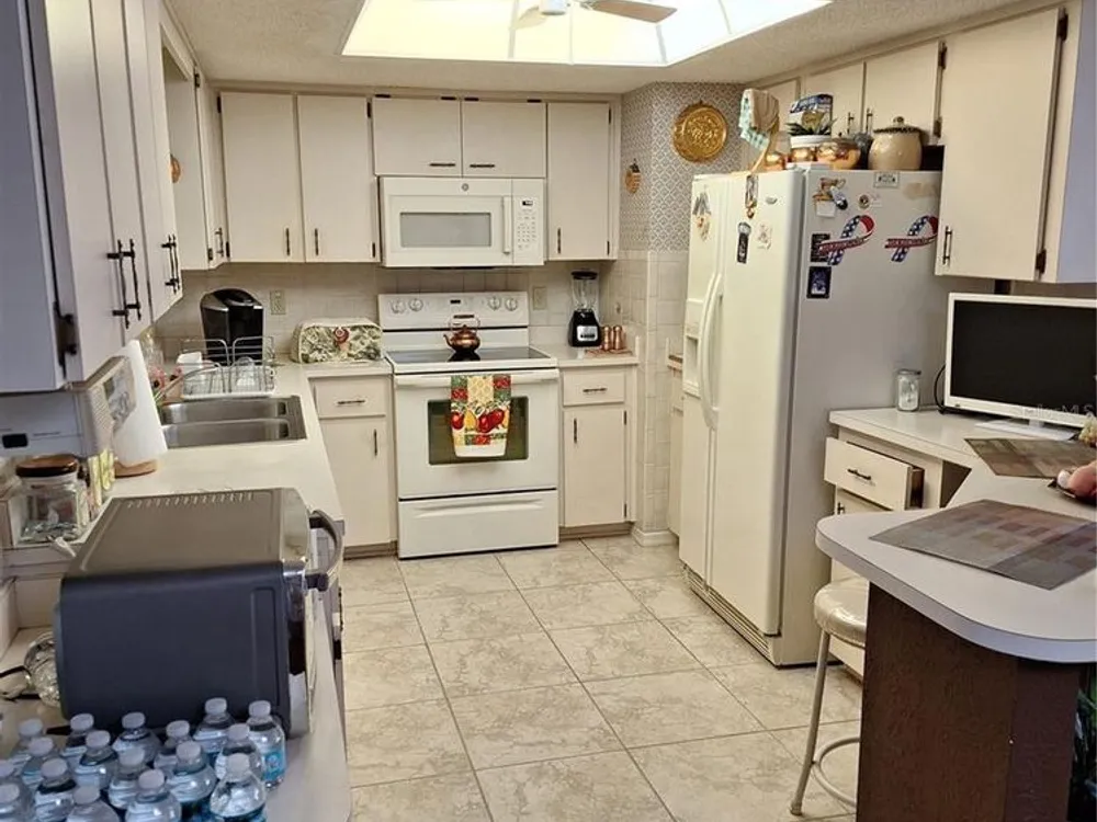 PRICE REDUCTION 10/15/2025... Well maintained 2 bedroom, 2 bathroom Savannah model located in the highly desirable Oak Run Golf Club Community. The home is located in Neighborhood 5, which is close to the Aquatic Pool. Both bedrooms are generously sized and the master suite includes an en-suite bathroom with step in shower. The guest bathroom has a tub/shower combination and skylight providing natural light and creating a spa-like atmosphere. The fully equipped kitchen includes ample storage and a breakfast bar ideal for casual dining or if you prefer you can enjoy your meals in the dining room with an overhead skylight. Enjoy year round living in the glass enclosed lanai under heat/air perfect for relaxation or entertaining. This home offers a combination of laminate floors, ceramic tile and carpeting providing both durability and style. Updates include Roof 2022, A/C 2019, Newer Hot Water Heater, Irrigation System and replacement of living room picture window and Pella windows in the lanai within the last several years. An added bonus is the oversized garage which provides space for a golf cart or extra storage. The interior/exterior of the home was painted in 2023. Termite Bond in place which can be renewed as of August 31, 2025 and transfered to new owner. This home has been beautifully landscaped and is MOVE-IN READY!! Enjoy over 110 clubs to join in the Oak Run Community along with other great amenities ie. 6 pools, 5 hot tubs, fitness centers and much more. **Oak Run is not an actual HOA community, therefore the monthly service fee does not go to an HOA. Please refer to Oak Run's website for details**You will be close to restaurants, shopping and medical facilities in the area. Come see this great house and community today!!