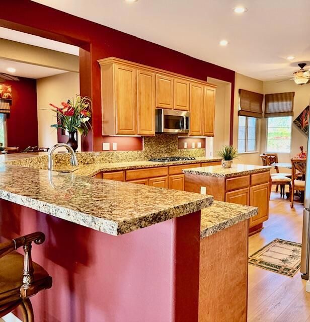 - Gas Cooktop, Microwave, Convection Oven, Self Cleaning Oven, Electric Oven, Vented Exhaust Fan, Water Line to Refrigerator, Refrigerator, Ice Maker, Disposal, Dishwasher, Gas Water Heater