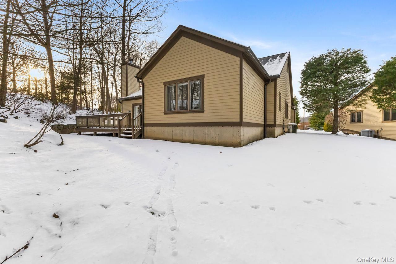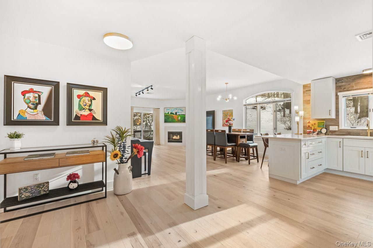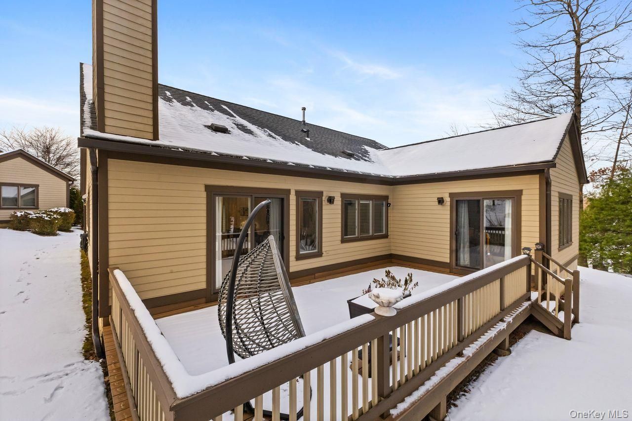 Luxurious one-level living on a cul-de-sac in Northern Westchester. Elegant, renovated free-standing modified Harvard—one of the most desirable models in Heritage Hills—offering 1,663 sq ft, 2 bedrooms, 2 full baths, plus a den, an attached two-car garage, and gas heat. This residence presents a rare opportunity for discerning buyers seeking a pristine, renovated home with sophisticated finishes. Remodeled in 2023, features include Hickory engineered hardwood flooring throughout, six-panel doors with new gold hardware, a wood-burning fireplace with marble surround, and a renovated open-concept kitchen with island, soft-close cabinetry, quartz countertops, and new stainless steel appliances. The modified floor plan is refreshing, bright, and sun-filled. Additional highlights include all-new light fixtures, new window treatments, and smooth ceilings—no popcorn. The attached two-car garage includes a full wall of closets for expansive storage. A large, newly enhanced deck with sliders from both the primary bedroom and living room provides a tranquil outdoor oasis for enjoying the lush woodlands and adjacent golf course. Ample closet space, a pull-down attic, and a dedicated laundry area complete this desirable no-step unit. Heritage Hills is known for its exceptional lifestyle—whether you’re seeking resort-style amenities or a stress-free home base, this community delivers. Residents enjoy multiple pools and tennis courts, bocce and pickleball courts, golf (private membership), playgrounds, an activity and fitness center, and 24-hour security. The activity center offers numerous clubs and organizations catering to a wide range of interests. Perfectly located in the heart of Somers, close to I-684, shopping, dining, and Metro-North. Less than a one-hour drive from Manhattan, Heritage Hills offers peaceful surroundings with convenient access to cultural and recreational opportunities. The community also provides shuttle service to Metro-North and local shopping. Tired of shoveling snow or maintaining your lawn? Maintenance includes landscaping and snow removal right to your front door. Condo 20. HOA: $648.49/month; Society: $224.68/month; Veolia sewer and water approximately $80/month. One-time Society fee of $1,500 required. Exterior renovations completed Fall 2022 include new roof, gutters, and exterior painting. This move-in-ready condo offers a wonderful opportunity to enjoy the beautifully landscaped setting and all that Heritage Hills has to offer.
