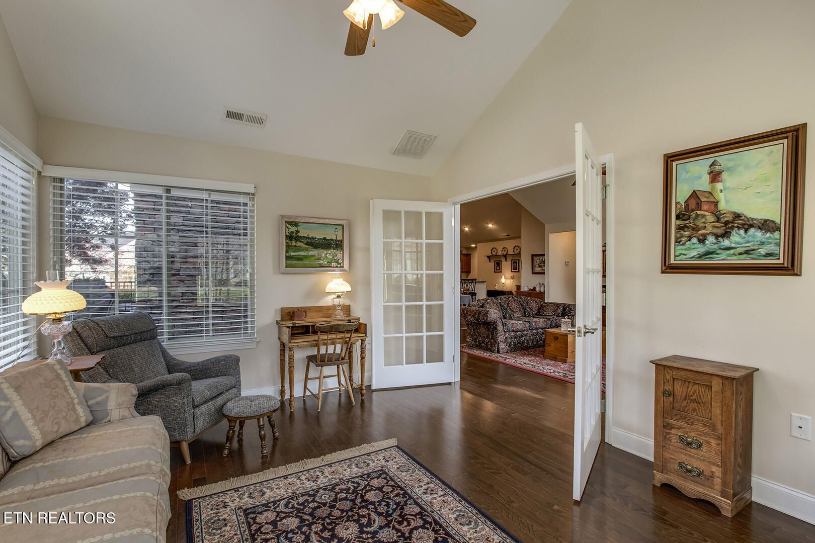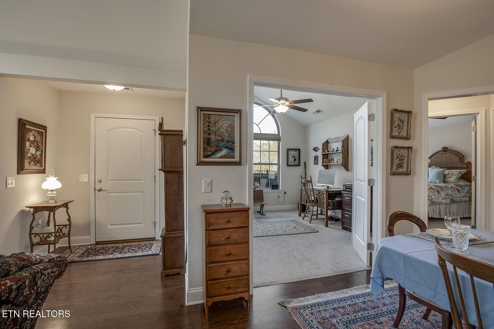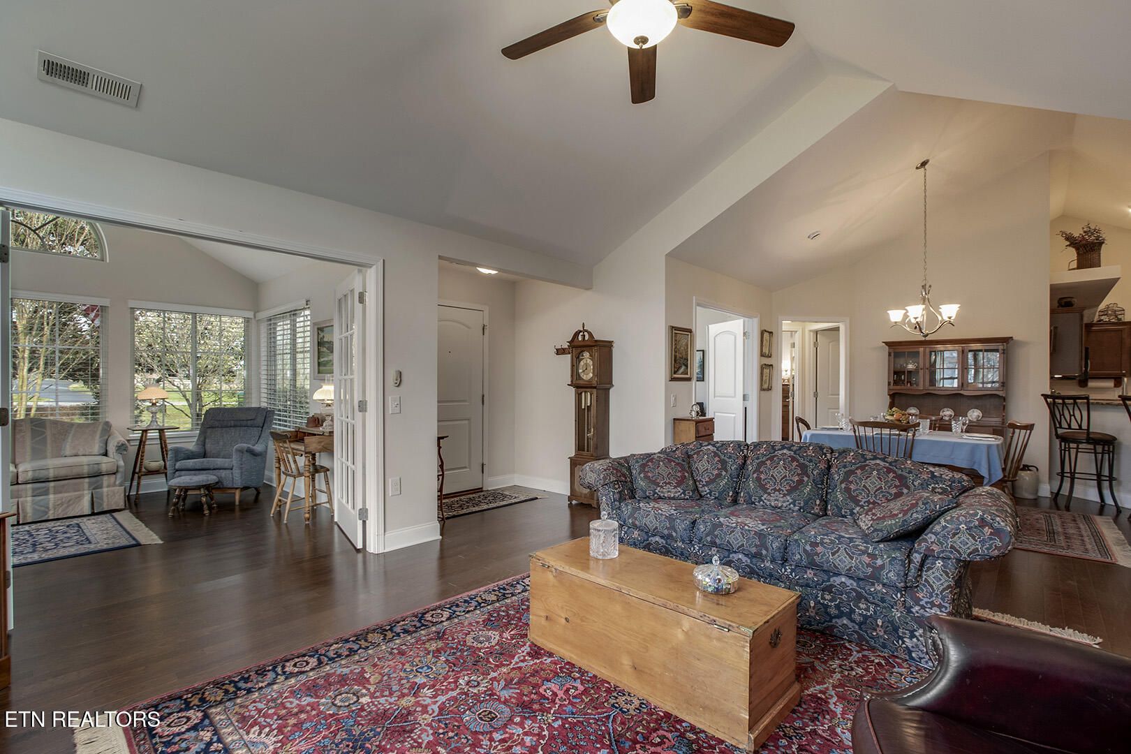 One of the best communities in East Tennessee. Beautifully maintained, very nice club house with swimming pool and lots of fun neighbors who enjoy being community together. This one level home has 2 bonified bedrooms with an office, study, or what could be a 3rd bdrm. There are soaring ceilings giving a bright airy feeling that will make you glad to meet each day. The Sun Rm. provides the perfect space for all of the hobbies you have been wanting to do or just a great spot to watch the birds from. Nice size Kitchen with breakfast bar overlooks the Great Rm. with fireplace. Storage Rm. off of laundry. 2 car garage, private patio and no steps anywhere.