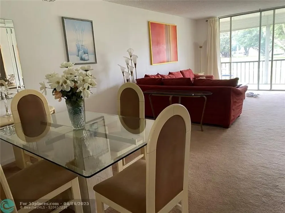 Fully furnished 2/2 with Par 3 golf course view. Over 55 Country Club Community. 24 hr guard gated. Bright, comfortable. 1170 sq ft 2nd Floor. Bldg 24 (Phase 3). Close to the Clubhouse which has a restaurant. Assigned parking space. Laundry room near unit. Paid rec lease means Free Tennis & golf (you pay only for the cart rental). Par 3 & 18-hole PGA par 72 golf course. Heated pools. Courtesy bus. Pickle ball courts. Exercise Room, Library, Putting Green, Sauna, Vehicle Wash Area, and more. Application, interview & Board approval required which includes a credit score of 700 and income requirements. At least 1 person must be over 55 & no one under 18 years old. Florida living at its best.Move in ready.