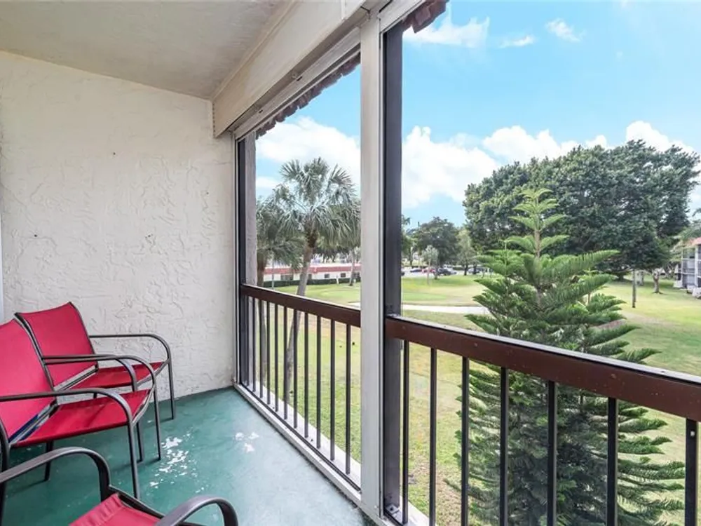 GOLF COURSE VIEW! Third Floor CORNER, 2BR/2BA. 1,170 SF and just a few steps across the street to the clubhouse, restaurant and Pro Shop. Large Bright ceramic tiled throughout. WIDE OPEN KITCHEN featuring SS Appliances, Quartz Countertops, Raised Ceiling, Island with seating. Partially Furnished NO POPCORN! HIGH IMPACT FRONT DOOR. Enjoy beautiful sunsets overlooking the golf course from your screened balcony. Recreation Lease PAID IN FULL. Amenities include Restaurant, Billiard Room, Bbq/Picnic Area, Clubhouse, Courtesy Bus, Exercise Room, Heated Pool, Library, Putting Green, Sauna, Shuffleboard, Tennis, Pickle Ball, Vehicle Wash Area, Electric Car Charging Station. Close to shopping, dining & highways. 15 min. to the beach. BEAUTIFUL AND MOVE-IN READY!