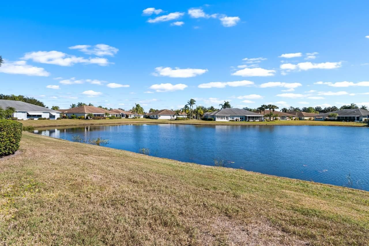 Step into effortless Florida living in this beautifully maintained WATER VIEW 2-bedroom + DEN, 2-bath, 2-car garage home, thoughtfully designed with a SPLIT-BEDROOM layout for comfort and privacy in the beautiful 55+ community of Kings Point! Both bedrooms have tranquil pond views, while LUXURY VINYL FLOORING THROUGHOUT adds a fresh, modern feel. The primary bedroom includes DUAL WALK-IN CLOSETS and an EN-SUITE BATHROOM containing a DUAL-SINK VANITY, shower stall, and separate SOAKING TUB! A versatile den (ideal as a formal dining room, home office, or flex space) maximizes functionality. The home features WHOLE-HOUSE RO SYSTEM, Corian countertops, wall niches, gutters, STAMPED CURBING, SCREENED FRONT PORCH, and EXTRA ATTIC INSULATION for added value and peace of mind! With an ISLAND, STAINLESS STEEL APPLIANCES, a BREAKFAST BAR, and attached dinette, the kitchen is prepared to meet all your culinary and entertaining needs. Unwind in the enclosed FLORIDA ROOM, perfect for morning coffee or evening relaxation regardless of the weather. A spacious 2-car garage provides ample storage with its included shelving, or can act as another porch area with the screen door pull-down! The golf cart-friendly community makes getting around a breeze. Enjoy maintenance-free exterior living and take full advantage of Kings Point’s exceptional amenities, including golf, pools, clubs, fitness centers, and more. Whether you’re looking for relaxation or an active lifestyle, this home offers the best of both—comfort, convenience, and style.