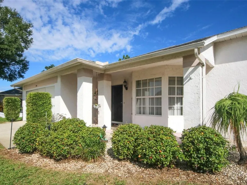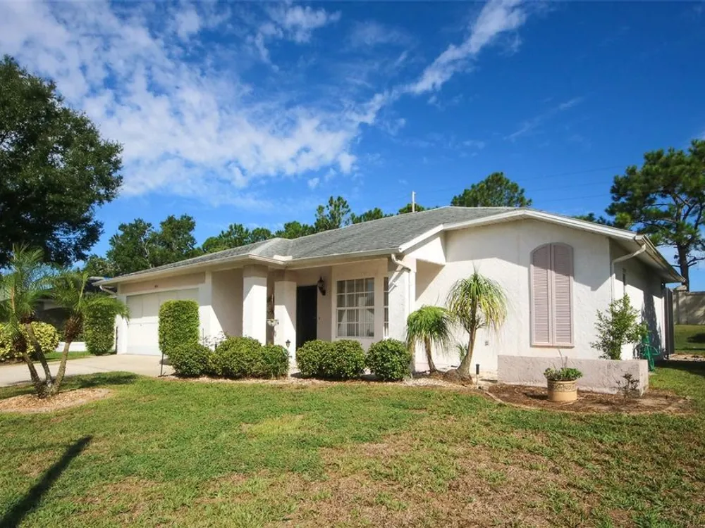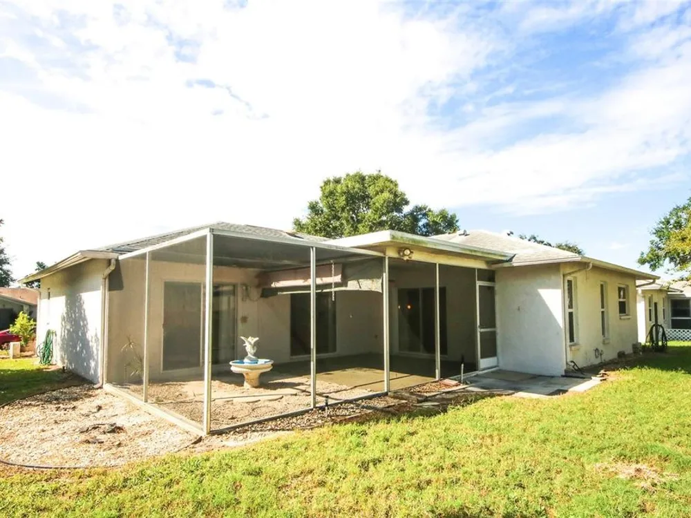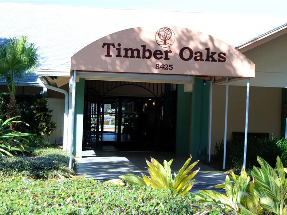 Under contract-accepting backup offers. This property is located in the 55+ community of Timber Oaks. It offers two bedrooms, two bathrooms, and a two-car garage with a screen enclosure. The home includes an additional family room and dinette area, as well as formal living and dining rooms. There is a spacious indoor laundry room with a sink and built-in desk, situated off the kitchen and dinette area. The kitchen features custom cabinets and granite countertops, which match the vanity and countertop in the second bathroom. The second bathroom is accessible from the kitchen and family room area and can also serve as a guest bathroom, with the second bedroom nearby. The split floor plan situates the primary bedroom and en suite on the opposite side of the home. The primary bedroom includes a walk-in closet and a bathroom with a ceramic tiled step-down shower. The second bathroom has a shower/tub combination. The back covered lanai can be accessed through sliding glass doors from the family room, dining room, or primary bedroom. The property backs onto an open area instead of neighboring homes. Home features include marble windowsills and window treatments throughout, newer windows, a flat roof replaced in 20022, an A/C unit replaced in 2020, and a new water heater installed this year. The irrigation system uses a Rainbird timer and is supplied by a well. The Timber Oaks Clubhouse, offering amenities such as a pool and tennis courts, is located nearby. Showings can be easily scheduled. Call today!