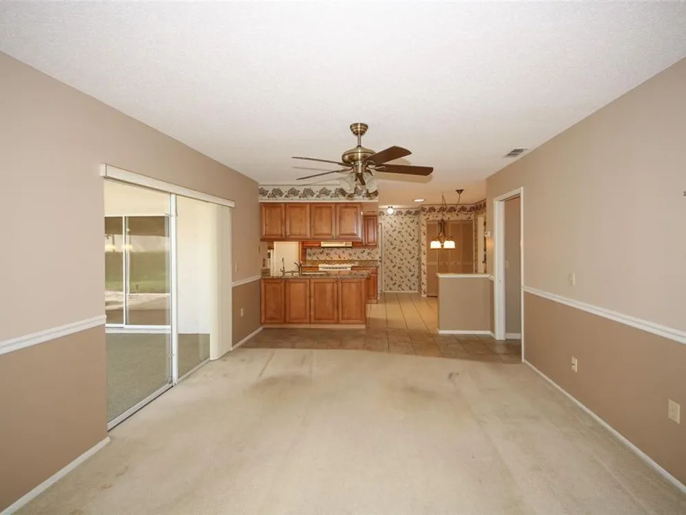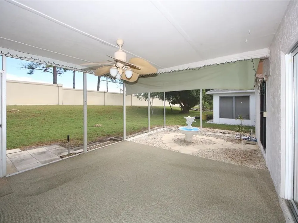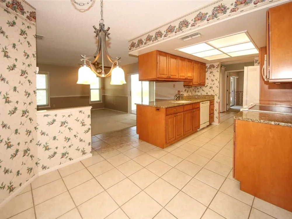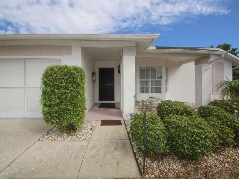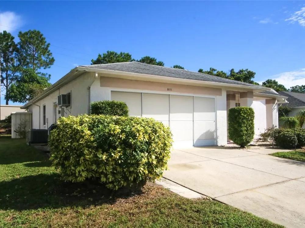 Under contract-accepting backup offers. This property is located in the 55+ community of Timber Oaks. It offers two bedrooms, two bathrooms, and a two-car garage with a screen enclosure. The home includes an additional family room and dinette area, as well as formal living and dining rooms. There is a spacious indoor laundry room with a sink and built-in desk, situated off the kitchen and dinette area. The kitchen features custom cabinets and granite countertops, which match the vanity and countertop in the second bathroom. The second bathroom is accessible from the kitchen and family room area and can also serve as a guest bathroom, with the second bedroom nearby. The split floor plan situates the primary bedroom and en suite on the opposite side of the home. The primary bedroom includes a walk-in closet and a bathroom with a ceramic tiled step-down shower. The second bathroom has a shower/tub combination. The back covered lanai can be accessed through sliding glass doors from the family room, dining room, or primary bedroom. The property backs onto an open area instead of neighboring homes. Home features include marble windowsills and window treatments throughout, newer windows, a flat roof replaced in 20022, an A/C unit replaced in 2020, and a new water heater installed this year. The irrigation system uses a Rainbird timer and is supplied by a well. The Timber Oaks Clubhouse, offering amenities such as a pool and tennis courts, is located nearby. Showings can be easily scheduled. Call today!