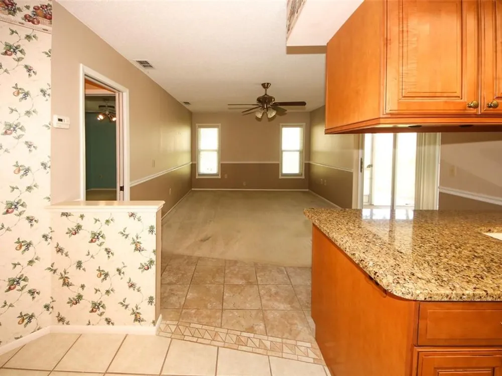 - Ceiling Fan(s), Chair Rail, Eat-in Kitchen, Kitchen/Family Room Combo, Living/Dining Room, Stone Counters, Thermostat, Walk-In Closet(s), Window Treatments