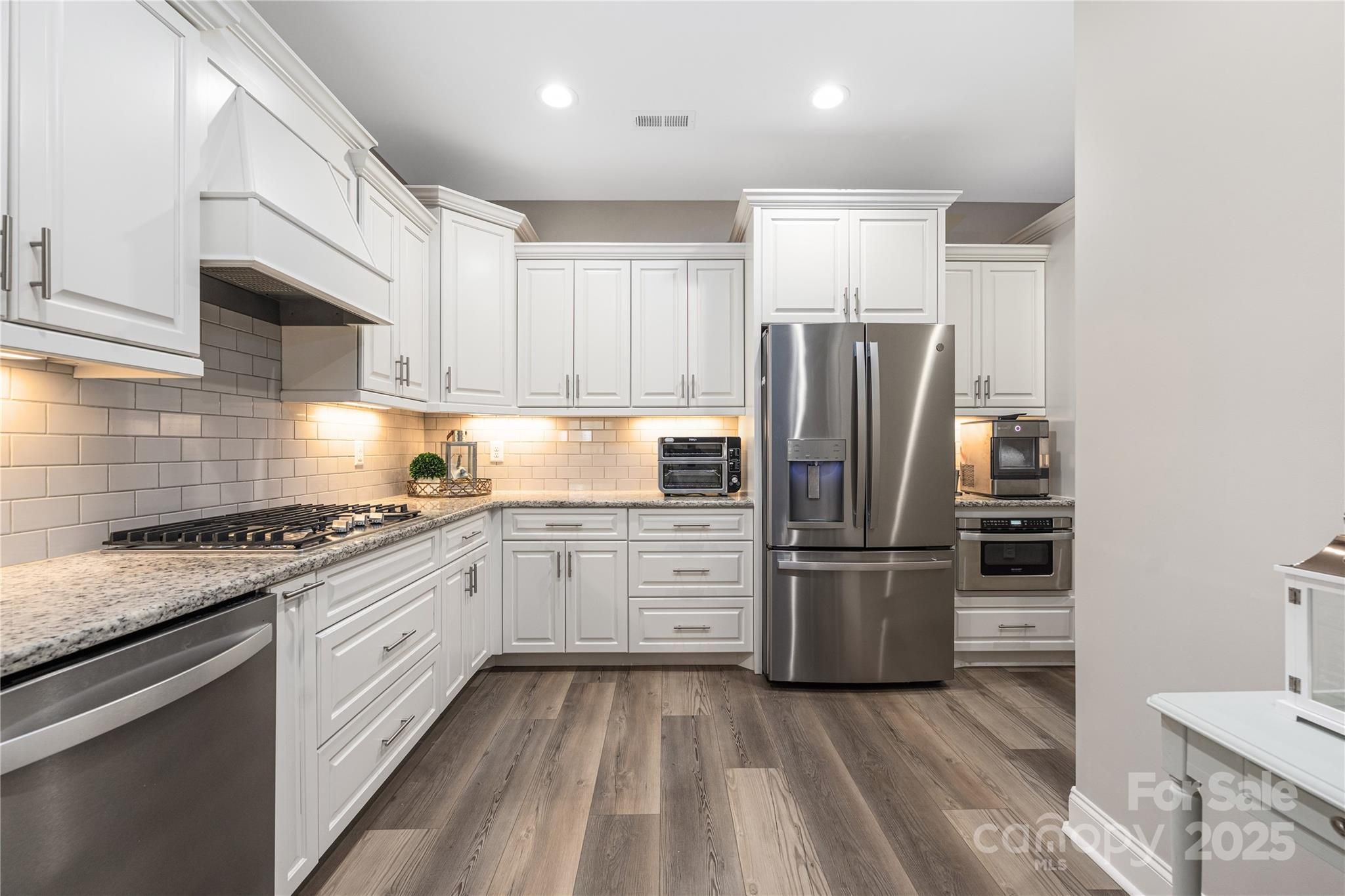 - Convection Microwave, Convection Oven, Dishwasher, Disposal, Exhaust Hood, Gas Cooktop