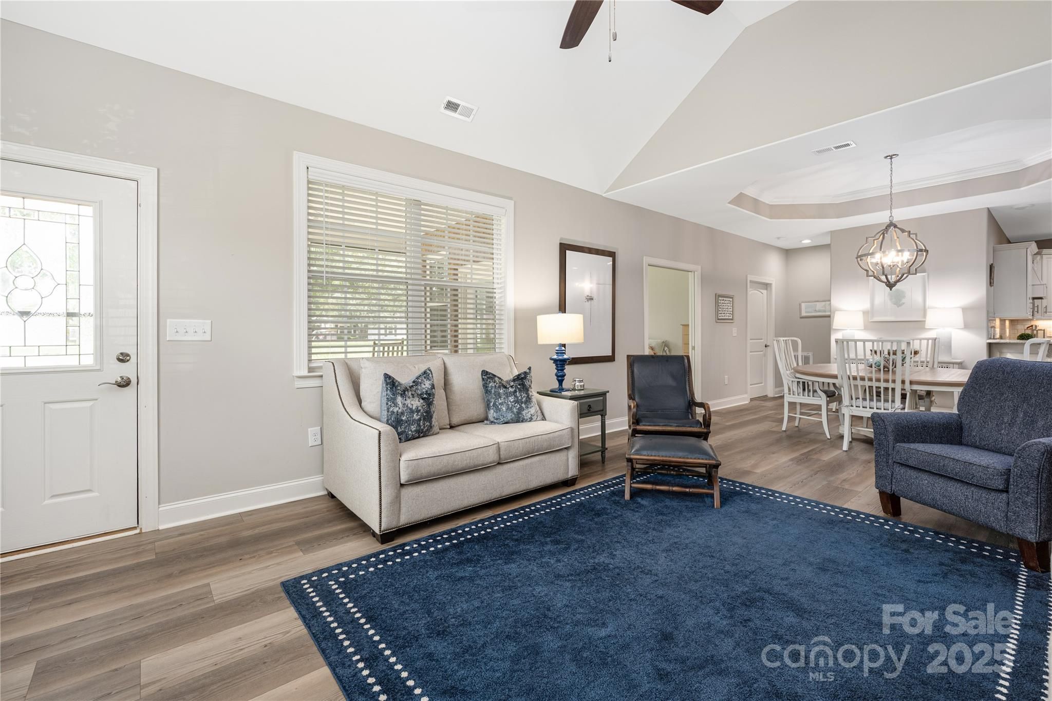 Welcome to 8111 Rainier Drive, located at the end of a shared drive and siding to open space for added privacy in the desirable 3 Cherry Way—Denver’s premier 55+ community. This meticulously maintained 2-bedroom, 2-bath ranch offers 1,798 square feet of easy, elegant living. The open-concept layout features vaulted ceilings, a gas fireplace, and an abundance of natural light. The kitchen is equipped with granite countertops, stainless steel appliances, and a large breakfast bar—perfect for entertaining. The spacious primary suite includes a walk-in closet and a spa-like bath with dual vanities. Enjoy your morning coffee or evening unwind on the screened patio. HOA includes lawn maintenance, clubhouse, pool, and more for a low-maintenance, resort-style lifestyle. Conveniently located near Lake Norman, shopping, dining, and healthcare. A rare opportunity in one of Denver’s most sought-after communities!
