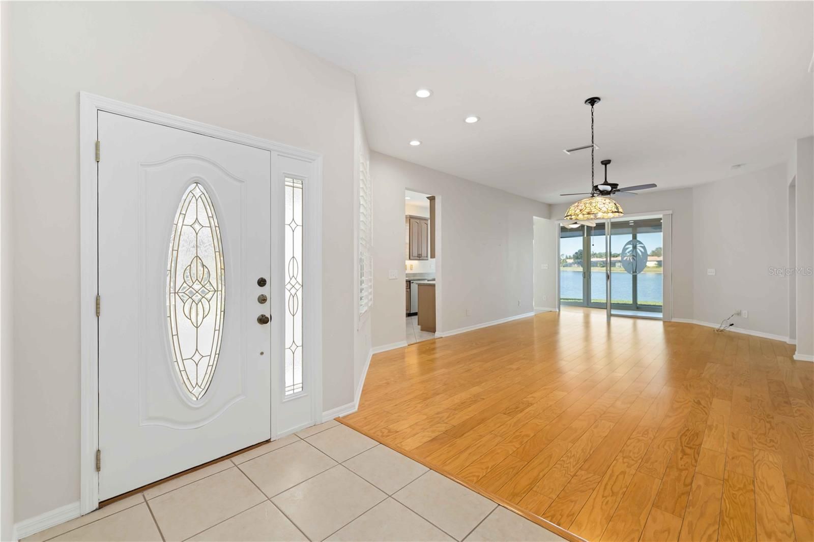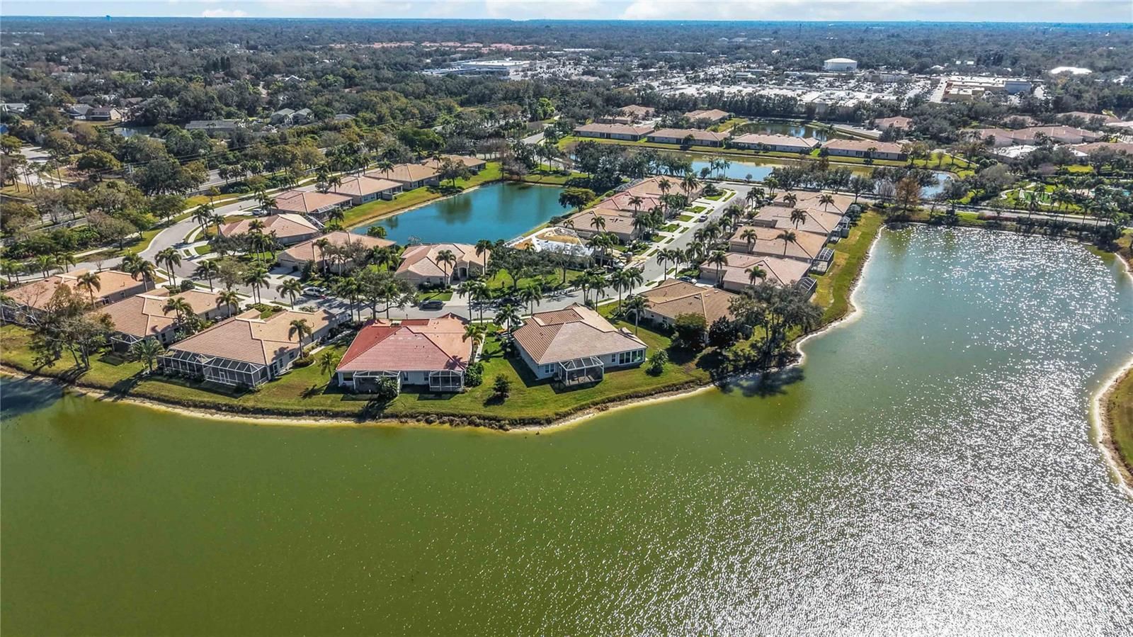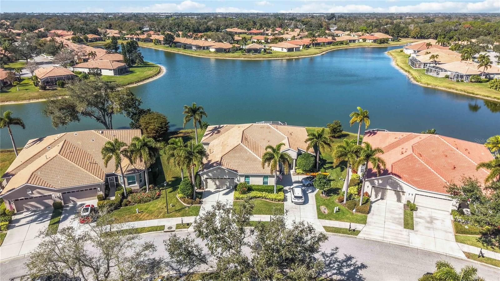 Welcome home to comfort, confidence, and truly worry-free living in this 2 Bedroom plus Den, 2 Bathroom, 2 Car Garage paired Villa. This thoughtfully upgraded home has been meticulously maintained with long-term peace of mind in mind, offering the perfect blend of safety, efficiency, and everyday ease. Major improvements include a NEW ROOF (2025), wind mitigation (2025), HURRICANE-IMPACT WINDOWS throughout, REINFORCED GARAGE DOOR, and a WHOLE-HOUSE GENERATOR—providing security and protection in every season. The Florida room has air conditioning and heat, sunshades, ceiling fan and hurricane doors creating a relaxing, year-round retreat ideal for morning coffee or evening unwinding while enjoying the spectacular lake view. The front lanai is screen enclosed with hurricane shutter. Inside, warm oak flooring flows through the great room and den spaces, complemented by plantation shutters and abundant natural light. The den/office has a built-in desk and storage - perfect for hobbies or a home office. The kitchen is designed for convenience with upgraded cabinetry, pull-out drawers, under-cabinet lighting, and custom-crafted corner cabinets, includes all appliances—making daily living effortless and organized. Home is a split bedroom design offering a spacious en-suite primary bedroom with views of the lake, ceiling fan, carpeting and 2 walk-in closets. Guest bedroom has ceiling fan, carpeting and regular closet. Both bathrooms with accessibility and comfort were clearly prioritized, with beautifully upgraded walk-in showers, grab bars, and comfort-height toilets thoughtfully installed to support ease of movement now and in the future. There are skylights in both bathrooms and the laundry room. Energy efficiency upgrades include additional attic insulation (2024), HEPA and allergen filtration, and LED lighting throughout, helping keep utility costs low and indoor air quality high. Additional highlights include custom closet systems, professional garage storage, motion-activated exterior lighting, landscaped curbing, and transferable home service and A/C maintenance contracts already in place. This is a move-in-ready home designed to simplify life, reduce maintenance concerns, and allow you to fully enjoy the Florida lifestyle. Lakeridge falls is a 24-hour guard gated, 55+ community which includes a state-of-the-art clubhouse with a community heated/cooled lap pool, hot tub, fitness center, grand salon, bocci ball court and card room. Active social calendar with many events including water aerobics, yoga, art league, mahjong, etc. Miles of walking trails, lush landscaping, and pet-friendly sidewalks. HOA covers landscaping maintenance, lakes and sidewalks for stress-free living. Perfect location close to shopping, Publix, Panera, Starbucks, Detweillers, dining, medical facilities, and the UTC Mall. Easy access to downtown Sarasota, Lido Key, Siesta Key, and Anna Maria Island. Schedule an appointment to make this your perfect Florida retreat!