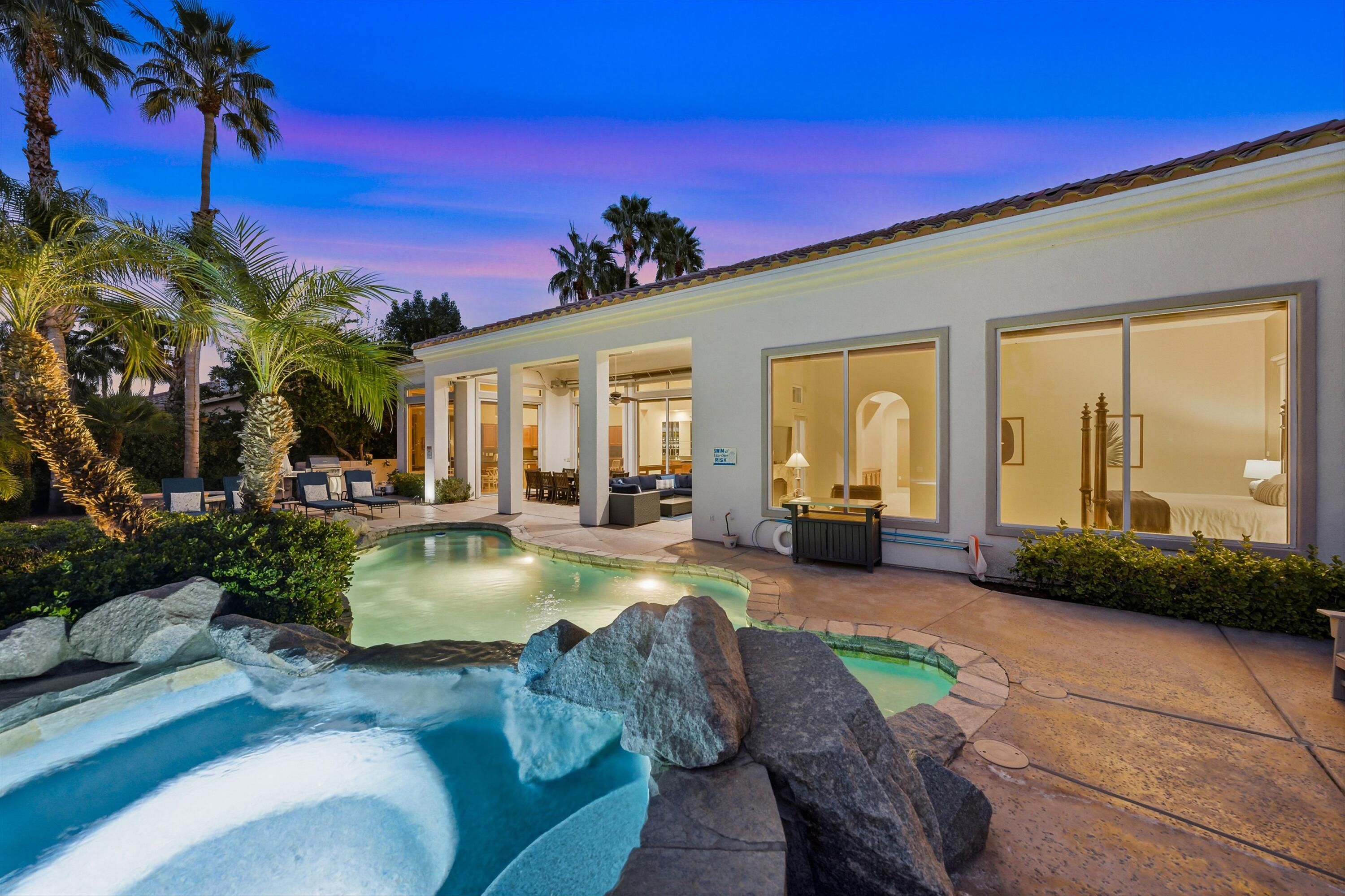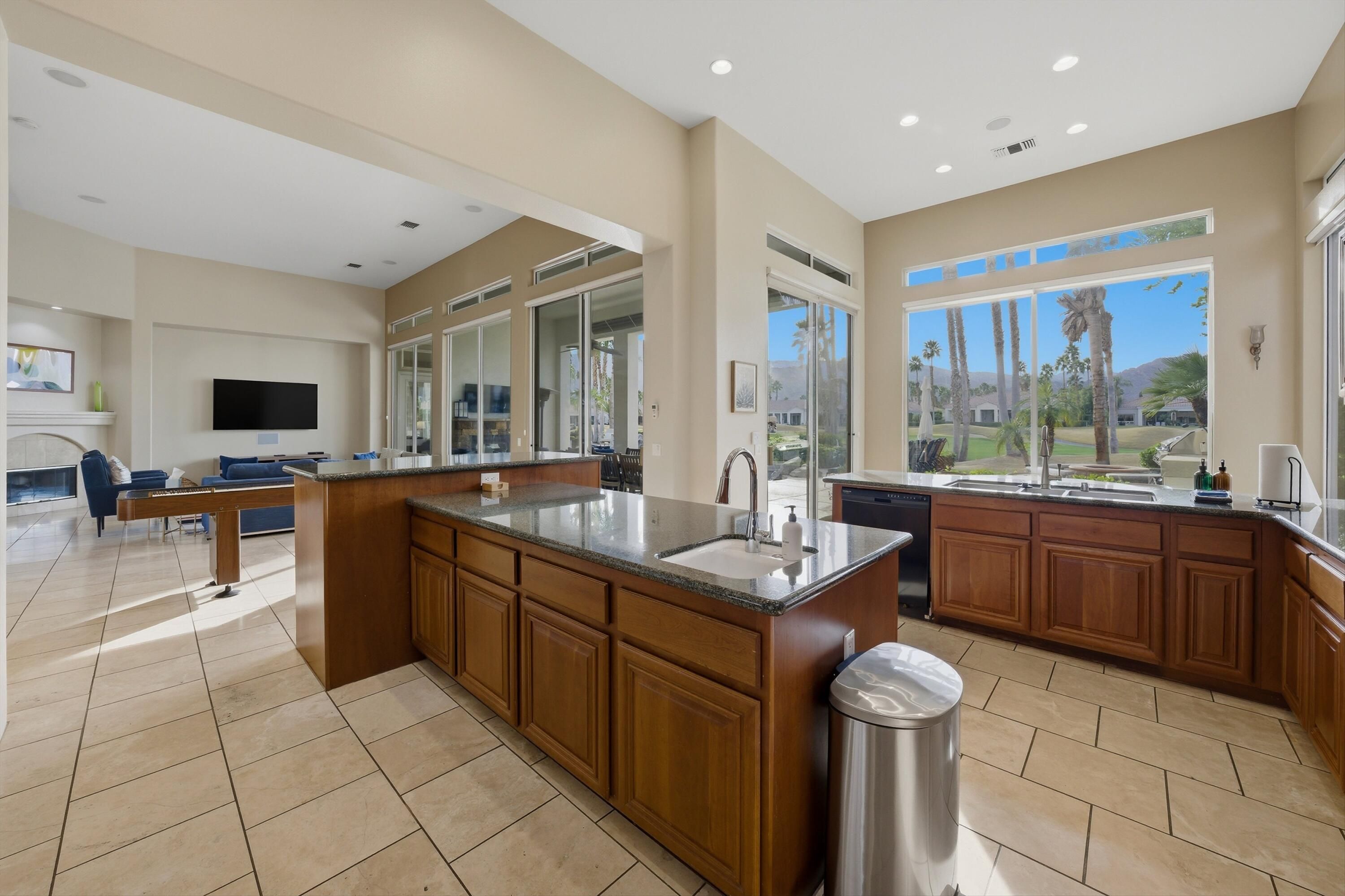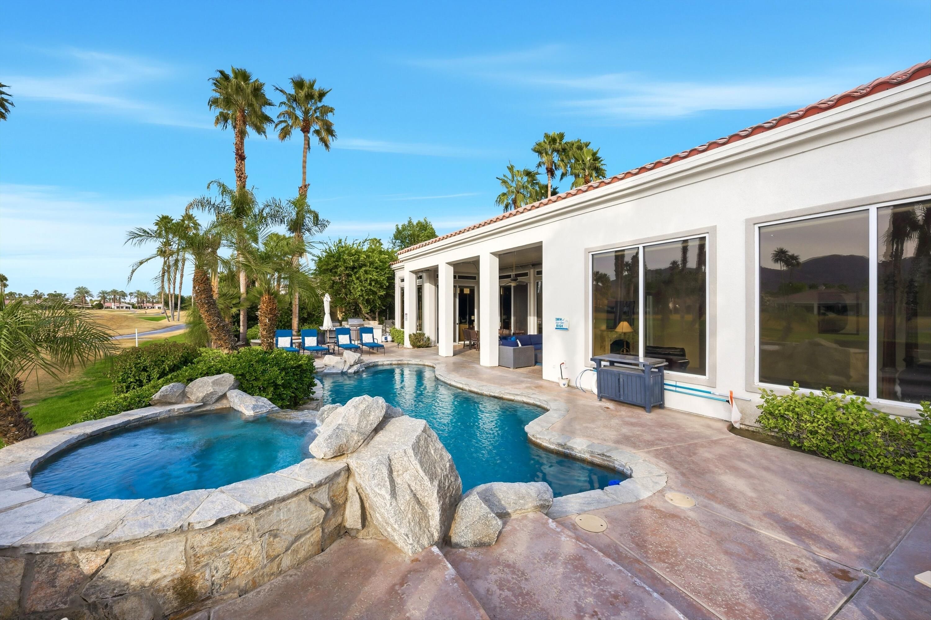 Experience elevated desert living at 81150 Golf View, a stunning 5-bedroom, 5 bath residence with private casita, located on the 16th hole of the Nicklaus Tournament in the prestigious PGA West Legends community. Perfectly positioned to capture sweeping fairway and mountain views, this exceptional home offers a rare blend of privacy, comfort, and resort-style elegance in one of La Quinta's most sought-after enclaves. A welcoming courtyard entry sets the tone for relaxed sophistication. Inside, light-filled living spaces feature soaring ceilings, expansive windows, and an open-concept design ideal for both entertaining and everyday living. The great room flows seamlessly outdoors, creating a true indoor-outdoor lifestyle synonymous with desert luxury. The chef's kitchen offers generous counter space and thoughtful design for effortless hosting. All five bedrooms provide comfort and privacy for all, including a detached casita—perfect for guests, multigenerational living, or a private office retreat. The primary suite serves as a serene sanctuary with a spa-inspired bath and tranquil views. Outdoors, enjoy panoramic golf course scenery, dramatic mountain backdrops, and unforgettable desert sunsets. The patio invites al fresco dining, morning coffee, or evening relaxation under the stars. Set behind the gates of PGA West Legends, residents enjoy access to world-class golf, scenic walking paths, and the unmatched lifestyle of one of the Coachella Valley's premier resort communities. This home is sold furnished per inventory list. An exceptional opportunity to own a beautifully appointed home where luxury, location, and lifestyle converge.
