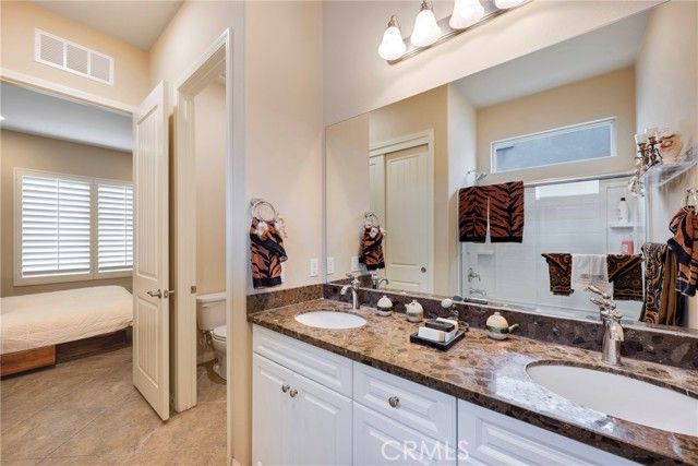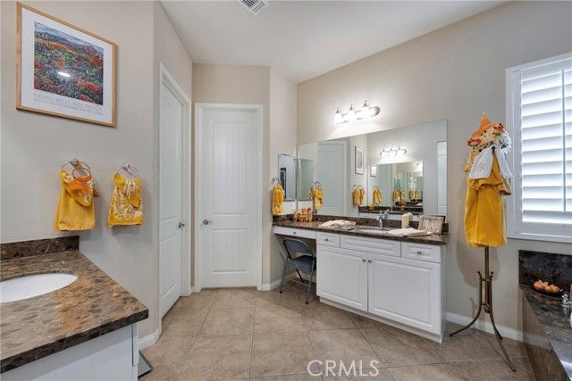 Welcome to Sun City Shadow Hills, Del Webb's premier 55+ community. This stunning popular retreat floorplan residence has 10 foot ceilings, gorgeous tiled floors throughout, wide-open great room with large kitchen that has huge sit up counter with granite counters, a bright and versatile den/flex room perfect for a home office, library, hobby space, or guest area, spacious bedrooms and sparkling bathrooms. Both front and backyards are meticulously landscaped and offer a peaceful area for relaxation and entertaining, featuring a Meyer lemon tree, rose bushes, olive trees, and a rosemary bush. The community of Shadow Hills offers everything you can think of to maintain the lifestyle you are looking for. Championship golf, state-of-the-art fitness center, resort style pools and spas both indoor and outdoor, and all kinds of activities. Not to be missed.