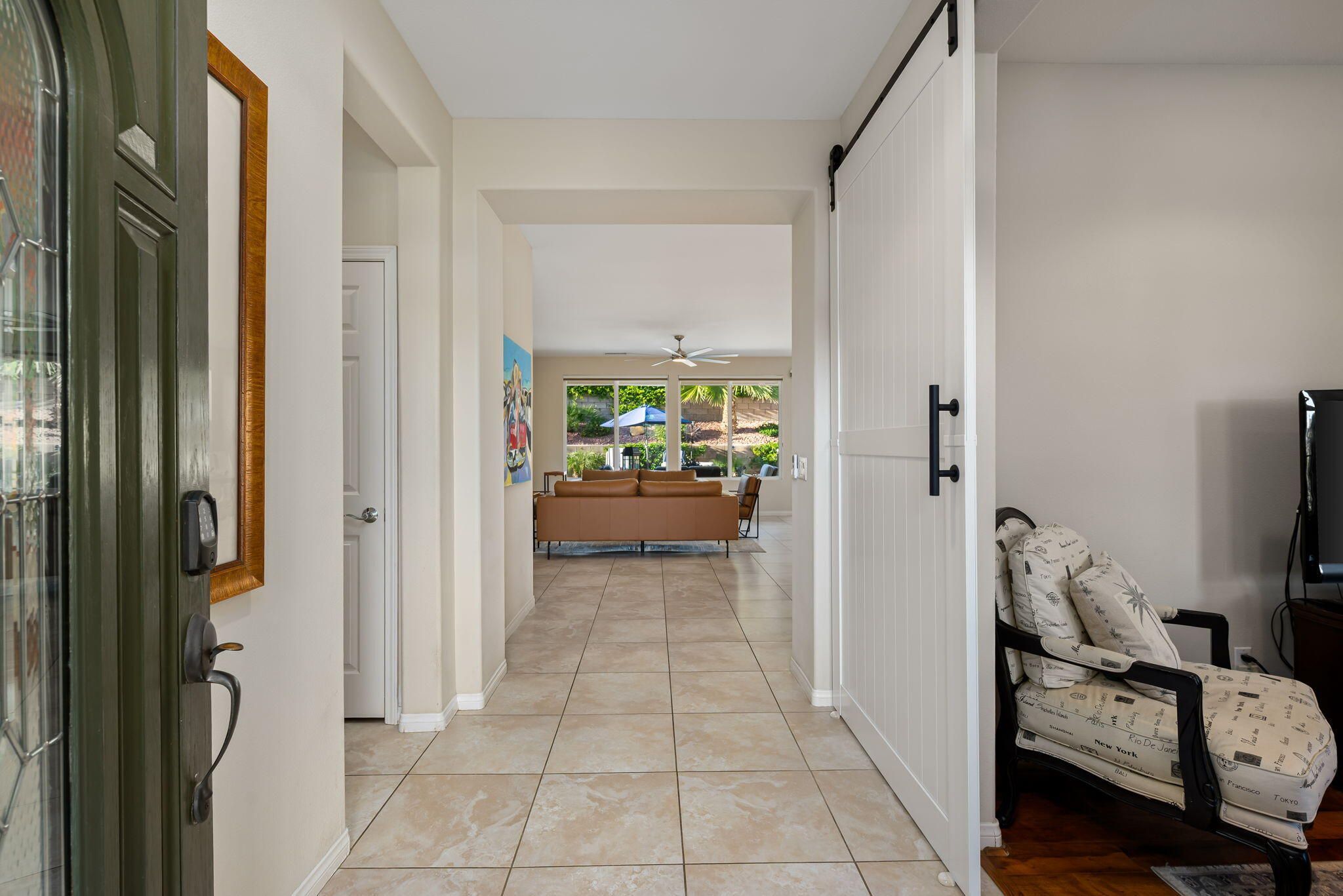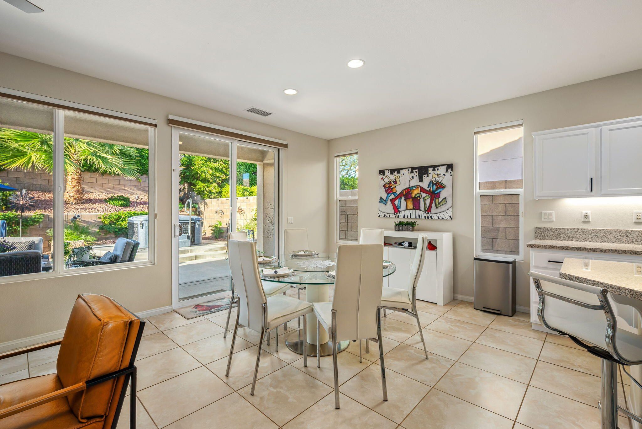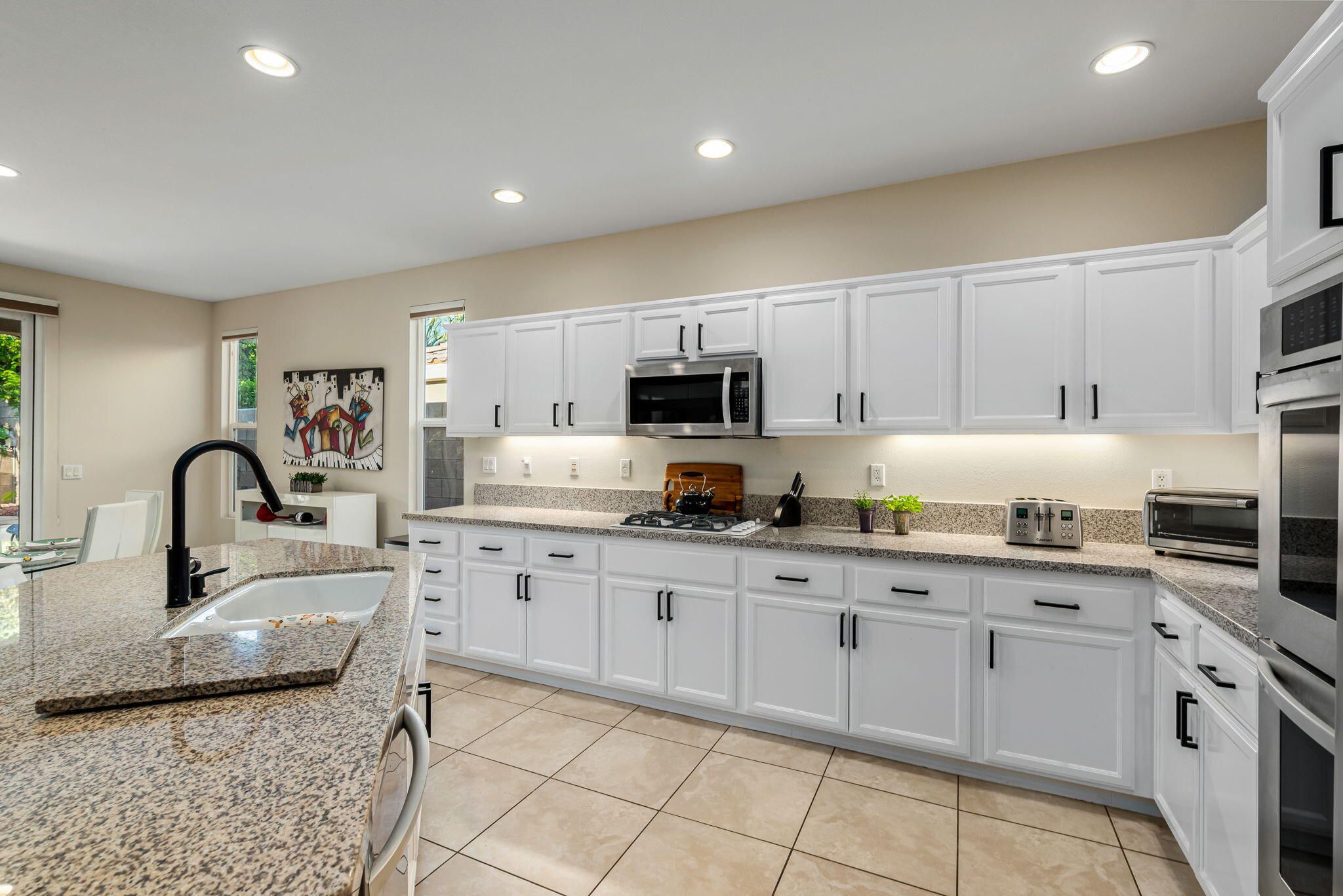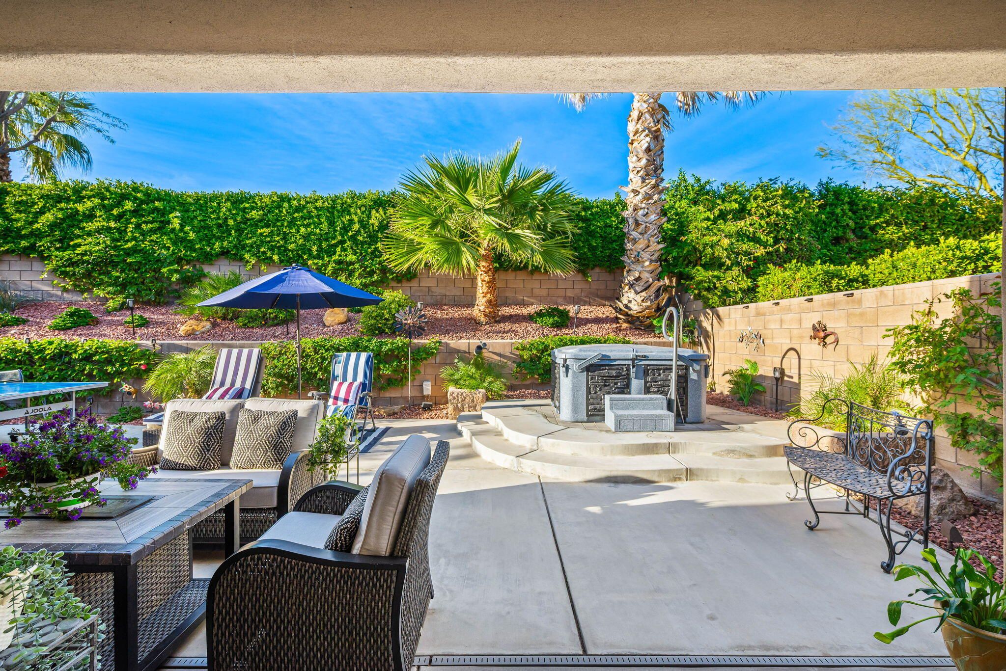 Welcome to the coveted Trilogy La Quinta—an exclusive 55+ resort-style enclave cradled by breathtaking mountain vistas! This highly sought-after Monterey plan, with new aboveground Spa and charming Tuscan façade offers 2 bedrooms, 2 baths, a versatile den/office (easily a 3rd bedroom with stylish barn doors), and 1,693 sq ft of open-concept elegance. Bask in the natural light of the great room, featuring custom window treatments, recessed lighting, tile flooring, and a sleek media niche. The entertainer's kitchen dazzles with stainless steel appliances, slab countertops, gas cooktop, double built-in ovens, microwave, a generous prep island with bar seating, and a walk-in pantry. Guests will appreciate the comfort, and privacy afforded them, and the primary suite is a serene escape with plank flooring, a bay window, and spa-like en suite complete with dual vanities, expansive shower, and walk-in closet. Enjoy a full laundry room with deep sink and ample cabinetry. Step outside to your private oasis with covered patio, soothing spa, professional landscaping, retaining wall, and an oversized concrete deck ready for gatherings under the stars. Just a quick 5-minute golf cart cruise to the Santa Rosa Clubhouse and all the resort amenities it offers—this home is desert living at its finest!