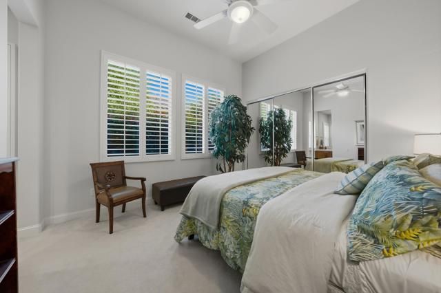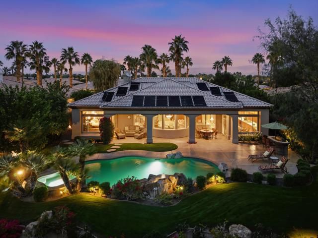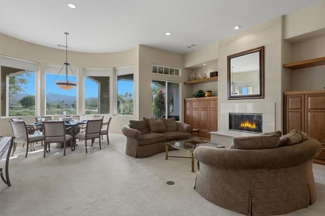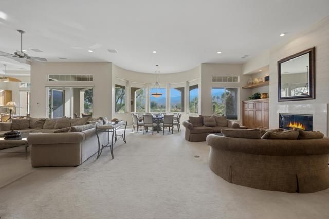 Perfectly positioned on one of the most coveted settings in PGA West, this homeshowcases the highly sought-after Ventana open floor plan with a rare triple fairway panorama and magnificent south-facing mountain views. This exceptional vantage point delivers unmatched scale, light, and serenity--an elevated offering within the prestigious Greg Norman enclave. The grand greatroom serves as the heart of the home, blending generous living and dining spaces with seamless indoor-outdoor flow. Expansive glass captures the dramatic fairway and mountain backdrop, creating an ever-present connection to the landscape. The chef's kitchen is beautifully appointed with rich cabinetry, slab-granite surfaces, a large center island, and a dedicated wine cooler--ideal for refinedentertaining and relaxed everyday living. The primary suite is a luxurious retreat, thoughtfully oriented to take in the sweeping southern views. It offers direct patio access, a spacious bedroom area, and a spa-inspired bath featuring dual vanities, a soaking tub, a large shower, and an oversized walk-incloset. Two additional guest suites offer comfort and privacy, each featuring its own well-appointed bathroom.A custom-built-in office offers a polished, functional workspace, while the separate bonus room with a Murphy bed enhances versatility--perfect for additional guests, hobbies, or a quiet retreat. Outdoors,the expansive patio becomes a sanctuary of its own. The dramatic triple fairway setting and striking mountain silhouette create a sense of openness and tranquility rarely found in PGA West. A sophisticated Ventana plan home distinguished by elegant appointments, exceptional flexibility, andone of the community's most remarkable view locations--an extraordinary opportunity within PGA West