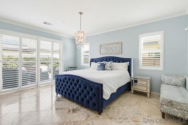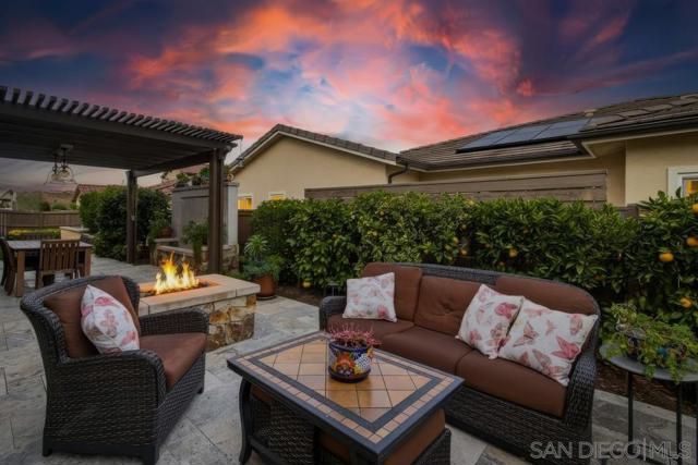 Start the new year in this exquisitely upgraded single-story home in the exclusive 55+ community of Auberge at Del Sur. This 3 bedroom, 2 bathroom home features elegant travertine flooring throughout, complemented by custom crown moldings, dual solar tubes, and bespoke built-ins in the living room, dining area, and primary suite. The chef’s kitchen is fully equipped with a walk-in pantry and wine fridge, while energy efficiency is maximized via fully owned solar system and a tankless water heater. This property includes all appliances and offers the unique potential to be purchased fully furnished for a truly seamless transition. The resort-style backyard featuring travertine pavers, an aluminum pergola, and a tranquil waterfall. The grounds are a gardener’s dream, boasting a functional vegetable garden and a prolific orchard with over ten varieties of fruit, including over-producing avocado, lime, and pomegranate. Enjoy pools, pickleball, a 5-star resort clubhouse, trails, events & more in Auberge Del Sur’s premier 55+ community offering a low-maintenance lifestyle.