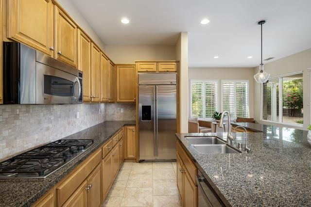 This beautifully appointed Tamarisk plan features 4 bedrooms, 4 bathrooms, and a detached casita--perfect for guests or multigenerational living--set on an expansive 12,000-square-foot lot with stunning views of the golf course and mountains. A Tuscan-inspired exterior, featuring a custom entry gate, creates strong curb appeal, while a covered breezeway connects the casita to one of two private side yards. Inside, the open-concept layout is filled with natural light and features tile flooring throughout the main living areas. A gourmet kitchen with granite slab countertops, stainless steel appliances, a wine fridge, and a large center island opens to the spacious great room. The backyard is a true desert oasis, complete with a large pool, raised spa, multiple waterfalls, dual covered patios, and ample space for entertaining. The luxurious primary suite includes patio access, a Jacuzzi tub, dual vanities, a walk-in shower, and a large walk-in closet. Additional highlights include a built-in media center, custom window treatments, stone finishes in all bathrooms, and a 3-car garage, making this one-of-a-kind home the perfect blend of comfort, style, and resort-style living. Come experience the newly renovated golf course and vibrant new restaurant, Kitchen Ten Eleven, and enjoy everything the Trilogy lifestyle has to offer.