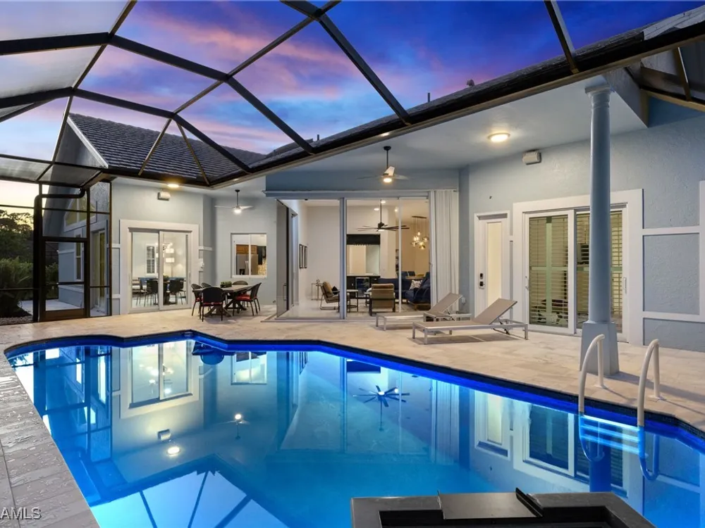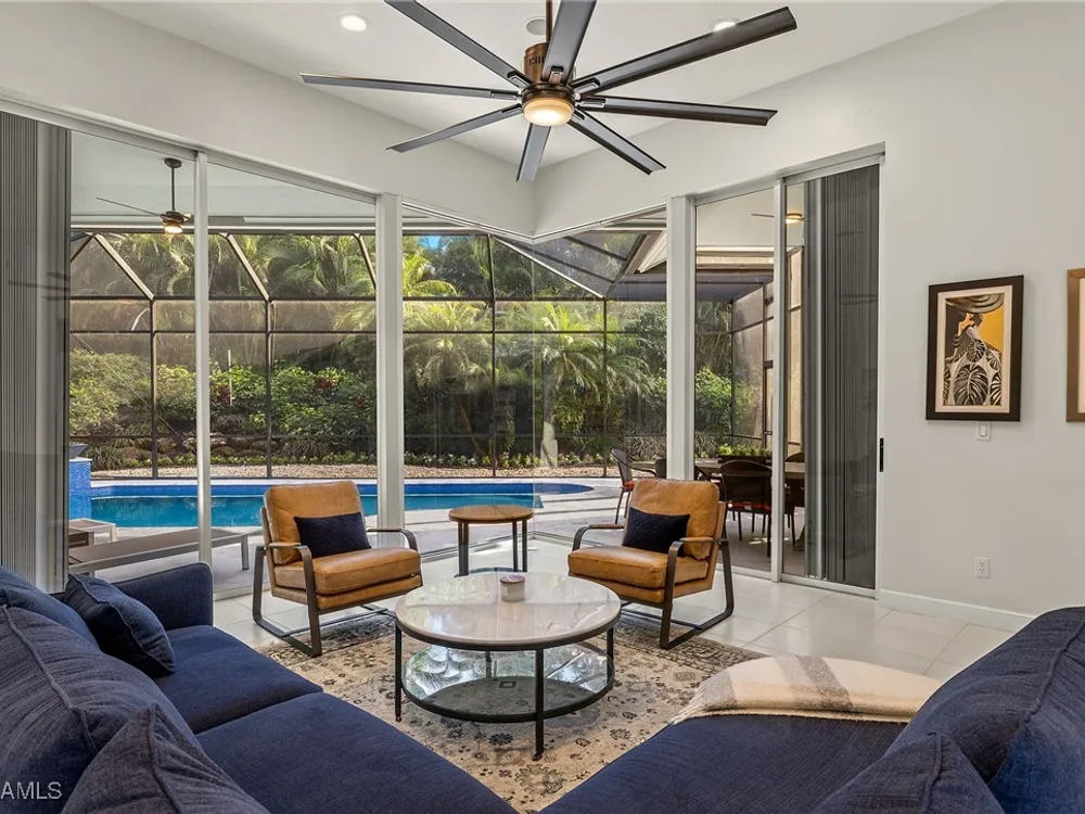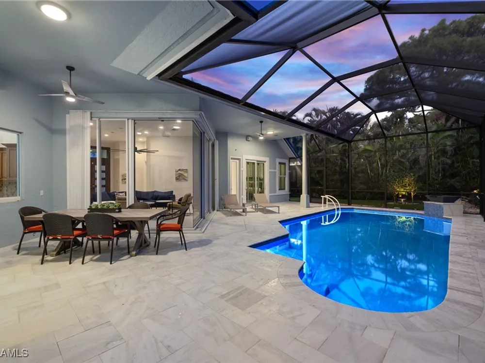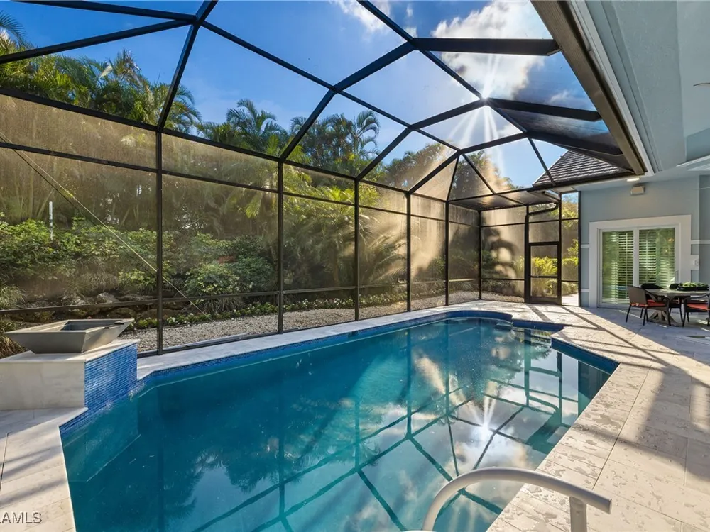 Move in ready and meticulously maintained single-family home in the heart of Pelican Bay. Nestled in a quiet cul-de-sac in an X flood zone, this property offers a serene and lush landscape that creates a one-of-a-kind tranquil retreat. Enjoy the convenience of single-story living in this spacious home, featuring three bedrooms plus den and three and a half baths. The floor plan flows seamlessly around the tranquil backyard pool area, perfect for endless entertaining and relaxation. Designed with entertaining in mind, this home boasts many upgrades, including hurricane-rated glass windows, newer appliances, updated landscaping and landscape lighting, as well as a newly refinished saltwater pool and pool paver area that adds a touch of luxury to your outdoor living space. Located in Pelican Bay, you'll experience the unparalleled Naples lifestyle with amenities such as beach clubs, golf, tennis courts, a fitness center, and tram service to the beach. Enjoy proximity to Waterside shops, the Ritz Carlton, Mercato Center, and 5th Avenue South. Don't miss this opportunity to make this exquisite house your home and embrace the Naples lifestyle today!