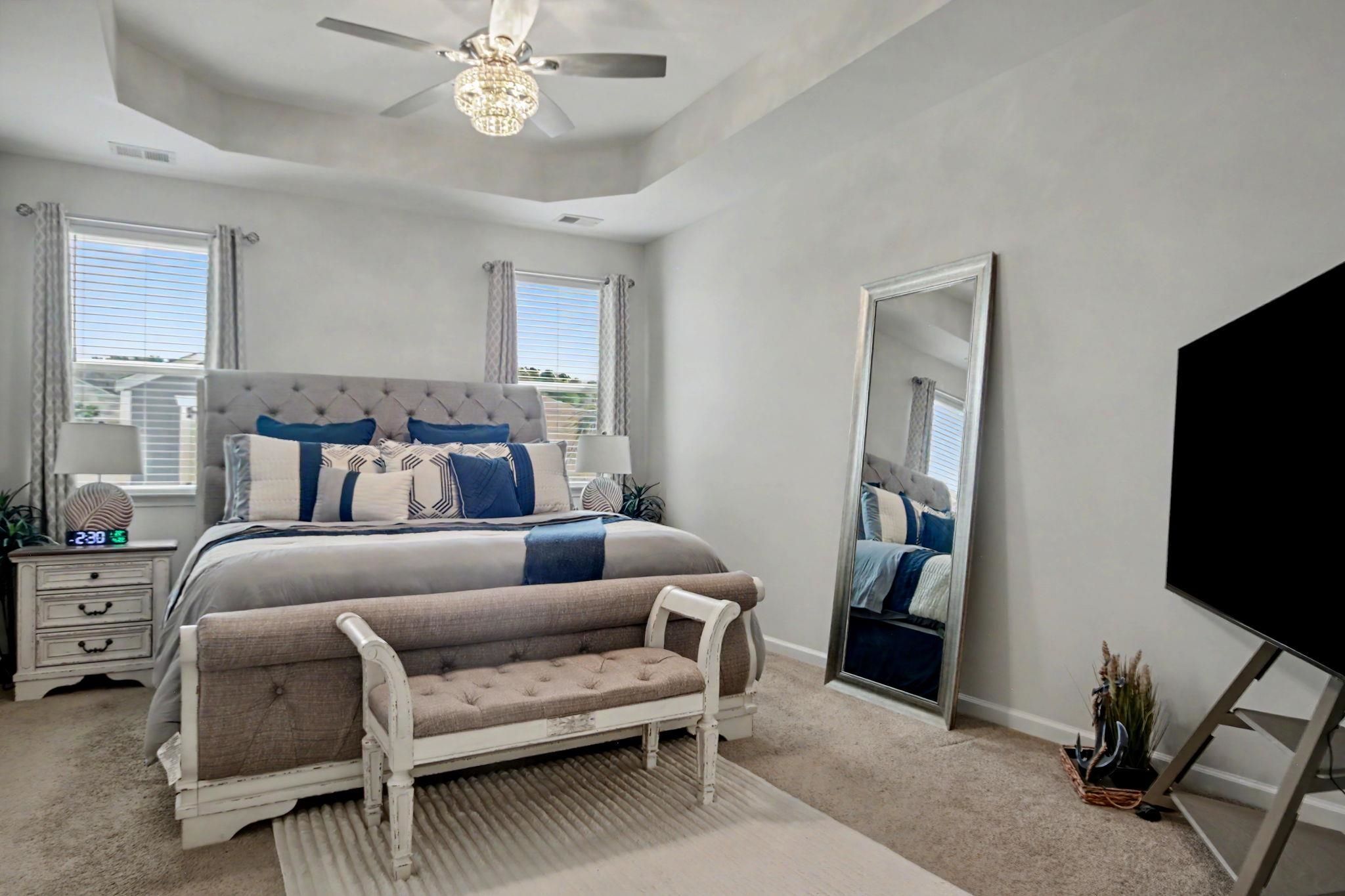 - Tray Ceiling(s), Ceiling Fan(s), Dual Sinks, Main Level Primary, Separate Shower, Vanity, Walk-In Closet(s), Window Treatments, Breakfast Bar, Bedroom on Main Level, Entrance Foyer, Loft, Stainless Steel Appliances, Solid Surface Counters