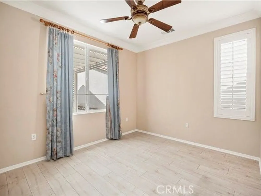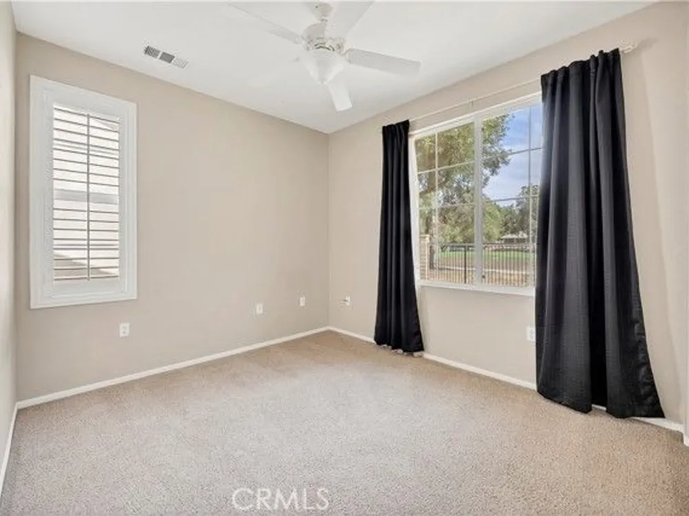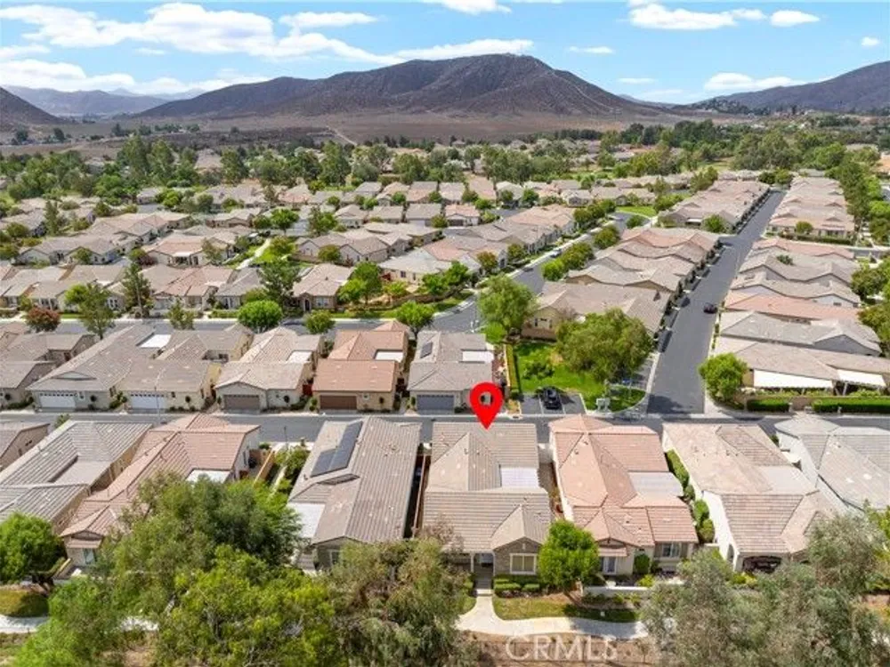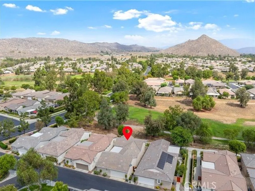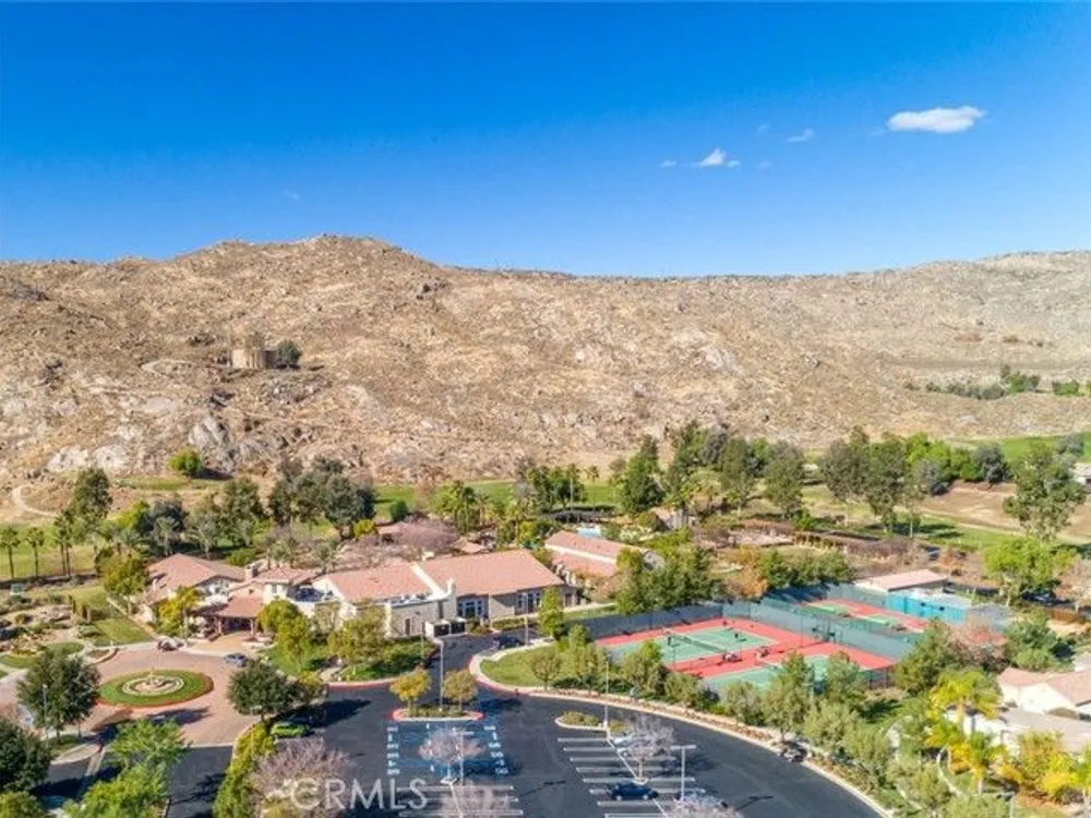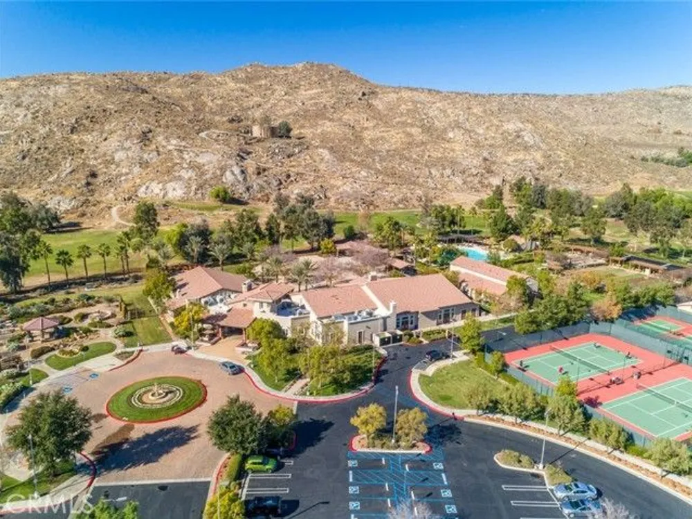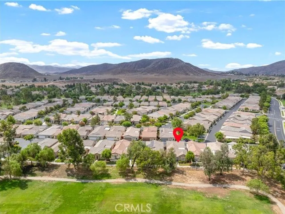 Welcome to 55+ Hemet Four Seasons, and this fantastic 1547 sf, 2 bed, 2 bath, and also a good sized Office/Den! This GOLF COURSE HOME faces North and the front patio is mostly shaded all day. ENJOY this Guard-Gated Golf Course Community and 24 hour roving patrol. SUPER CLEAN—MOVE IN READY! As you enter the home, you will notice it is light and bright! with newish Laminate Plank Flooring (2022), Crown Molding and Crown Molded doorways. You will love the Corian over the kitchen countertops, including the large kitchen Island. Private Stamped Concrete Patio with Aluma-wood cover. NEW HVAC 2024! Newish Water Heater, New outside paint 2021, Whirlpool Washer and Dryer (2023), Built-in desk in the Kitchen, Solar Screens (2019), Chair Height toilets, Steel front door screen, Upgraded Kitchen and Master bathroom faucets. Washer and Dryer (2023). 20,000sf Lodge includes: Ballroom, Fitness Center, Exercise Room, Beauty Shop, and Movie Theatre, Billiards room, Computer Center, Library, cards and crafts rooms. Outside: Half Size Olympic Pool and Spa: both heated all year long; Shuffleboard, pickle ball, bocce ball, walking and biking, tennis, pickle ball and more. Temecula Wine Country nearby. Call for a private showing today!