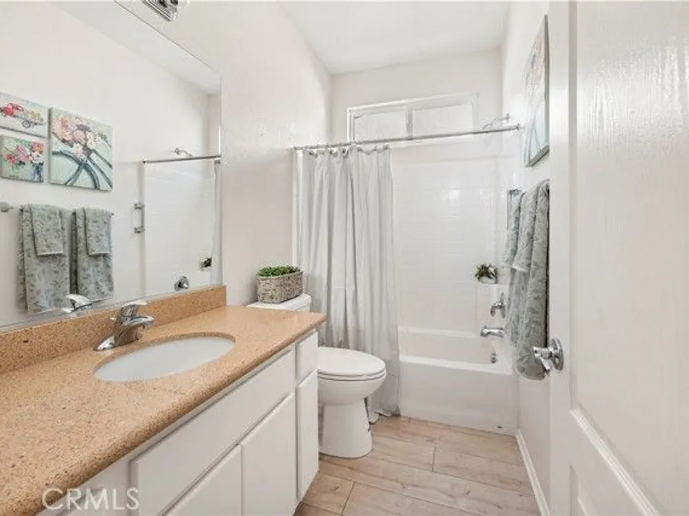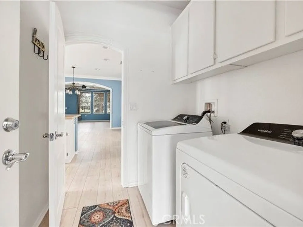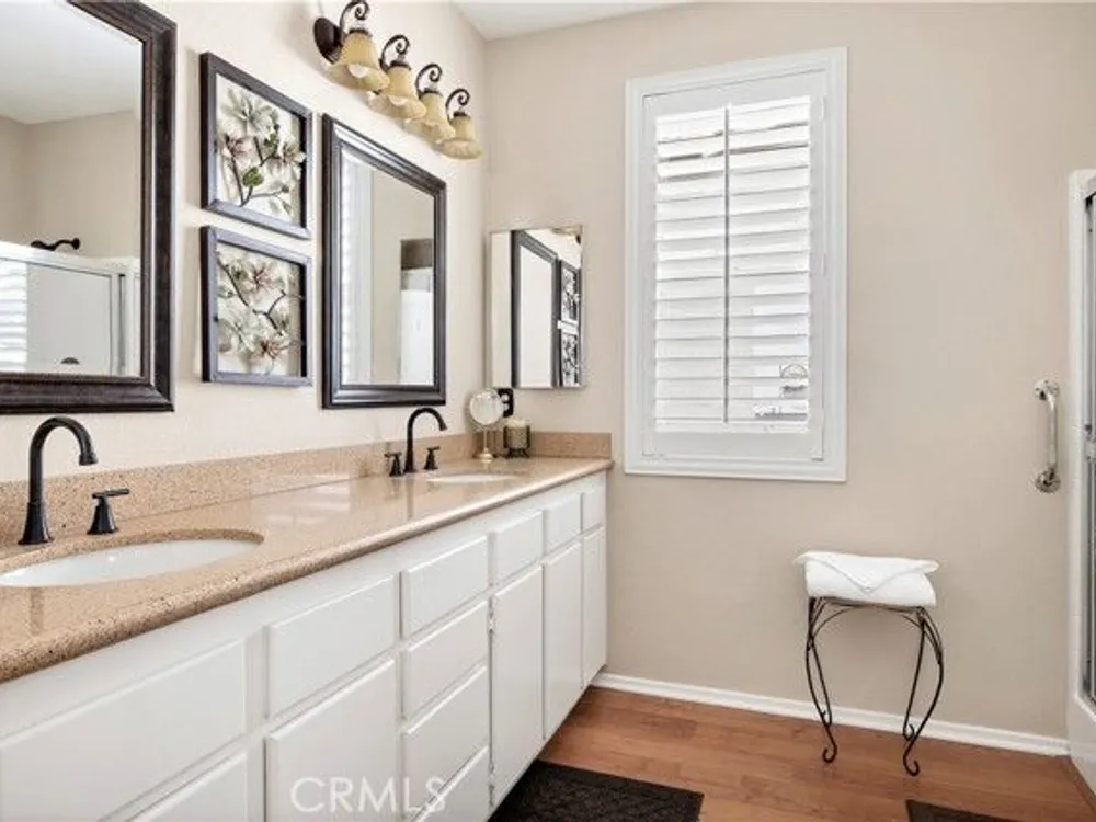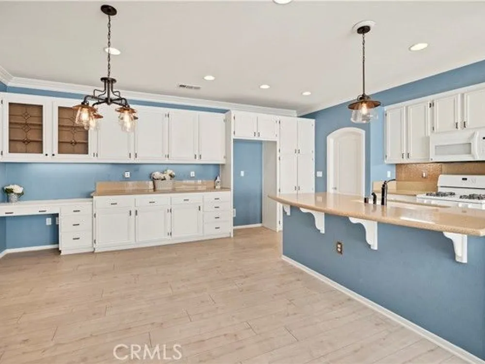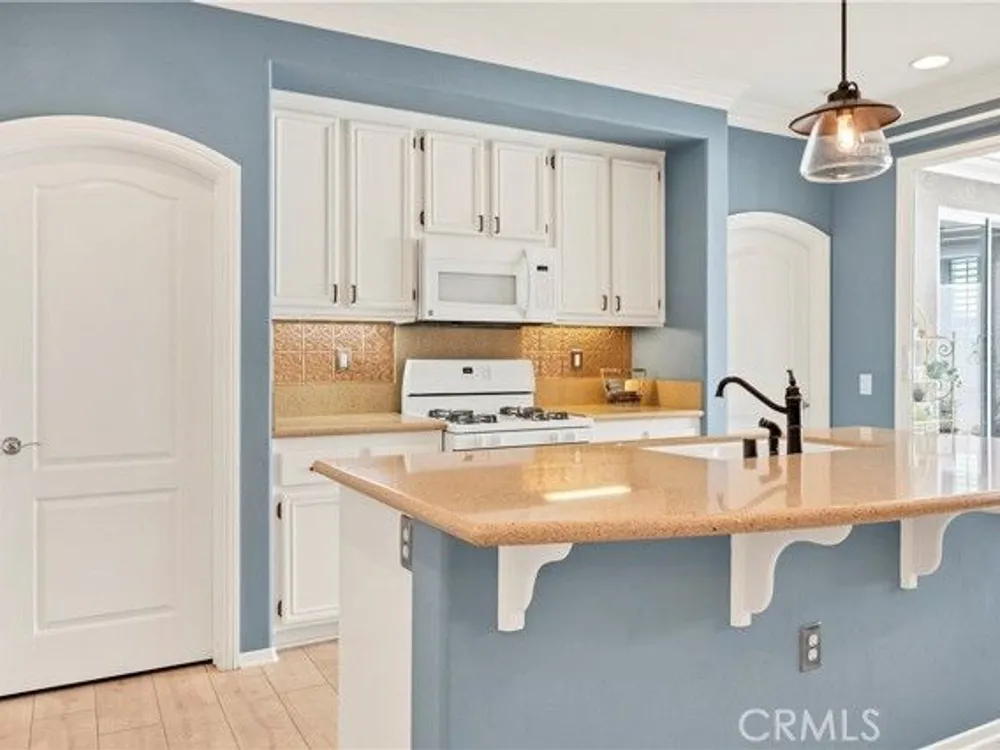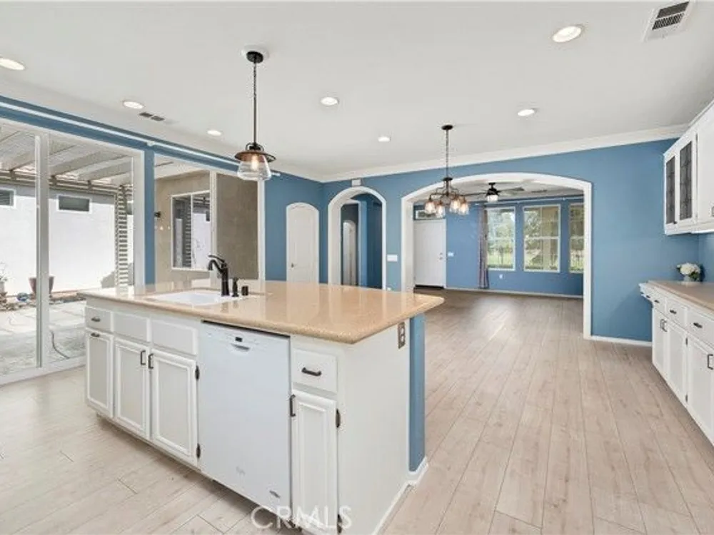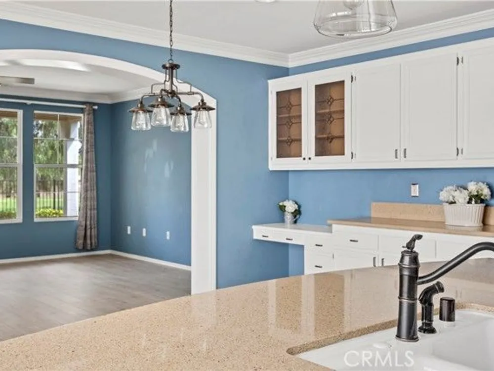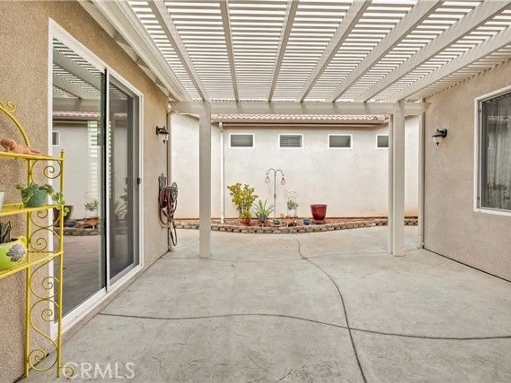 Welcome to 55+ Hemet Four Seasons, and this fantastic 1547 sf, 2 bed, 2 bath, and also a good sized Office/Den! This GOLF COURSE HOME faces North and the front patio is mostly shaded all day. ENJOY this Guard-Gated Golf Course Community and 24 hour roving patrol. SUPER CLEAN—MOVE IN READY! As you enter the home, you will notice it is light and bright! with newish Laminate Plank Flooring (2022), Crown Molding and Crown Molded doorways. You will love the Corian over the kitchen countertops, including the large kitchen Island. Private Stamped Concrete Patio with Aluma-wood cover. NEW HVAC 2024! Newish Water Heater, New outside paint 2021, Whirlpool Washer and Dryer (2023), Built-in desk in the Kitchen, Solar Screens (2019), Chair Height toilets, Steel front door screen, Upgraded Kitchen and Master bathroom faucets. Washer and Dryer (2023). 20,000sf Lodge includes: Ballroom, Fitness Center, Exercise Room, Beauty Shop, and Movie Theatre, Billiards room, Computer Center, Library, cards and crafts rooms. Outside: Half Size Olympic Pool and Spa: both heated all year long; Shuffleboard, pickle ball, bocce ball, walking and biking, tennis, pickle ball and more. Temecula Wine Country nearby. Call for a private showing today!