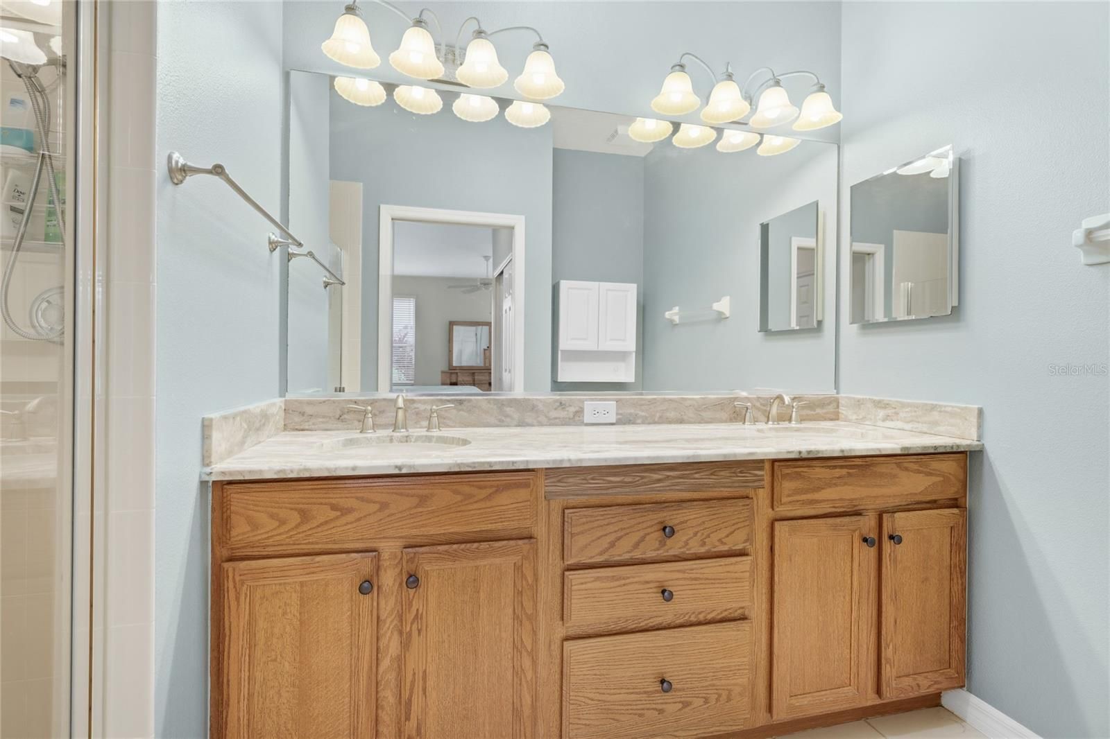 - In-Wall Pest Control, Main Level Primary, Split Bedrooms, Stone Counters, Walk-In Closet(s), Window Treatments